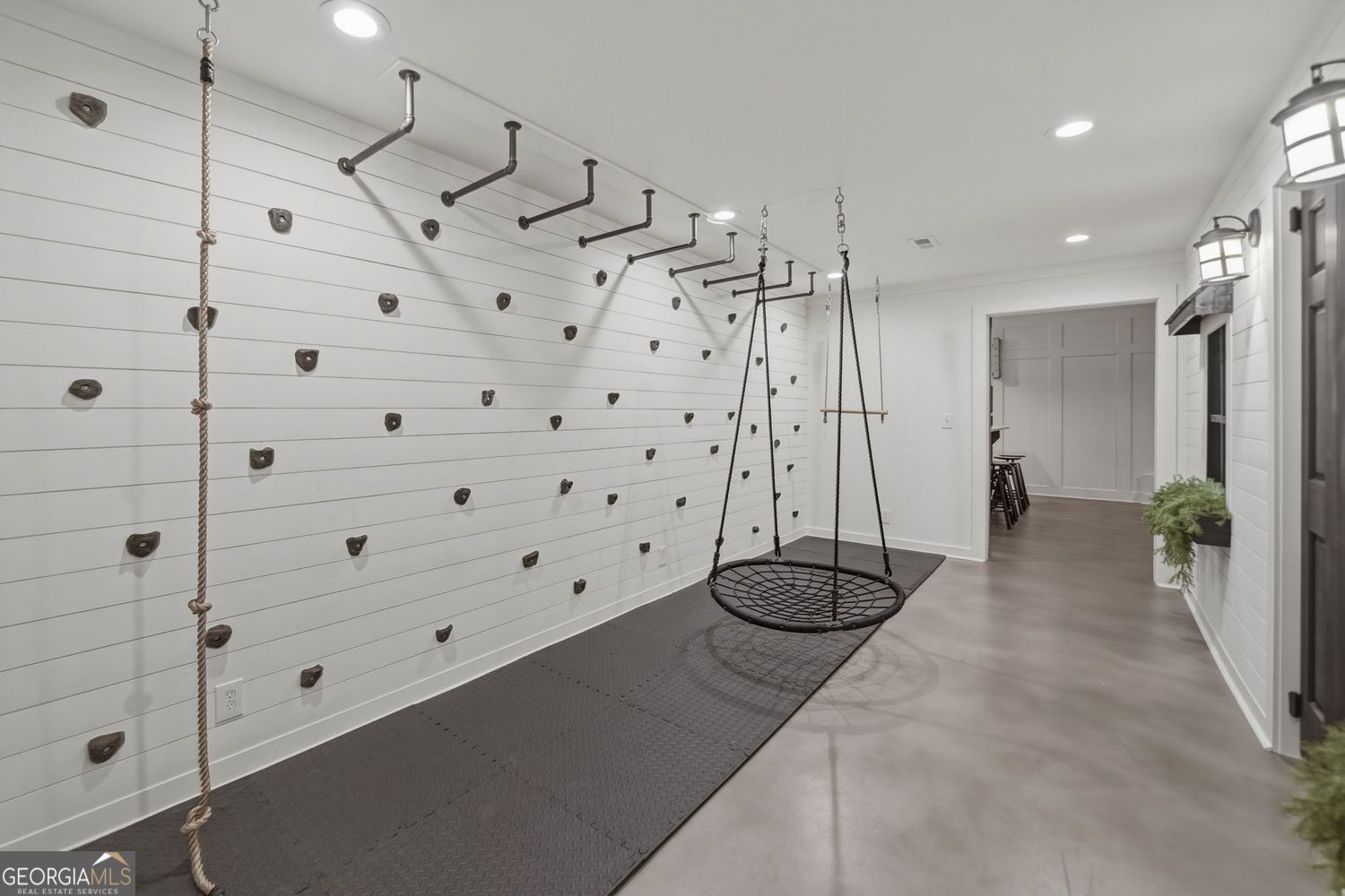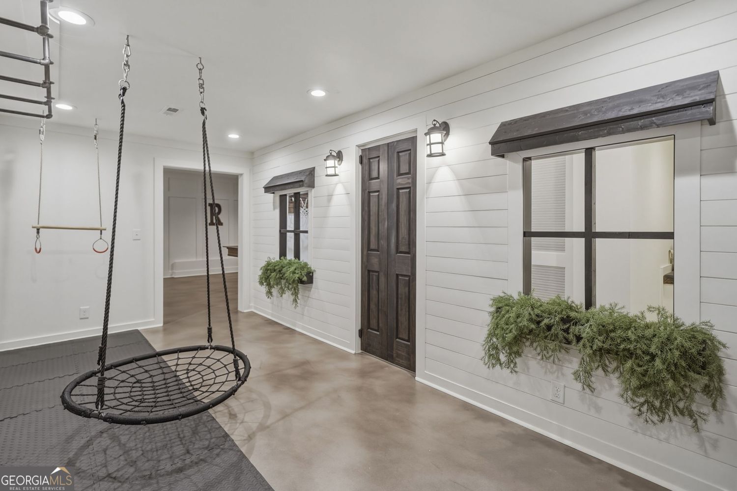 Architectural intention and craftsmanship define this custom Jeremy Rutenberg build where every space is designed with purpose and presence. The main level unfolds with a private office and a formal dining room that sets the stage for memorable gatherings. At the heart of the home, the chef's kitchen commands attention with an expansive island, granite countertops, a walk-in pantry, and a generous eat-in area that opens naturally into the living spaces, creating an elevated open floor plan that supports both intimate evenings and larger-scale entertaining. A well-appointed guest suite on the main level offers privacy and comfort. Privately situated, the owner's wing feels like its own retreat. A sitting or exercise nook adds flexibility, while dual walk-in closets and a dedicated laundry room bring everyday ease. The spa-inspired bath features a soaking tub, dual shower heads, and two water closets, delivering both luxury and thoughtful function. Plantation shutters throughout add timeless refinement. Upstairs, four secondary bedrooms each include en-suite baths and walk-in closets, along with a spacious bonus room ready for media, study, or lounge space. A second laundry room with built-ins enhances practicality on this level. The finished basement is designed for experience, complete with a rock climbing wall, monkey bars, full-screen projector, snack bar, game room, and two hidden storage rooms. Outside, a covered stone patio overlooks a secluded upper grassy yard, creating layered outdoor living. A three-car garage completes the home. Carmichael Farms delivers resort-style living with a junior Olympic swimming pool, four lit tennis courts, basketball court, and event lawn. Minutes to I-575 Canton Express Lanes, Northside Hospital Cherokee, and Historic Downtown Canton. Served by Cherokee County Schools, with Creekview nearby.