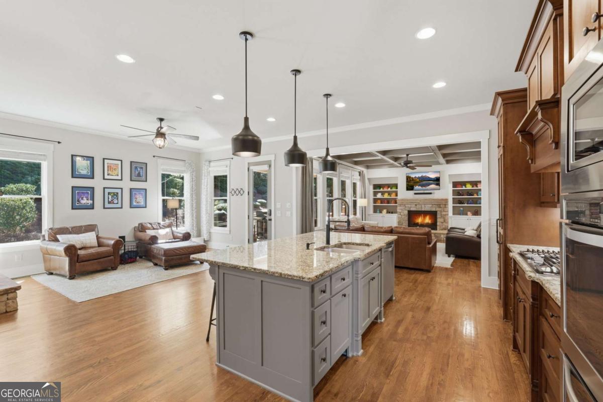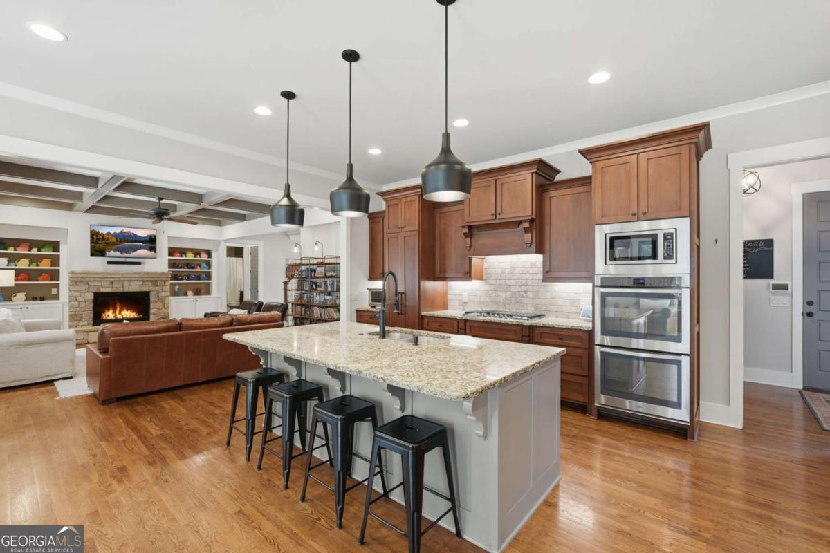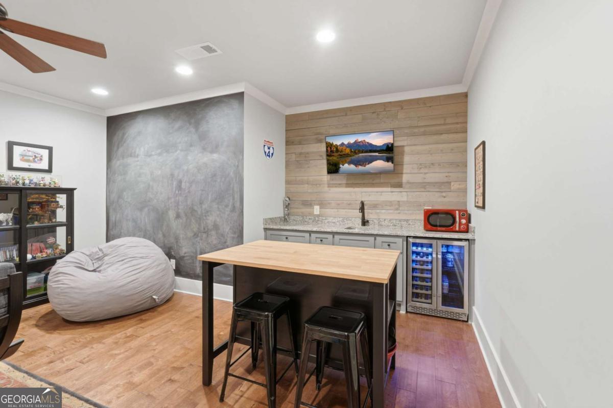 Welcome home to this beautifully maintained brick home in Vickery Springs. Featuring 7 bedrooms and 5 full baths, the bright, open floor plan includes hardwood floors, detailed trim, and abundant natural light. The main level offers flexible living with open gathering spaces, a home office, formal dining room, and a kitchen with hidden pantry, keeping room, and eat-in space overlooking the living area. A guest bedroom and additional office complete the main floor. Upstairs, the generous primary suite includes ample storage and his/her closets. Four additional bedrooms share multiple full baths, plus an extra flex room adds versatile living space. The fully finished basement offers an extra bedroom and full bath, two large living areas separated by barn doors, a wet/bar kitchen, a flex space with outdoor access, three storage areas, and a workshop. Outside, enjoy a covered deck, paver patio, private yard with room for a pool, and classic curb appeal. A 3-car garage includes a side entrance for convenience. Located on a tree-lined lot, the home provides easy access to the greenway, Vickery Village, highly-rated schools, and Midway Park. Vickery Springs is a swim/tennis community offering comfort, functionality, and an ideal neighborhood setting.