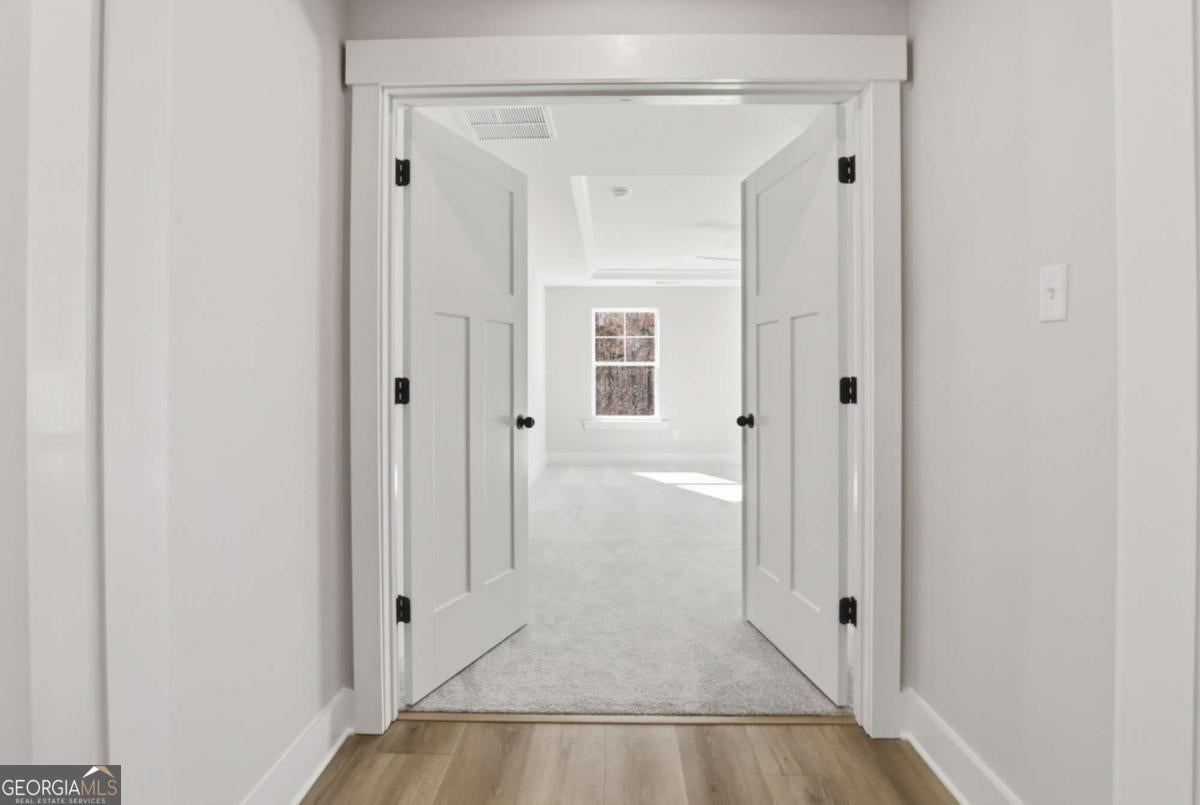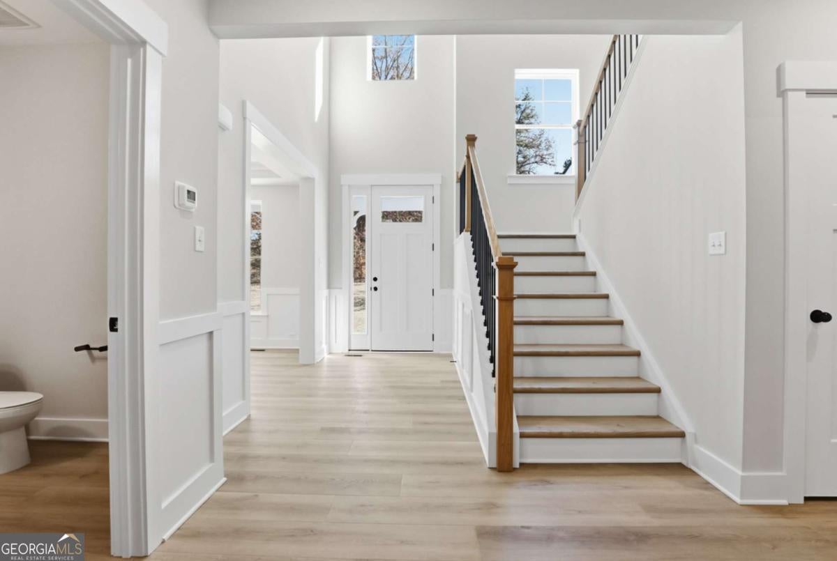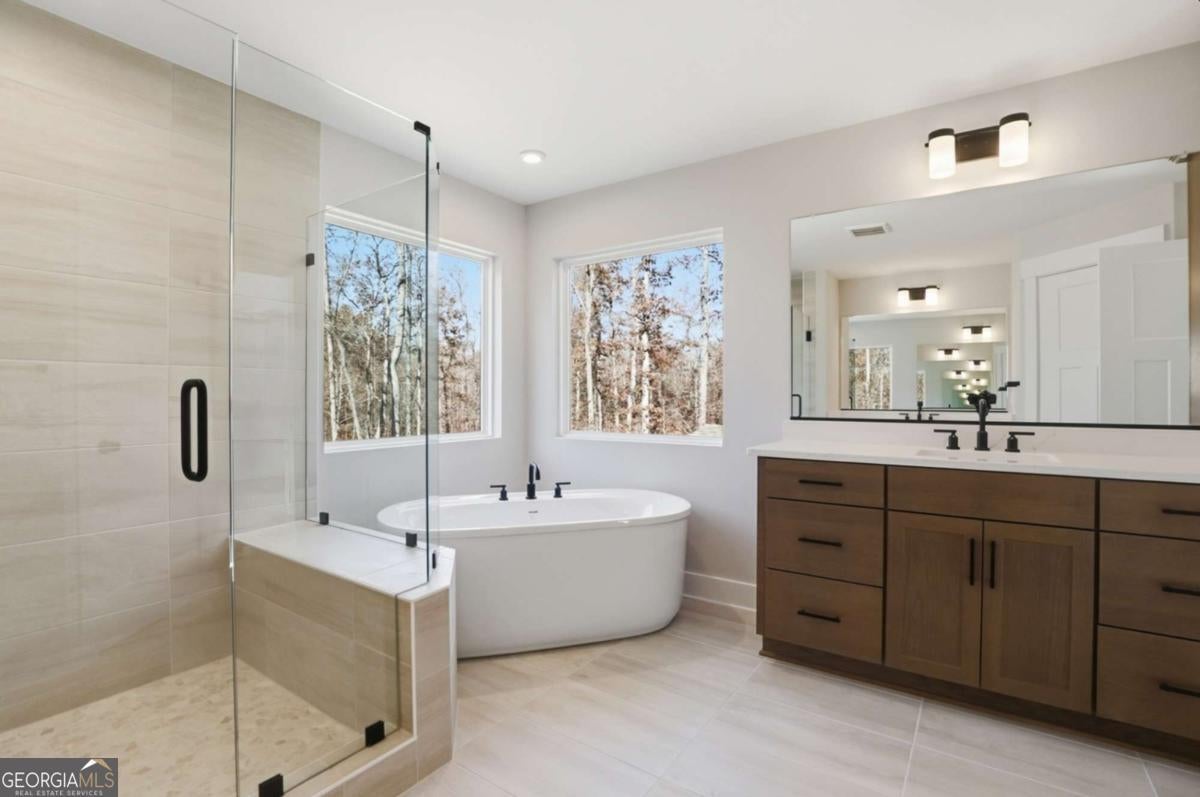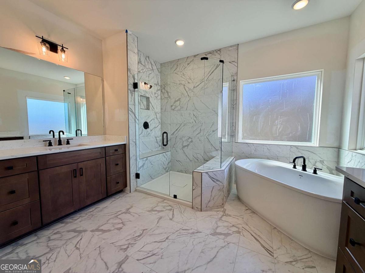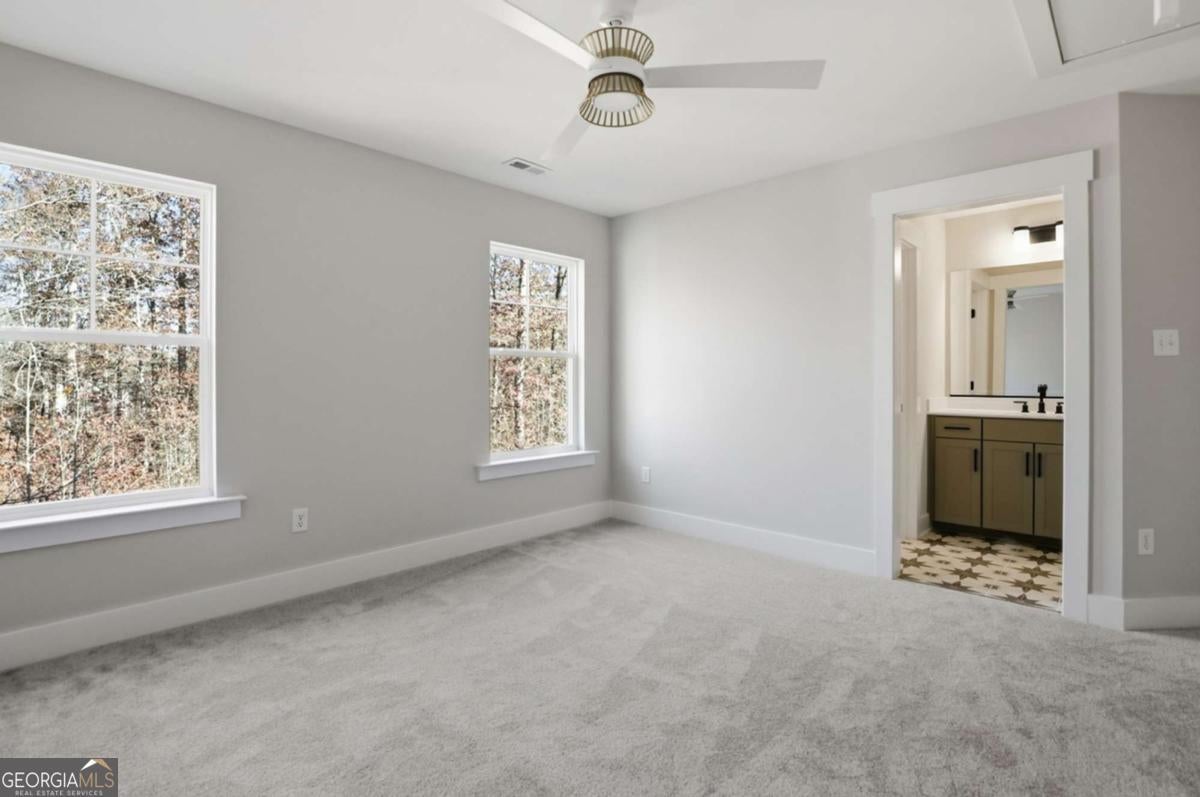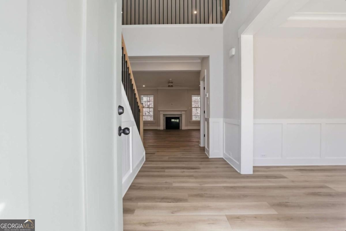 Designed for both everyday living and entertaining, this Waverly offers a guest suite and private office on the main level, a wooded backyard with an expansive patio, and a striking two-story foyer that makes an immediate impression. Tucked into the Arbor West community in Dawsonville, this beautifully designed home blends space, style, and thoughtful functionality from the moment you arrive. A soaring two-story foyer with an open stairwell welcomes you in, leading to an oversized dining space connected to the kitchen through a butler's pantry-perfect for hosting. The main living area is open and inviting, centered around a shiplap fireplace with a cedar mantel. The designer kitchen features warm brown cabinetry complemented by a contrasting white island, creating a timeless and elevated look. Step outside to enjoy the expansive back patio overlooking a wooded backdrop, offering a peaceful and private setting, while the long front driveway adds to the home's presence and convenience. The main level is thoughtfully laid out with a private office tucked away from the living areas-ideal for working from home-along with a separate guest suite for added flexibility. Upstairs, a spacious loft provides additional living space, while the primary suite offers dual closets and a spa-inspired bath complete with a freestanding soaking tub, large shower, and separate vanities. Located just minutes from downtown Dawsonville, Arbor West offers the perfect balance of quiet surroundings and everyday convenience.