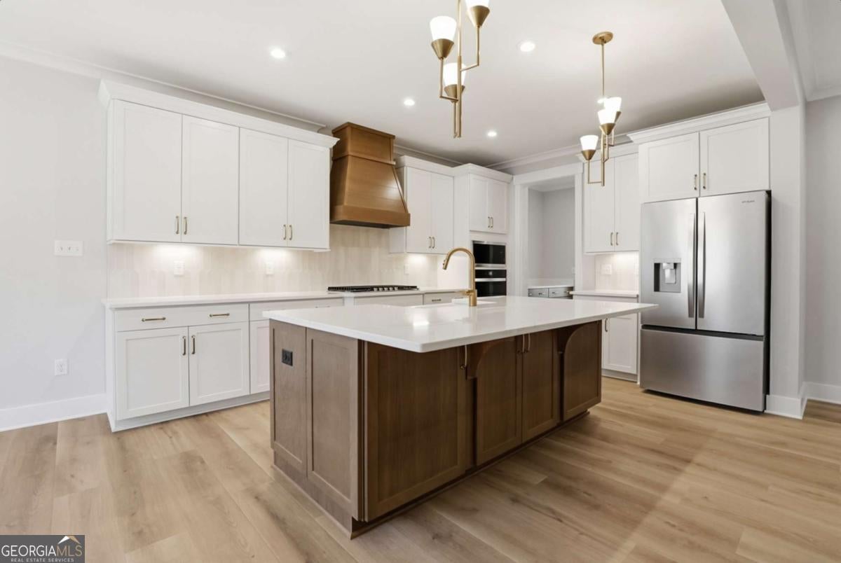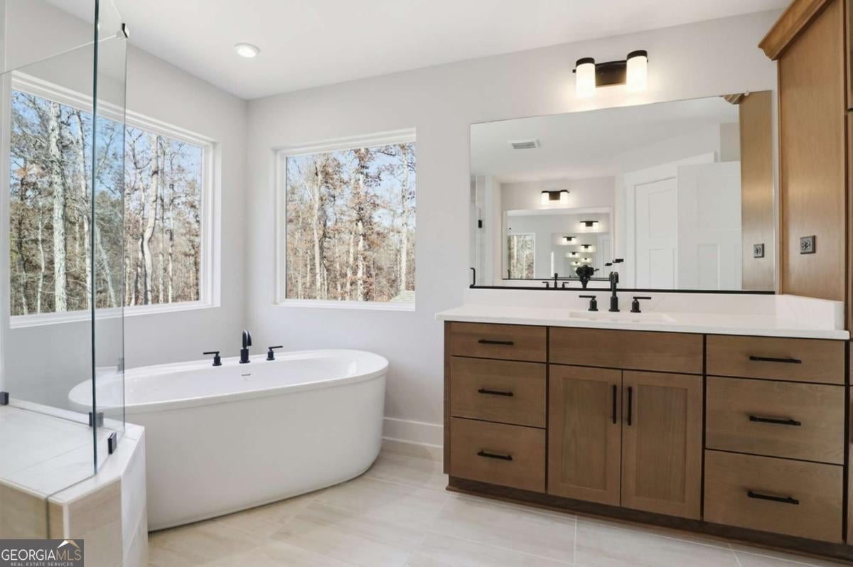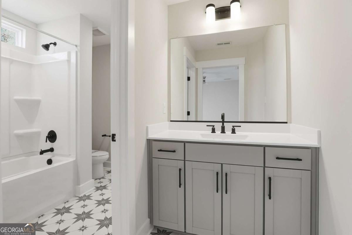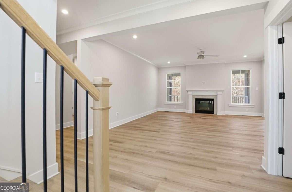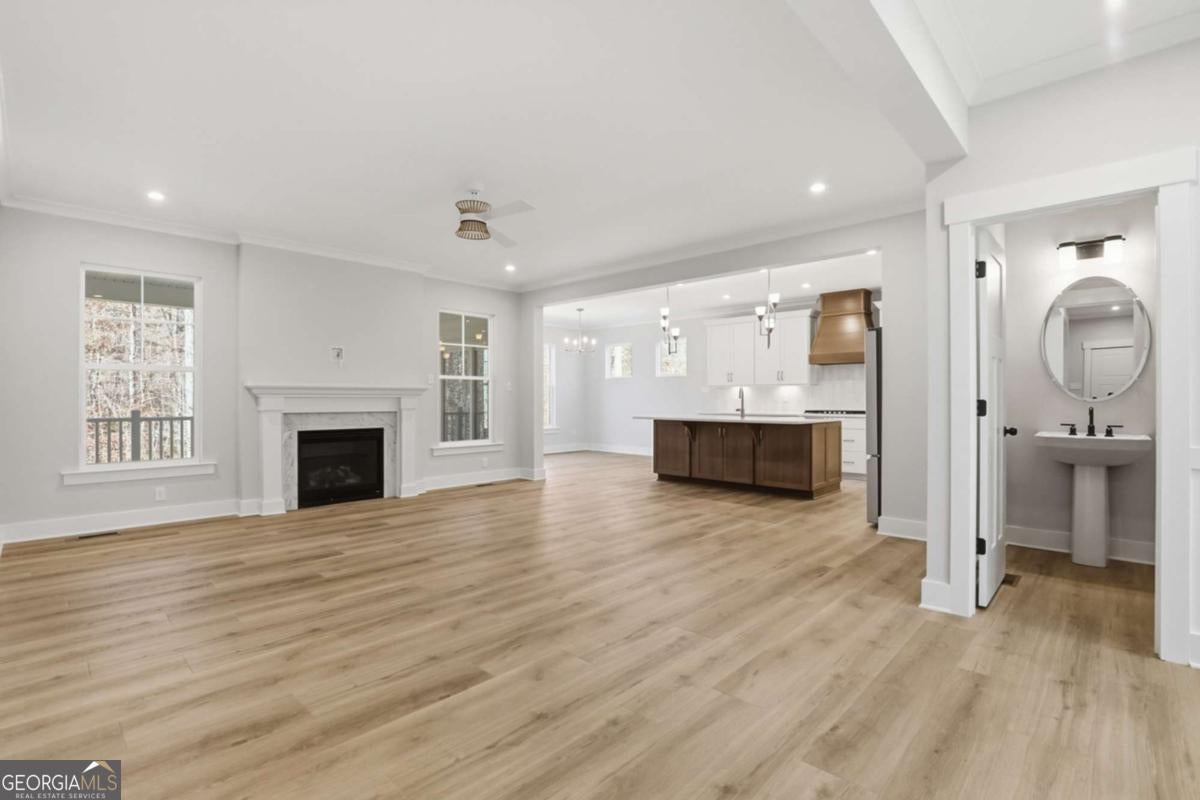 Designed for both everyday living and entertaining, this Waverly offers a guest suite and private office on the main level, a wooded backyard with an expansive patio, and a striking two-story foyer that makes an immediate impression. Tucked into the Arbor West community in Dawsonville, this beautifully designed home blends space, style, and thoughtful functionality from the moment you arrive. A soaring two-story foyer with an open stairwell welcomes you in, leading to an oversized dining space connected to the kitchen through a butler's pantry-perfect for hosting. The main living area is open and inviting, centered around a shiplap fireplace with a cedar mantel. The designer kitchen features warm brown cabinetry complemented by a contrasting white island, creating a timeless and elevated look. Step outside to enjoy the expansive back patio overlooking a wooded backdrop, offering a peaceful and private setting, while the long front driveway adds to the home's presence and convenience. The main level is thoughtfully laid out with a private office tucked away from the living areas-ideal for working from home-along with a separate guest suite for added flexibility. Upstairs, a spacious loft provides additional living space, while the primary suite offers dual closets and a spa-inspired bath complete with a freestanding soaking tub, large shower, and separate vanities. Located just minutes from downtown Dawsonville, Arbor West offers the perfect balance of quiet surroundings and everyday convenience.