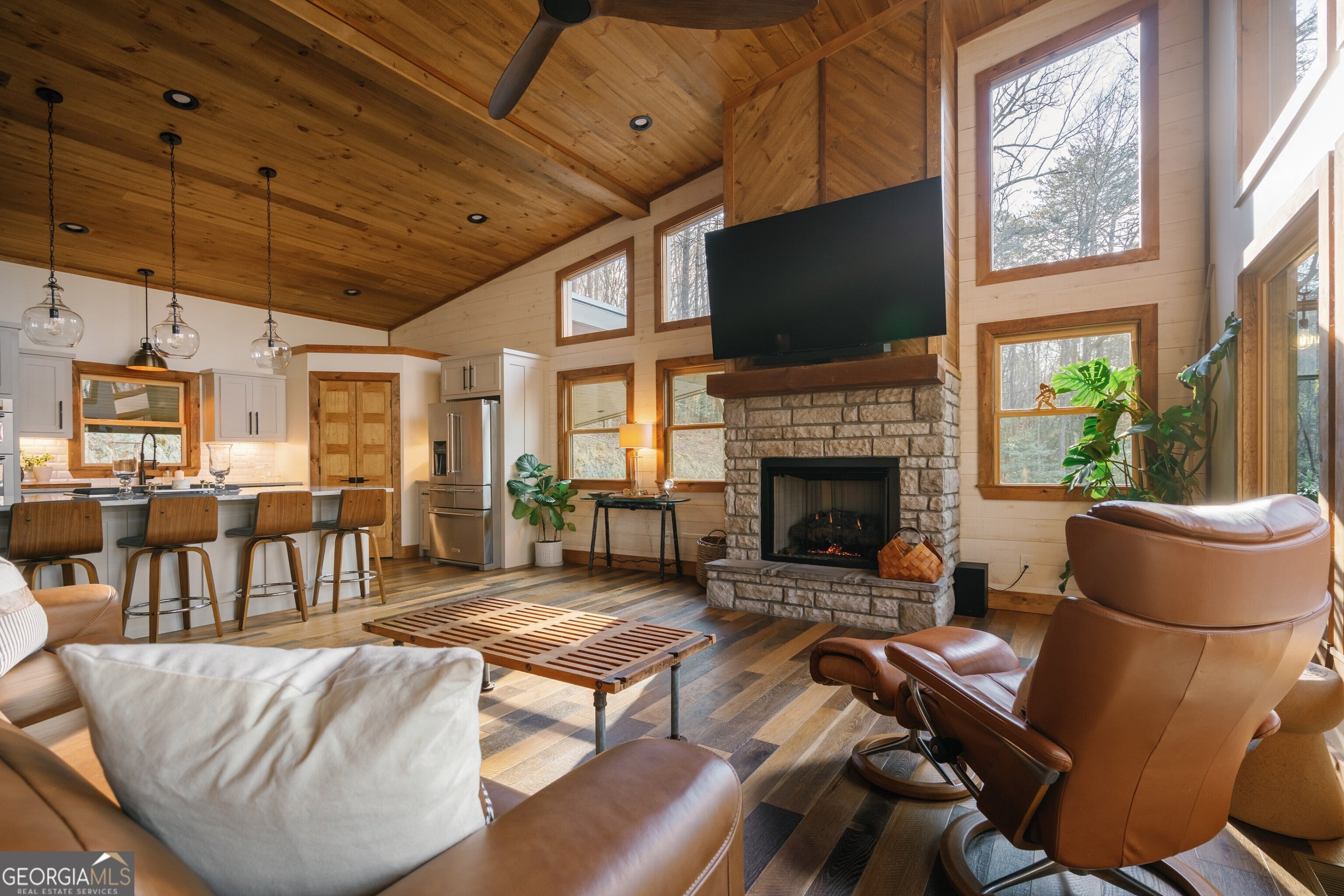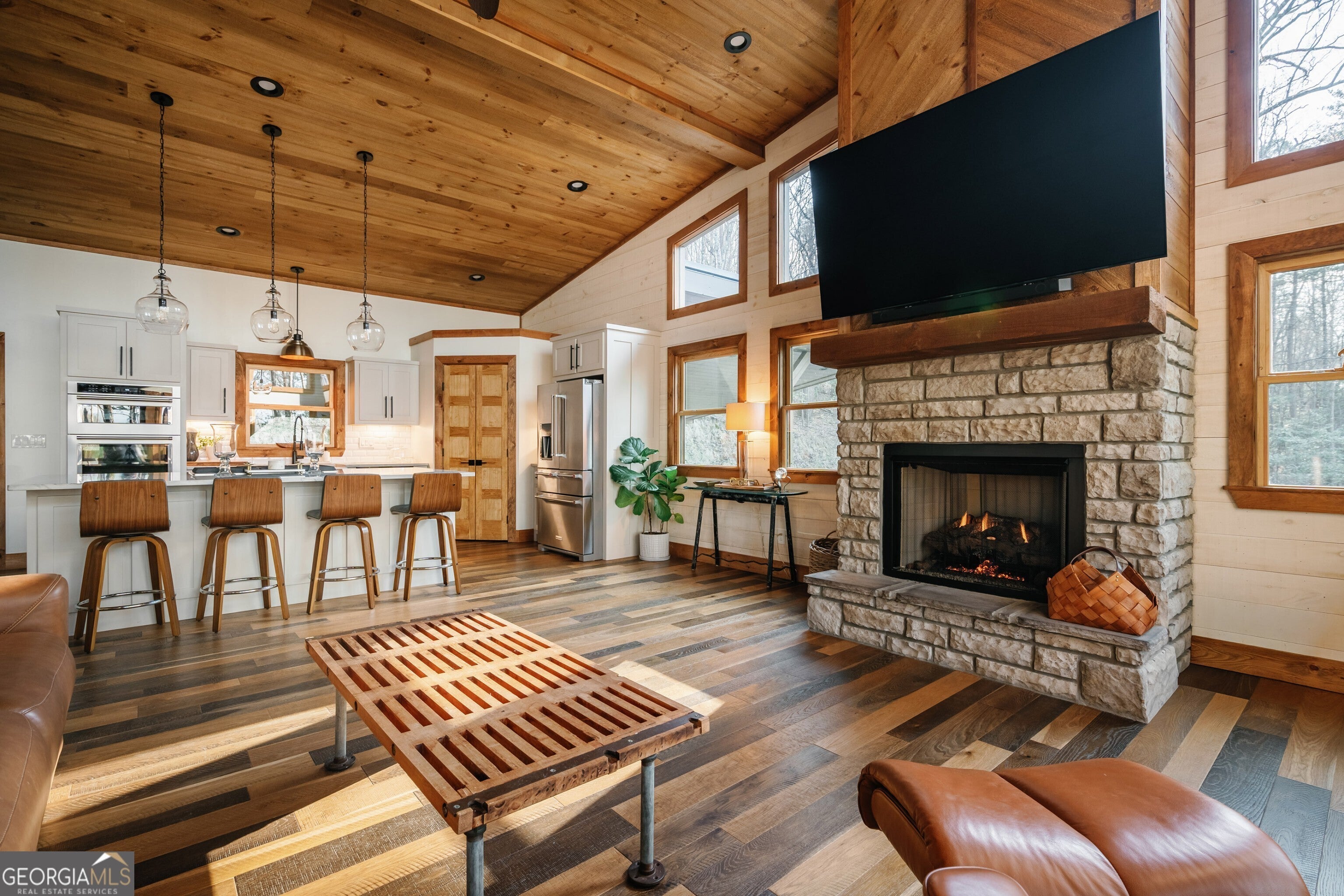 Leave the hustle behind and settle into this like-new, fully furnished mountain escape nestled on a private 2.75-acre unrestricted lot in the heart of the Blue Ridge Mountains. No HOA, no restrictions - just freedom to enjoy your mountain sanctuary on your own terms. With serene long-range mountain views, a lush wooded backdrop, and two levels of decks perfectly positioned to soak it all in, this is a place where you can truly breathe. Inside, rustic charm meets modern elegance with rich wood flooring, stone fireplaces, and a chef's kitchen complete with granite countertops, high-end appliances, and a center island. The thoughtfully designed layout offers 3 bedrooms and 2.5 baths, with the lower level rounding out the space with a wet bar, game area, and guest accommodations - everything you need to unwind or entertain at your own pace. A newly added workshop rounds out this incredible property, along with a porte-cochre and the home is pre-wired for a whole house generator for peace of mind. All just minutes from the Old Toccoa Farms, Lake Blue Ridge, wineries, shops, dining, and all the festivities in downtown Blue Ridge. Furnished, finished, and ready for you to simply relax and enjoy - inquire today!