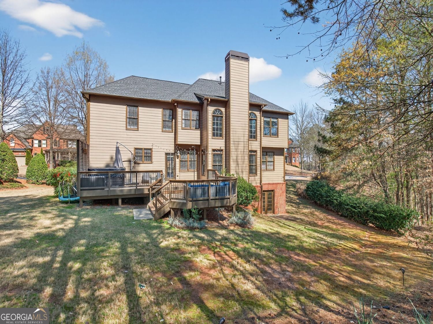 Northeast-Facing Gem in Windermere's Arden Greens | Brand New Roof | 5,000+ Sq Ft Welcome to 8840 Appling Ridge - an exceptional 6-bedroom, 4-bathroom executive home nestled in a quiet cul-de-sac within the prestigious Arden Greens section of Windermere. Boasting nearly 5,000 sq ft across three beautifully finished levels, this home delivers luxury, comfort, and peace of mind from day one. A rare northeast-facing orientation floods the home with natural light and positive energy throughout the day. Major recent upgrades include a brand new roof (November 2025), updated electrical with smart lighting and switches throughout, central water purification, and whole-home fresh paint. The stunning renovated kitchen features bold navy blue cabinetry with gold hardware, white quartz countertops, subway tile backsplash, center island, gas range, and stainless steel appliances. The owner's suite offers a spa-like bath with soaking tub, separate shower, his-and-hers closets, and radiant heated flooring. A versatile bonus room with electrical and plumbing connections is ready to become a bathroom, walk-in closet, or flex space. The fully finished walkout basement impresses with tray ceilings, a built-in entertainment bar with mini fridge, a full bath, and multiple living zones. Outside, enjoy an expansive multi-level Trex deck, private hot tub, cafe string lights, and a serene wooded backdrop. Windermere residents enjoy world-class amenities including a championship golf course, aquatic center, fitness center, tennis courts, and more. Zoned for top-rated Forsyth County schools: Haw Creek Elementary | Lakeside Middle | South Forsyth High. This one checks every box - schedule your tour today!