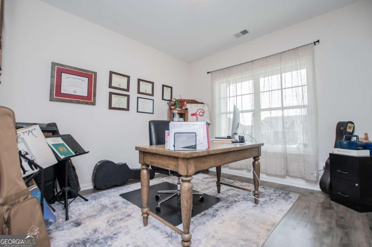 A great place to call home! Perfect floorplan for your family with large master suite, 2 addl bedrooms, 2 baths, bonus area, and laundry on upper level. Main level features bedroom and full bath for guests. Open concept living between family room and kitchen. Large entry way centered between dining room and living room/office area. Upgrades include hardwood floors, granite, stainless appliances, custom millwork and more! The exterior has many upgrades including: hardie plank siding, a private fenced in backyard, and a powered outbuilding. Northpoint Grand is a swim community offering a great neighborhood for all ages. Seller is offering to pay $6000 in closing costs as a bonus for the buyer!