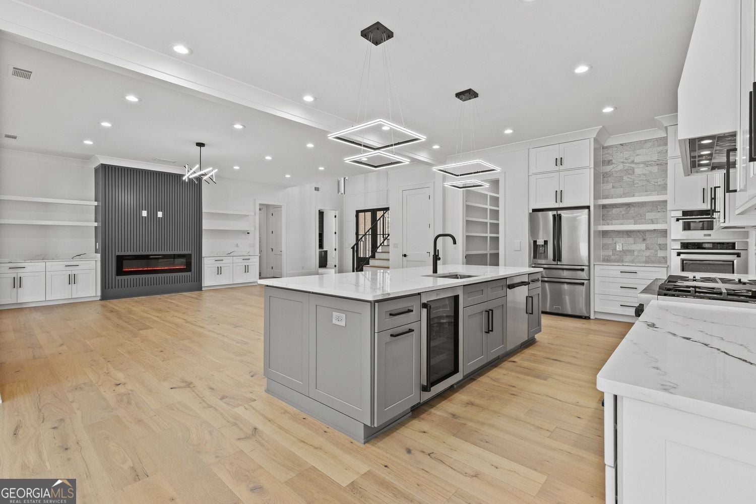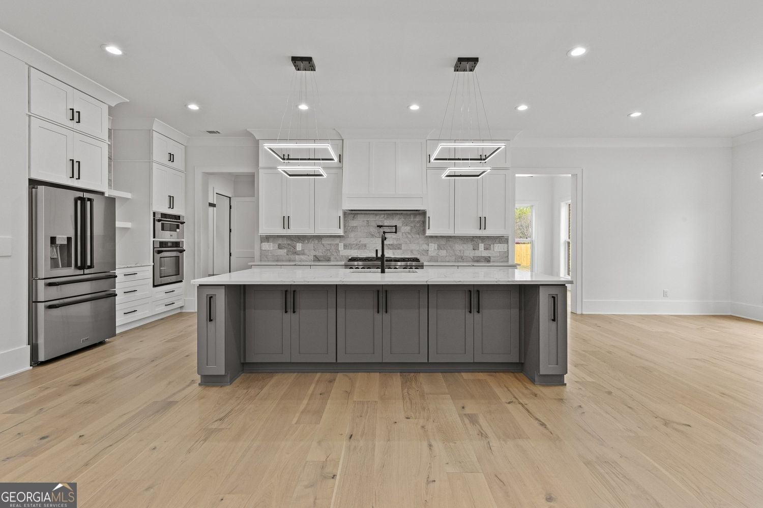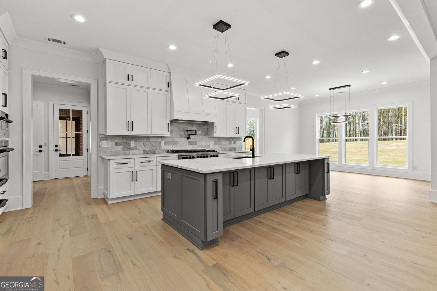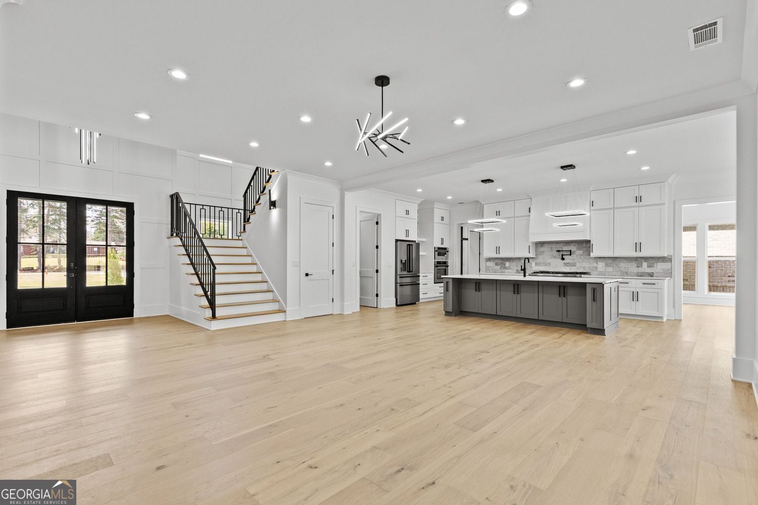 Private Gated Modern European-Inspired Estate on 2 Acres - No HOA, Designed for Space, Privacy, and Elevated Living Tucked behind a private gate and set on 2 beautifully balanced acres of open lawn and wooded privacy, this custom-built modern European-inspired estate offers a lifestyle that is becoming increasingly rare - where timeless architecture, clean modern design, and true craftsmanship exist in perfect balance. Located in the thriving and fast-growing Monroe area, the home provides a peaceful, private setting while remaining close to a flourishing downtown filled with local shops, cafes, and restaurants that continue to add energy and long-term value to the community. Just minutes from Providence Club and within reach of top private schools including George Walton Academy, Prince Avenue Christian School, and Bethlehem Christian Academy, the property offers a rare combination of privacy, convenience, and lifestyle - all without the restrictions of an HOA. From the moment you arrive, the home's clean modern brick exterior, black accent windows, and wide, grounded footprint create a refined architectural presence that feels both current and enduring. The gated entry, expansive driveway, and fully fenced grounds establish a true sense of arrival and exclusivity. Inside, the layout is thoughtfully designed to support both everyday living and elevated entertaining. A true master-on-main design anchors the home, offering privacy, ease of living, and long-term functionality - a feature increasingly valued in today's market. The primary suite serves as a private retreat, complete with a custom-built walk-in closet and a spa-inspired bathroom featuring a freestanding soaking tub, an expansive curbless shower with a six-way valve and waterfall head, double vanity with white oak cabinetry, and a smart voice-activated toilet. The main level features 10-foot ceilings, premium 5/8" hardwood flooring throughout, and a seamless open-concept flow. At the center of the home, the chef's kitchen is equipped with quartz countertops, a marble backsplash, a 48" gas range with pot filler, high-performance hood, and a full ZLINE appliance package - offering both visual impact and everyday functionality. Upstairs, four generously sized bedrooms are complemented by an additional living or game room with a built-in bar and quartz countertops, creating flexible space ideal for entertaining, multi-generational living, or private retreat areas. Additional interior highlights include a beautifully designed laundry room with cabinetry, sink, and workspace, a dedicated office with custom finishes and a designer accent wall, and a dramatic two-story foyer featuring a statement chandelier and custom white oak stair treads with modern railings. Built with a no-compromise approach to quality and efficiency, the home includes full spray foam insulation throughout, three HVAC systems with zoned heating and cooling, a tankless gas water heater with a dedicated hot water loop for instant access, and a central vacuum system servicing both the home and garage. The outdoor living experience is equally impressive, featuring a covered rear patio with a full outdoor kitchenette, gas grill, and oversized hood - creating a seamless indoor-outdoor extension ideal for hosting or relaxing in complete privacy. The property also includes an epoxy-coated garage floor, detached garage with a 9-foot door, and an additional power panel already in place for a future pool and pool house. Further enhancements include an 8-camera active tracking security system with 4TB storage, WiFi boosters throughout, extensive custom tilework, Delta plumbing fixtures with handheld features in all bathrooms, and a natural-flow septic system with a 1,500-gallon tank. This is more than just a home - it is a rare opportunity to own a private, modern European-inspired estate that delivers space, quality, and lifestyle in one of Monroe's most desirable and rapidly growing areas.