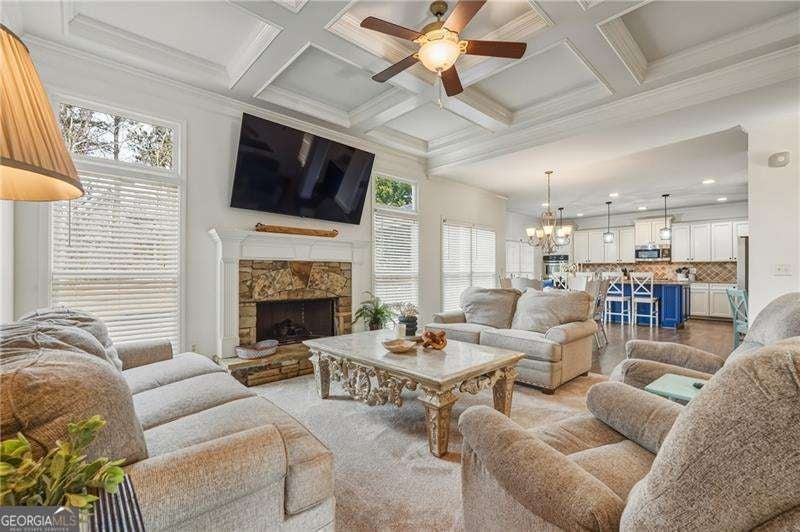 **NEW INCREDIBLE PRICE!** This is the kind of home where life feels easy, gatherings feel special, and every day feels a little brighter! Welcome to 304 Grant Ct, a stunning 5-bedroom, 4-bath home located on a quiet cul-de-sac in the highly desirable River Green subdivision in Canton. This bright and cheerful home offers an exceptional floor plan with space for everyone and everything. The open-concept kitchen is the heart of the home, featuring a large kitchen island, abundant cabinetry, double ovens, and a spacious eat-in kitchen area-perfect for everyday living and entertaining. A separate oversized dining room provides even more room for hosting holidays and special occasions. The inviting family room showcases a coffered ceiling and a cozy stone fireplace, creating a warm and welcoming gathering space. A main-level bedroom and full bath offer the ideal setup for guests or an in-law suite, while double barn doors open to a private home office on the main floor. Upstairs, the massive owner's suite offers a true retreat with generous space to relax. A large bonus room/playroom adds flexibility for a media room or game space, and spacious secondary bedrooms provide comfort and privacy for all. Step outside to a fenced backyard designed for both fun and relaxation, complete with natural boulders, a fire pit area, and plenty of space to entertain or enjoy peaceful evenings at home. Living in River Green means enjoying resort-style amenities, including multiple swimming pools with water slides, tennis and pickleball courts, playgrounds, swim teams, community events and summer concerts, and miles of walking and hiking trails leading to the Etowah River. This exceptional home combines space, style, and an unbeatable community-a rare opportunity in one of Canton's most sought-after neighborhoods.
