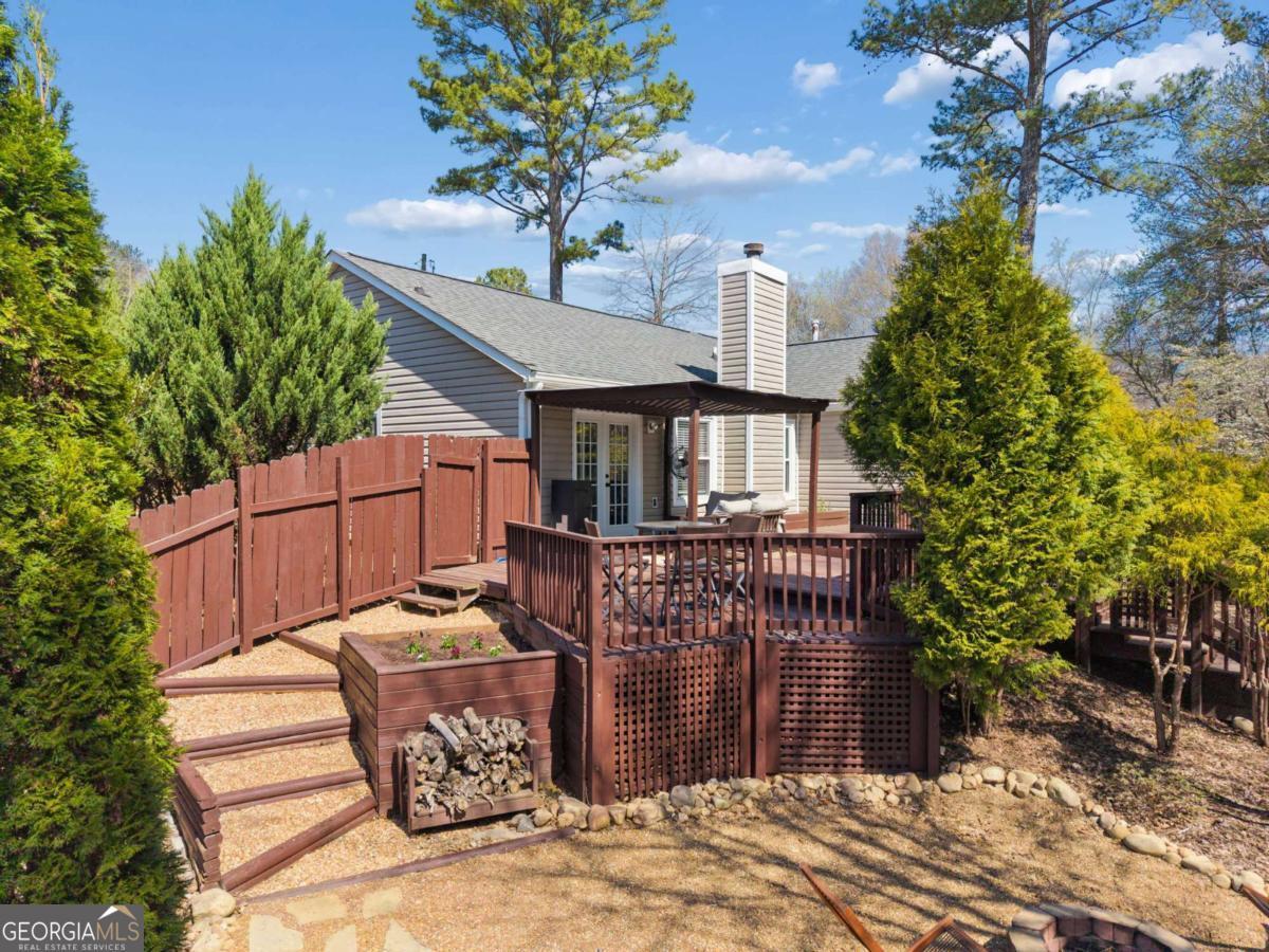 Whether it's gathering around one of two fire pits, picking fresh blueberries from your own backyard, or heading just minutes away to Downtown Woodstock's local amphitheater and vibrant atmosphere, this beautifully updated 3-bedroom, 2-bath ranch is designed for the moments that matter, with a future riverfront park less than a mile away adding even more to love. Inside you'll find new windows, a new gas stove/oven and dishwasher, living and dining rooms filled with natural light as well as, a spacious primary suite featuring 2 walk-in closets, newly installed flooring and a recently renovated bathroom complete with new vanity and walk-in shower. Newly painted guest bedrooms feature new ceiling fans & hardware while the secondary bath comes complete with a new vanity. The fenced-in back yard and large deck, partially covered by a tin roof, offers you and your guests a year-round private oasis. This outdoor space invites you to both gather with loved ones as well as and enjoy time alone in the cozy reading nook, enjoying the scenery which boasts over 45 newly planted shrubs in addition to the already thriving landscape. The 2-car garage, complete with new garage door, offers space to store whatever life throws at you. Make the space your own in a community with no mandatory HOA, situated within a top-rated school district, less than a mile from Little River Park that offers riverfront trails, water activities, playgrounds, dog parks, and open green space. Come experience it for yourself, you may never want to leave the backyard!