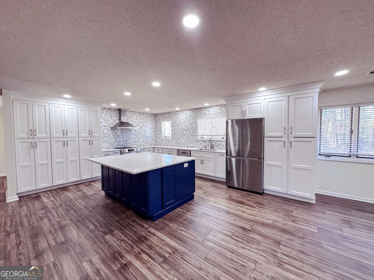 Completely remodeled in 2024, this stunning home offers modern style, thoughtful design, and exceptional functionality throughout. Enjoy a bright, open living, kitchen, and dining area featuring new cabinetry, stainless appliances, luxury vinyl plank flooring, and a spacious island perfect for gathering and entertaining. The adjacent sunroom provides a cozy spot to relax or enjoy your morning coffee. A standout feature is the hidden Murphy door to the laundry room--both clever and fun. Two generously sized guest bedrooms share an updated bath with double vanities and walk-in shower, while an additional fully renovated hall bath adds convenience. The expansive primary suite offers a large walk-in closet and a spa-like bath with a tiled shower and soaking tub. Located in a quiet neighborhood near county schools, this home also includes an in-ground termite system with bond for added peace of mind. Stylish, unique, and move-in ready--this one truly has it all!