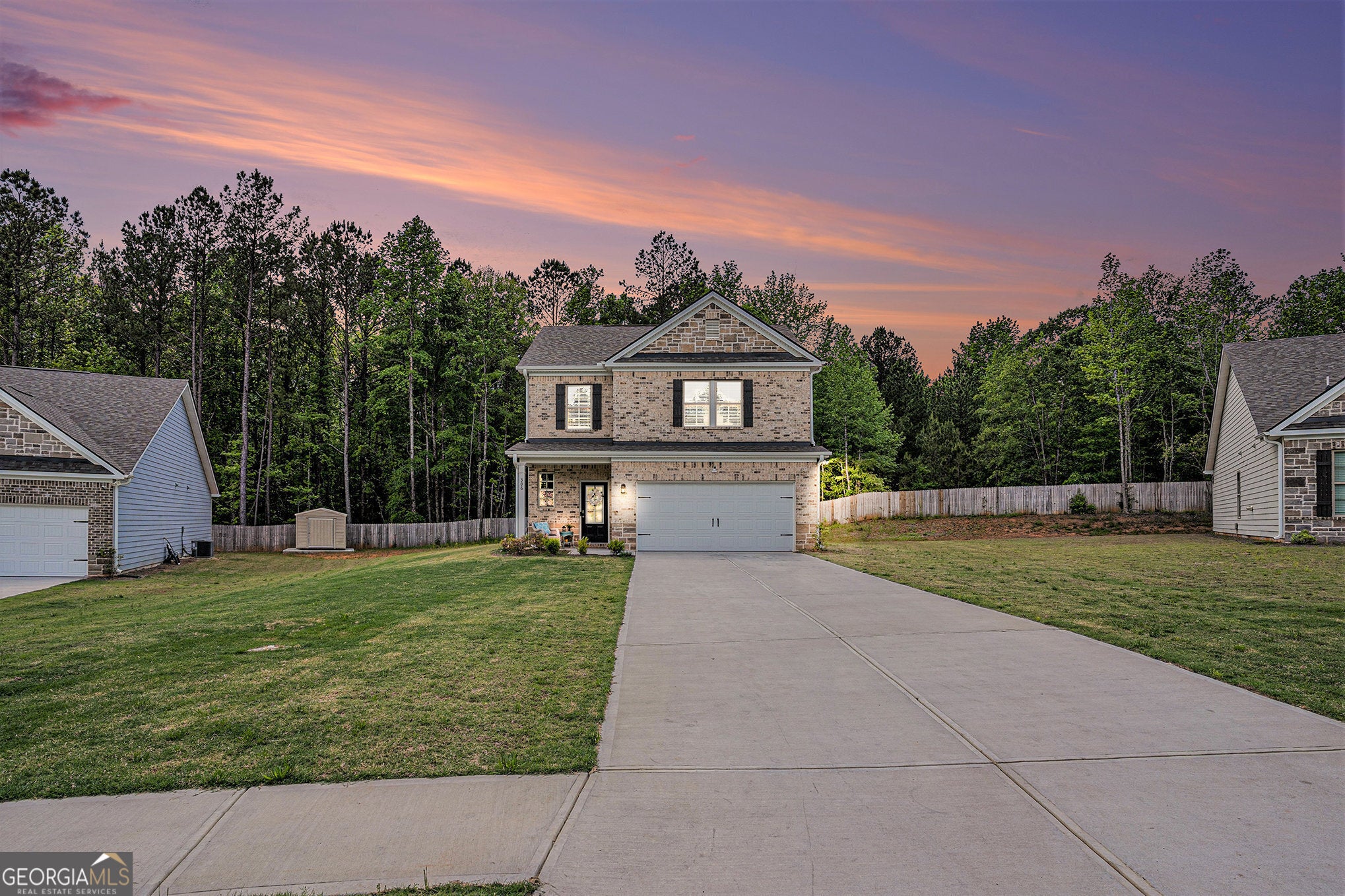 Welcome home to 306 Vine Court - a beautifully maintained, like-new 2024 build featuring the popular Mayfield II floor plan by My Home Communities. Perfectly suited for a growing family, this spacious two-story home offers comfort, style, and room to make lasting memories. Step inside to a bright, open-concept layout designed for everyday living and easy entertaining. The heart of the home is the inviting kitchen, complete with granite countertops, a large island, and a cozy breakfast area that flows seamlessly into the oversized family room-ideal for family movie nights, gatherings, and relaxing evenings together. Upstairs, the expansive primary suite provides a peaceful retreat with a double vanity, granite countertops, and a generous walk-in closet. Additional bedrooms offer plenty of space for kids, guests, or even a home office. Outside, enjoy the charming curb appeal with a full brick and stone front, along with a covered back porch featuring a ceiling fan and metal roof-perfect for morning coffee, outdoor playtime, or unwinding after a long day. Located in a growing Spalding County community just minutes from schools, parks, and local conveniences, this move-in ready home offers the perfect blend of comfort, space, and modern living. Come see why this could be the perfect place for your next chapter.
