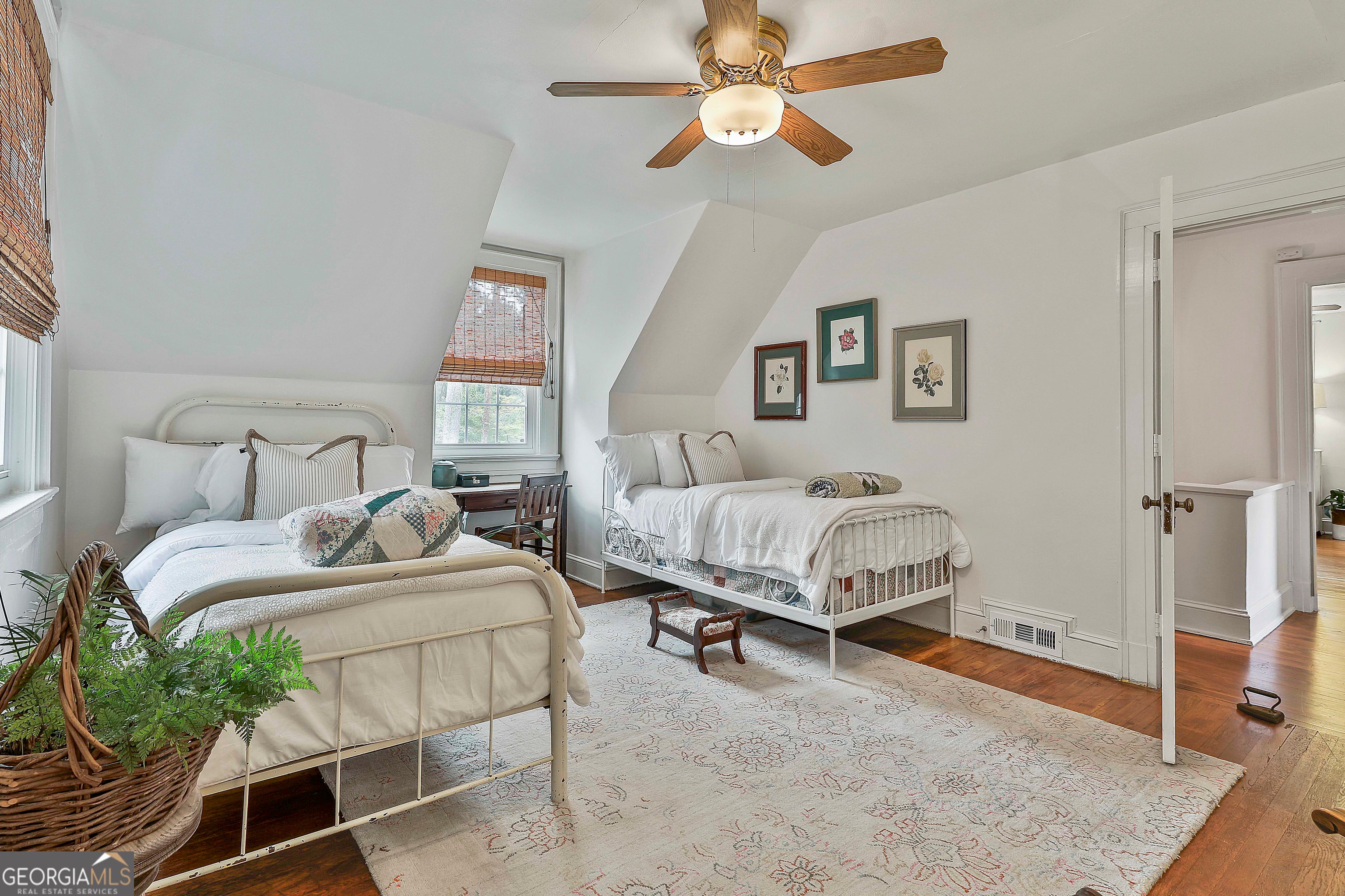 Discover timeless charm and modern comfort in this beautifully preserved 1937 bungalow, ideally situated on nearly six acres within the city limits of Fairburn. This exceptional home exudes character and craftsmanship, featuring a spacious living room, formal dining room, large kitchen, and a cozy screened porch perfect for relaxing. The main level offers a primary suite, a full bath, a half bath, an office/study, and a separate laundry room. Second level offers two additionally bedrooms and another full bathroom. Additional highlights include abundant closet space, a floored attic ideal for storage or future expansion, and a two-car garage with an attached workshop. A truly special bonus-the original architectural drawings by the home's designer will convey with the property. Set directly across from beautiful Duncan Park, this one-of-a-kind estate blends historic elegance with space, privacy, and convenience-an extraordinary opportunity in the heart of Fairburn.