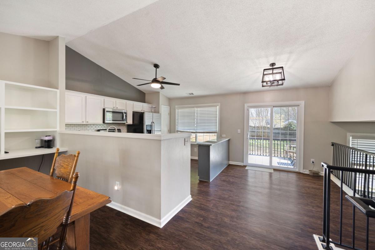 If you have been looking for a great deal in Kennesaw or Acworth, check out everything 217 Creel Chase has to offer! Perfectly located between Kennesaw and Acworth, just seconds off Cobb Pkwy, this location offers quick and convenient access to I-75, express lane access, and Hwy 92. Not only that, it is also just minutes from shopping, dining, and Cobb County and private schools. This three bedroom, two and a half bath home sits on a beautiful lot with fenced in backyard, and some mature tress between you and your neighbor, giving you that breathing room you are looking for. When you come to tour, you will immediately appreciate the covered front porch, just right for a morning coffee or enjoying the fall evenings. Come inside and pay attention the to updates, including vinyl plank flooring, brand new carpet, granite countertops, and updated lighting fixtures. The open floor plan allows for conversation between the kitchen family room, and dining area. There is even a large built-in that could be used for a desk or extra storage. The main level features a family room with fireplace, half bathroom, and even a full laundry room. The upper level boasts a large owner's suite with walk-in closet and a bathroom with walk-in shower and double vanity. The two secondary bedrooms are ample in size while one even features some design accents, sharing a guest bathroom. The two car garage is big enough for that SUV or to hold the equipment for weekend adventures and play. Add on fantastic amenities, including a pool, tennis and pickle ball courts, and full basketball court, and you wont have any reason to leave the neighborhood.