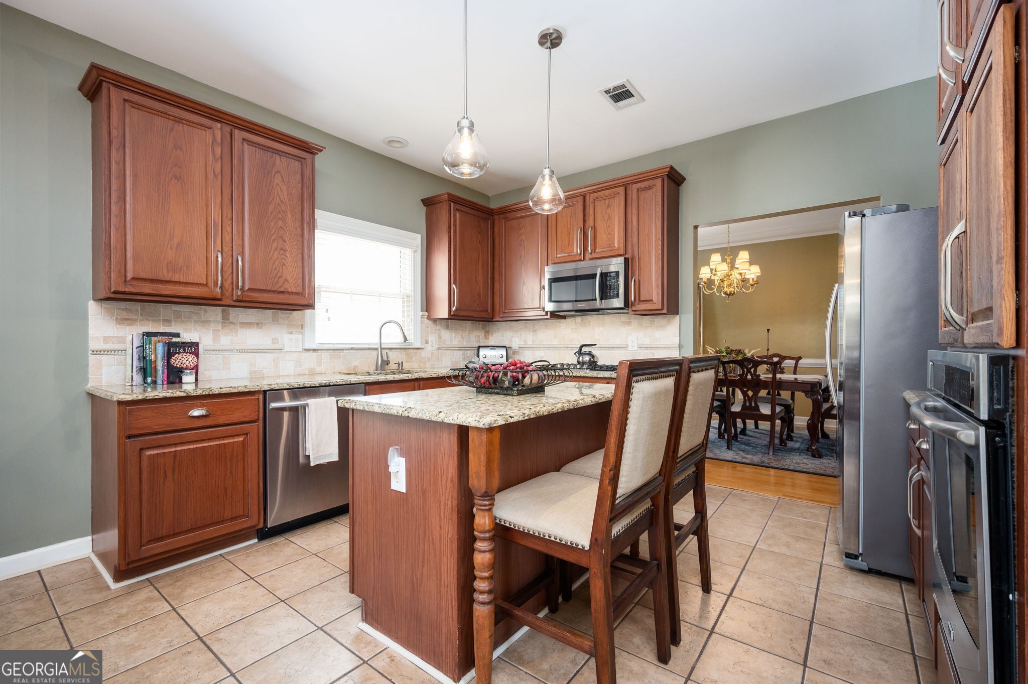 Elegant Updated Home in Cherry Ridge - Space, Style, & Serenity in Decatur. This home offers a rare opportunity to own a move-in-ready home in Cherry Ridge swim and tennis community. One of Decatur's premier neighborhoods. Beautifully updated, this 3 bedroom, 2.5 baths home is approximately 2300 square feet of refined living. Nestled on a manicured 0.34 acre lot, this home combines timeless elegance with thoughtful modern upgrades. The front door opens to a stunning 2 story foyer featuring a chandelier and grand wooden staircase. The home showcases engineered hardwood flooring in every room except the kitchen, baths and laundry room. It features detailed crown molding and a semi-open, light-filled layout ideal for both everyday living and entertainment. The upgraded kitchen is a standout, featuring upscale cabinetry, granite countertops, stone backsplash, and island seating for two. Premium appliances include a Bosch gas cooktop, Samsung refrigerator, microwave and dishwasher: and a Maytag oven. The dramatic two-story den boasts a vaulted ceiling, crown molding, and access to an open flexible FROG (finished room over garage). The formal dining room is accented with crown and chair molding for elegant gatherings. The spacious primary suite features a double tray ceiling, crown molding, large walk-in closets., and a luxurious bathroom with dual vanities, tile flooring, Jacuzzi tub with picture window, glass-enclosed shower, and private water closet. All bedrooms include walk-in closets. A bright and inviting sunroom flanks the back of the house creating the perfect place to relax year-round. It features tile flooring, ceiling fan, and walls of windows. Step outside the sunroom to a beautifully landscaped yard with cedar-lined privacy and specialty trees, including Japanese Maple, Crepe Myrtle, Oak and Smoke trees. Enjoy peaceful mornings watching birds and wildlife in your private backyard retreat. Recent upgrades include a new architectural roof (2 years), HardiPlank siding and exterior paint (3 years), upgraded flooring, gas log fireplace insert, and custom laundry room cabinetry with broom closet. The two-car garage includes an automatic opener. Located just minutes from I-20, I-285, downtown Atlanta, Hartsfield-Jackson Airport, MARTA, shopping, parks, walking trails and colleges. This established neighborhood offers everything you could want and need.