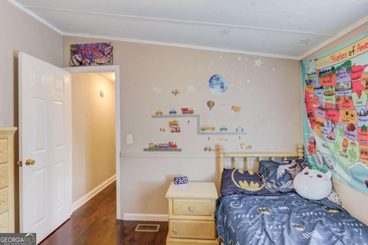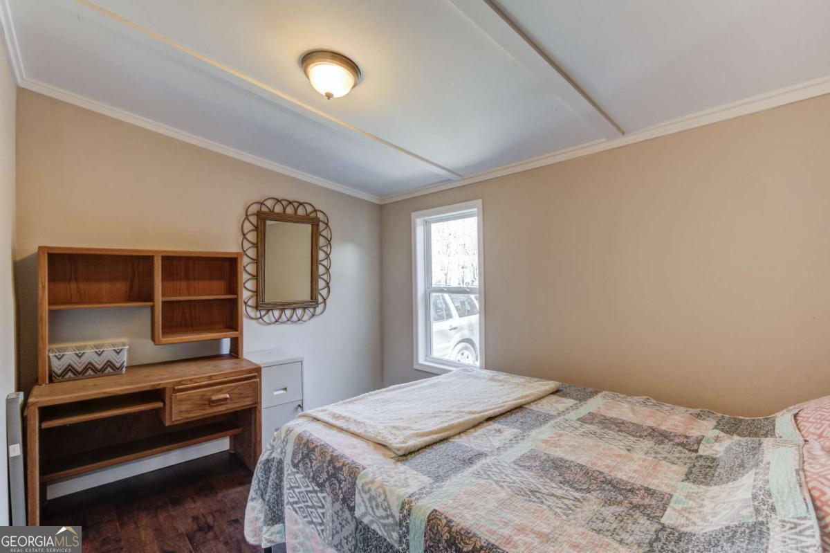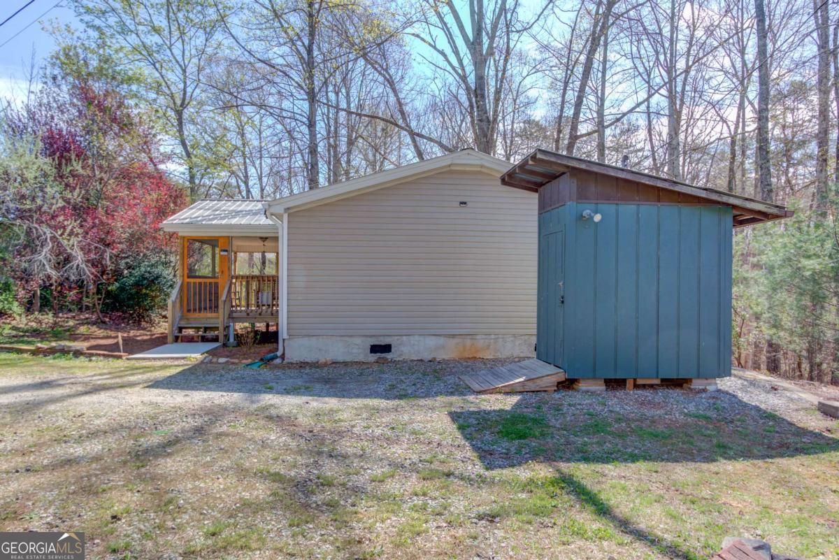 Welcome to 47 Tobacco Pouch Creek Rd - a charming 3-bedroom, 2-bathroom home tucked away on 1.66 private, wooded acres offering the peace and seclusion of country living while keeping you close to everything North Georgia has to offer. With a retired title on a permanent foundation, this property offers the affordability of modular construction with the security and financing options of traditional real estate. Step inside and you'll find a surprisingly spacious open-concept layout with rich hardwood flooring throughout, coffered ceilings with decorative beam detail, and a flowing great room that connects seamlessly to the kitchen and dining area. The kitchen features warm natural wood cabinetry, granite-look countertops, and plenty of prep space - practical and full of character. A dedicated laundry area with Samsung washer and dryer adds convenience right off the dining space. The primary suite offers a private en-suite bath with dual vanity and shower, plus a generously sized walk-in closet. Two additional bedrooms with crown molding provide comfortable space for kids, guests, or a home office. A second full bath serves the remaining bedrooms with ease. Out front, a large covered deck with a vaulted ceiling and outdoor lighting is the perfect place to unwind and soak in the peaceful wooded surroundings. A second rear deck offers additional outdoor living space, and a storage shed rounds out the property. Major systems are solid - new metal roof, well-maintained HVAC and septic, all on 1.66 private acres just minutes from the University of North Georgia campus. Whether you're an investor looking for reliable rental income, a student needing an affordable off-campus home, or a first-time buyer ready to plant roots in the North Georgia mountains, this one delivers exceptional value. Privacy, acreage, and affordability - a rare combination at this price point. Schedule your showing today!