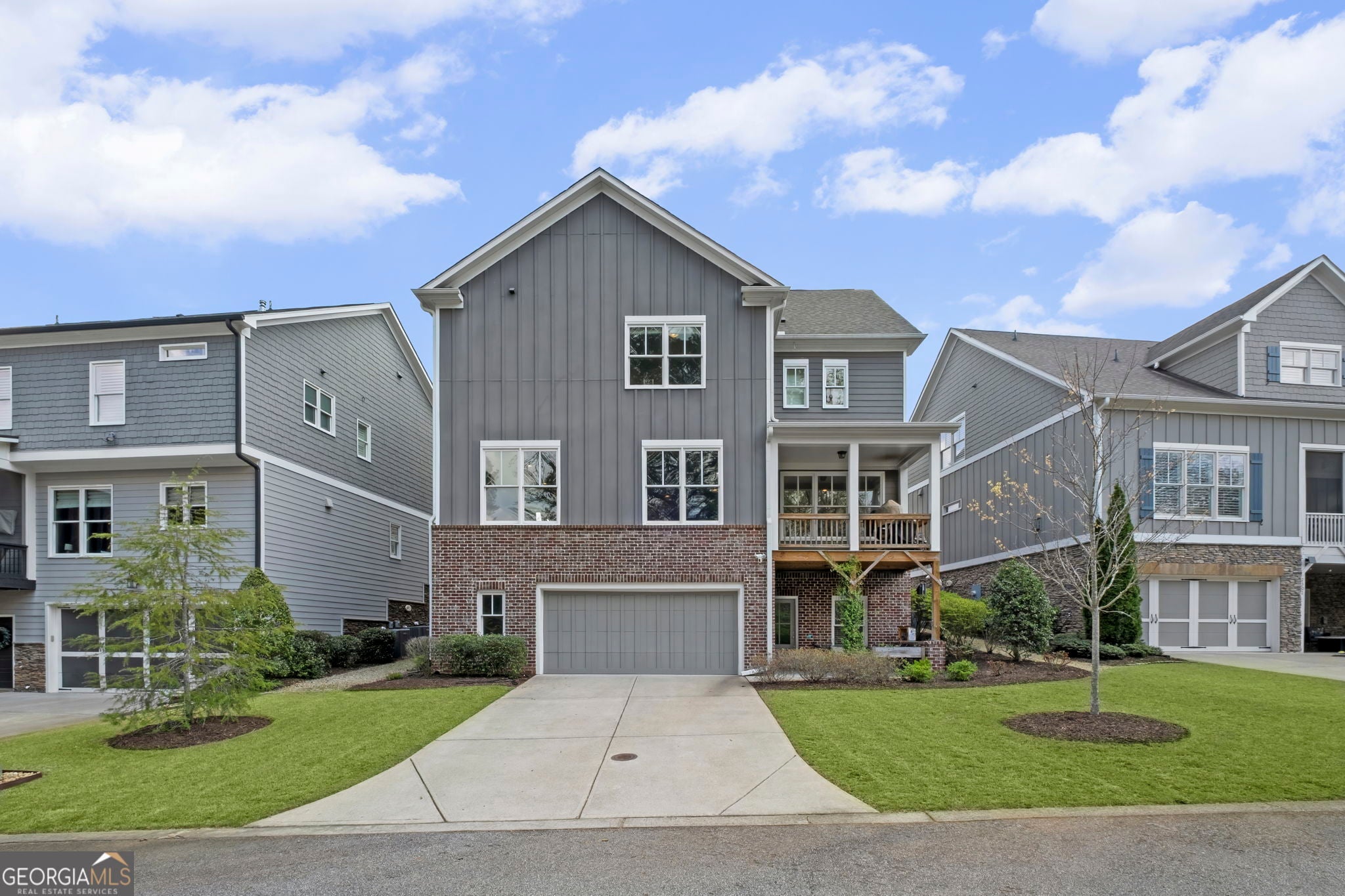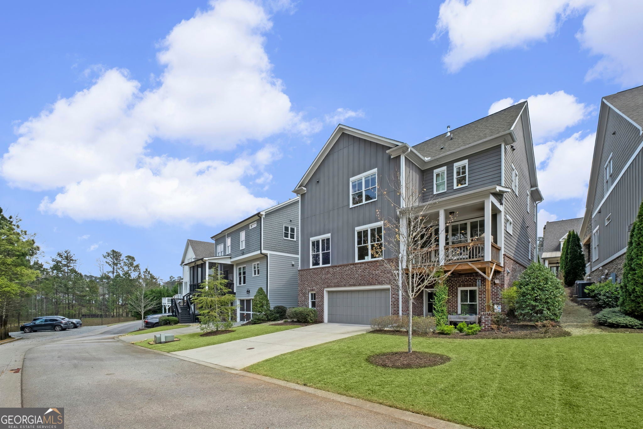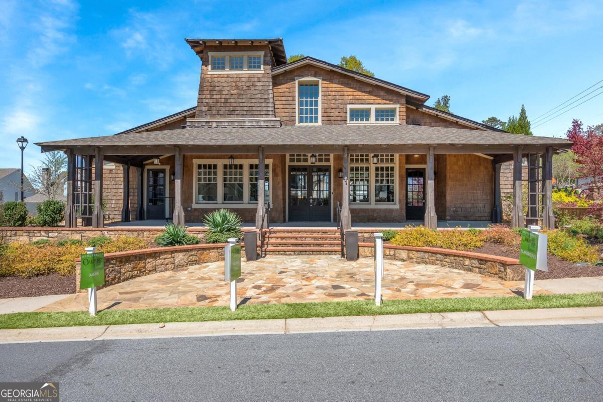 Beautifully appointed craftsman style home on a mews where the HOA maintains your yard and is convenient to everything Woodstock! This home features beautiful hardwoods throughout, a two story entrance foyer, a dramatic square spiral staircase and an additional space in the garage for a golf cart or for storage items. Many great outdoor areas and very private from the rear of the home with the tree line across the street. Main floor features an open concept bathed in natural light from an abundance of windows. Open flow from your chef-style kitchen to your oversized living room with a beautiful brick fireplace. Kitchen has light gray shaker style cabinets, granite countertops, tiled backsplash and an oversized island. All stainless steel appliances including a double oven, gas cooktop, microwave and dishwasher. Kitchen and formal dining room are separated by a butler's pantry featuring a drink chiller, wine rack and a large walk in pantry. Great outdoor living spaces on this main level with a covered deck in the rear by the kitchen that is perfect for dining alfresco, and a large wrap around front porch. Upstairs there is an oversized primary that can accommodate a sitting area and features dual closets. Tiled primary bath has dual vanities, large shower, soaking tub and a water closet. Two additional generously sized bedrooms with walk in closets that are separated by a full bath round out the upstairs. Large landing and wraparound deck complete the upper level. Terrace level features a bedroom with access to the outdoor patio, full bathroom and an office area that can act as an auxiliary bedroom. There is even a storm shelter on this level. Oakhurst is a family friendly community in a top rated school district that is loaded with amenities featuring a pool, clubhouse, picnic area, park, walking trails, playground, gardens, bocce ball court, and fire pits. Home is close to Downtown Woodstock, I 575, Dupree Park, three grocery stores (Publix, Kroger and Walmart), big box stores (Target, Home Depot, Kohl's and Old Navy), restaurants and shopping.