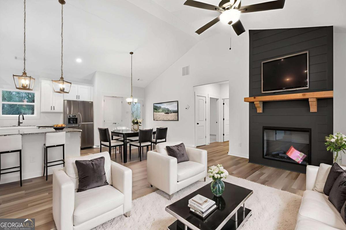 Construction is completed! Receive TEN THOUSAND DOLLARS (US $10,000) in buyer incentives when you work with our preferred lender (ask listing agent for details). Don't miss your chance to own a SPACIOUS step-less RANCH with NO HOA! This gorgeous open-concept ranch showcases UPGRADED BLACK EXTERIOR WINDOWS, a spacious family room with vaulted ceilings, and a custom shiplap fireplace, creating a warm and inviting atmosphere. The gourmet kitchen is perfect for entertaining and features GRANITE countertops, UPGRADED soft-close shaker cabinets, a FARMHOUSE sink, a large pantry, and stainless steel appliances. The large owner's suite offers a private retreat with a beautiful ensuite bathroom featuring a double vanity, custom tile shower, and a generous walk-in closet. Two generously sized secondary bedrooms provide ample storage with large closets and share a stylish full bathroom. Enjoy outdoor living on the covered back patio, perfect for morning coffee, or relax on the charming rocking-chair front porch. The attached CARPORT adds extra convenience for parking, storage, and outdoor needs. A dedicated laundry room/mudroom adds everyday functionality and convenience. Standard features include luxury LVP flooring in the kitchen, living room, entry, and baths; plush carpeting in the bedrooms; and high-quality finishes throughout. Exterior features include vinyl siding, metal window awnings, and cedar accents that complement the front porch and shutters. Enjoy the freedom of a PRIVATE LOT with NO HOA restrictions, offering peaceful country living with convenient access. Not quite the right floor plan? We have other options & lots available! Be sure to inquire about our incentives, utilizing our preferred lenders. (Interior and completed photos are not of the actual home but are representative of this floor plan. Exterior photos, however, depict the actual home and lot) Conveniently located just minutes from Dallas, Hiram, Marietta, and Rockmart.