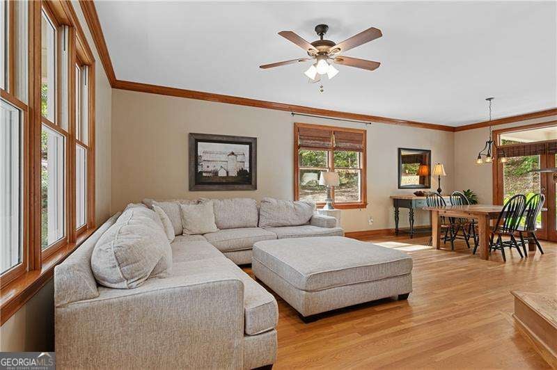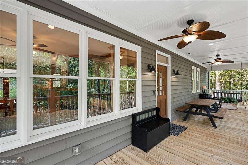 Welcome to 60 Hale Mountain Court in Hiram, Georgia - a classic Cape Cod home on 3 private wooded acres in Paulding County, offering privacy, character, and flexibility that is hard to find. With 3 bedrooms, 2.5 baths, a main-level primary suite, custom cabinets, a basement with garage and boat door access, and room to expand, this move-in-ready home delivers the features many buyers are searching for in Hiram and Paulding County. From the moment you turn into the driveway, you'll notice the peaceful setting. Mature trees surround the home and create a tucked-away feel, while the full-length covered front porch offers a welcoming place to enjoy the wooded views and quiet surroundings. This home has been thoughtfully maintained with important updates already completed. In 2020, the interior and exterior were painted, the A/C was replaced, and the water heater was replaced. In 2025, the roof was replaced, the septic system was inspected, the front steps were replaced, and some siding was replaced. Inside, the main level features hardwood flooring, warm custom wood trim, and a layout that feels open while still giving each space definition. The family room is filled with natural light and centered around a double glass propane fireplace with blower, creating a comfortable focal point for everyday living. The dining area flows easily into the kitchen and toward the outdoor living space, making the home functional for both daily life and entertaining. The kitchen offers custom cabinets, generous counter space, bar seating, open shelving accents, and a window over the sink overlooking the yard. There is abundant storage, an efficient layout, and easy access to both the dining area and porch. The main-level primary suite is a standout feature, offering hardwood floors, a tray ceiling, beautiful trim work, and generous space for a sitting area or flex space. The en suite bath includes a soaking tub with tile surround, a separate shower, a large vanity, and a walk-in closet with built-in shelving. A convenient half bath and tucked-away laundry area complete the main floor. Upstairs, both secondary bedrooms are spacious and feature new carpet, giving the upper level a fresh feel. These rooms work well for family, guests, home office space, or hobbies. The basement adds valuable versatility with garage and boat door access for extra parking, storage, a workshop, lawn equipment, or recreational gear. It is also stubbed for a future basement or garage bathroom, offering even more potential for expansion or future finishing. Outside, the 3-acre wooded lot gives you room to breathe, room for projects, and the privacy so many buyers want. Located just minutes from shopping, dining, daily conveniences, Highway 278, and Highway 20, this home offers a peaceful setting without giving up accessibility. If you've been searching for a Cape Cod home on acreage in Hiram, Georgia, with a main-level primary bedroom, custom cabinetry, updated systems, a new roof, basement storage, garage, and boat door access, and private wooded land, 60 Hale Mountain Court is ready to impress.