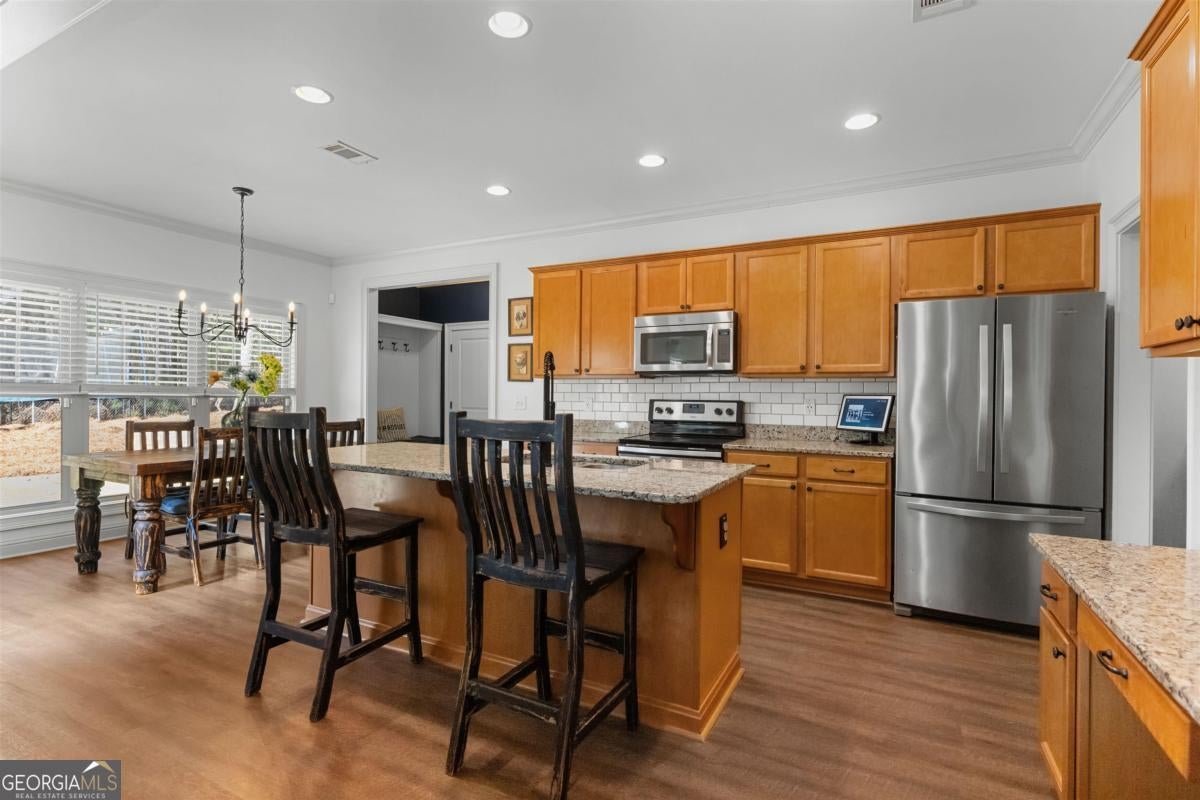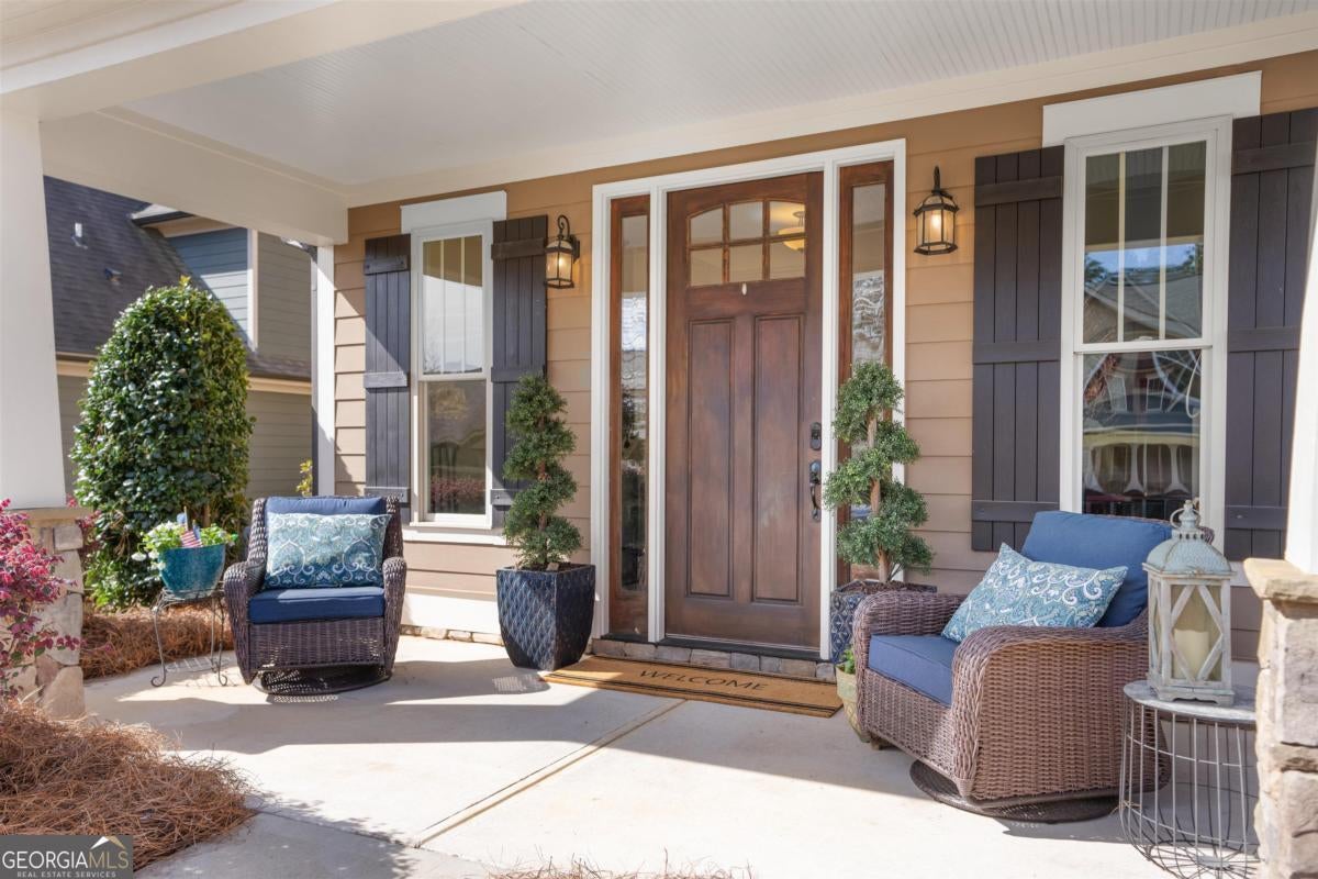 Located walking distance to a top-rated public charter school, this inviting home is located in the picture perfect neighborhood of Traditions with a community pool and beautiful surroundings. The home features 3 bedrooms, 2.5 baths, a bright breakfast room, and a versatile flex space currently used as a playroom but easily suited for a formal dining area or office. The oversized primary suite provides plenty of room to relax. The kitchen includes granite countertops and all appliances are included in the sale. Enjoy outdoor living on the welcoming front porch or private fenced in back patio area, with a professionally landscaped backyard with a cozy fire pit under the pines. A 2-car garage includes a separate workspace, perfect for hobbies or extra storage. Many residents enjoy the convenience of walking to school, adding to the strong sense of community. Sitting in the heart of Lake Oconee, access to lake life isn't far away. This is living made easy! Take a tour!