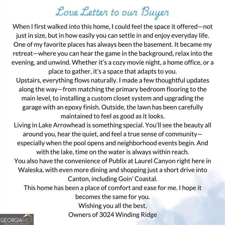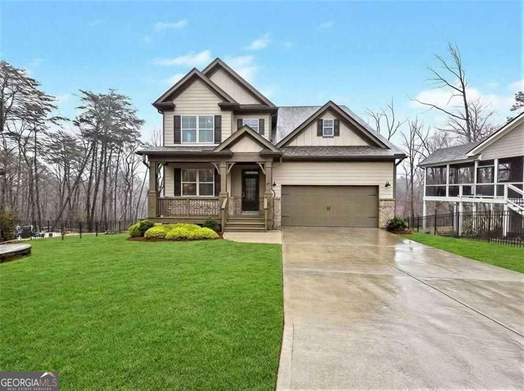 || RECENTLY APPRAISED || CUL-DE-SAC PRIVACY WITH MOUNTAIN + WOODED VIEWS || PRIMARY SUITE ON MAIN || FINISHED TERRACE LEVEL WITH 10' CEILINGS || PROFESSIONALLY UPGRADED THROUGHOUT || LEVEL DRIVEWAY + KITCHEN-LEVEL GARAGE || LAKE ARROWHEAD LIFESTYLE || Tucked away at the end of a quiet cul-de-sac in Lake Arrowhead, this home offers something that's getting harder to find-privacy, space, and a true connection to the outdoors. From the moment you arrive, you'll notice the setting. MOUNTAIN VIEWS IN THE FRONT AND PRIVATE WOODED VIEWS IN THE BACK create a peaceful backdrop that changes with the seasons. Inside, the layout is both functional and flexible, featuring a PRIMARY SUITE ON THE MAIN LEVEL and multiple living spaces designed to grow with you. The main level flows easily with LVP flooring, a spacious kitchen with ISLAND, WALK-IN PANTRY, AND STONE COUNTERS, and natural light that fills the home throughout the day. Upstairs, additional bedrooms provide separation and comfort, while the FINISHED TERRACE LEVEL WITH 10' CEILINGS opens up even more possibilities. Downstairs is where this home really separates itself-A LARGE RECREATION ROOM, FULL BEDROOM + BATH, MULTIPLE WORKSHOPS, AND EXTENSIVE STORAGE. Whether you need space for hobbies, a home gym, or simply want room to spread out, it's already here-and professionally finished and permitted. Everyday details have been thoughtfully upgraded: EPOXY GARAGE FLOORS, EV CHARGER (220V), CUSTOM PRIMARY CLOSET SYSTEM, AND A PROFESSIONALLY MAINTAINED LAWN. Plus, the LEVEL DRIVEWAY AND KITCHEN-LEVEL GARAGE make daily living easy. And beyond the home, the lifestyle takes over-boating on a clean mountain lake, golf, pools, tennis, pickleball, hiking trails, and a marina-all right inside your gated community. If you've been waiting for a home that offers SPACE, PRIVACY, AND ACCESS TO ONE OF NORTH GEORGIA'S MOST UNIQUE LIFESTYLES, this one stands out in all the right ways.