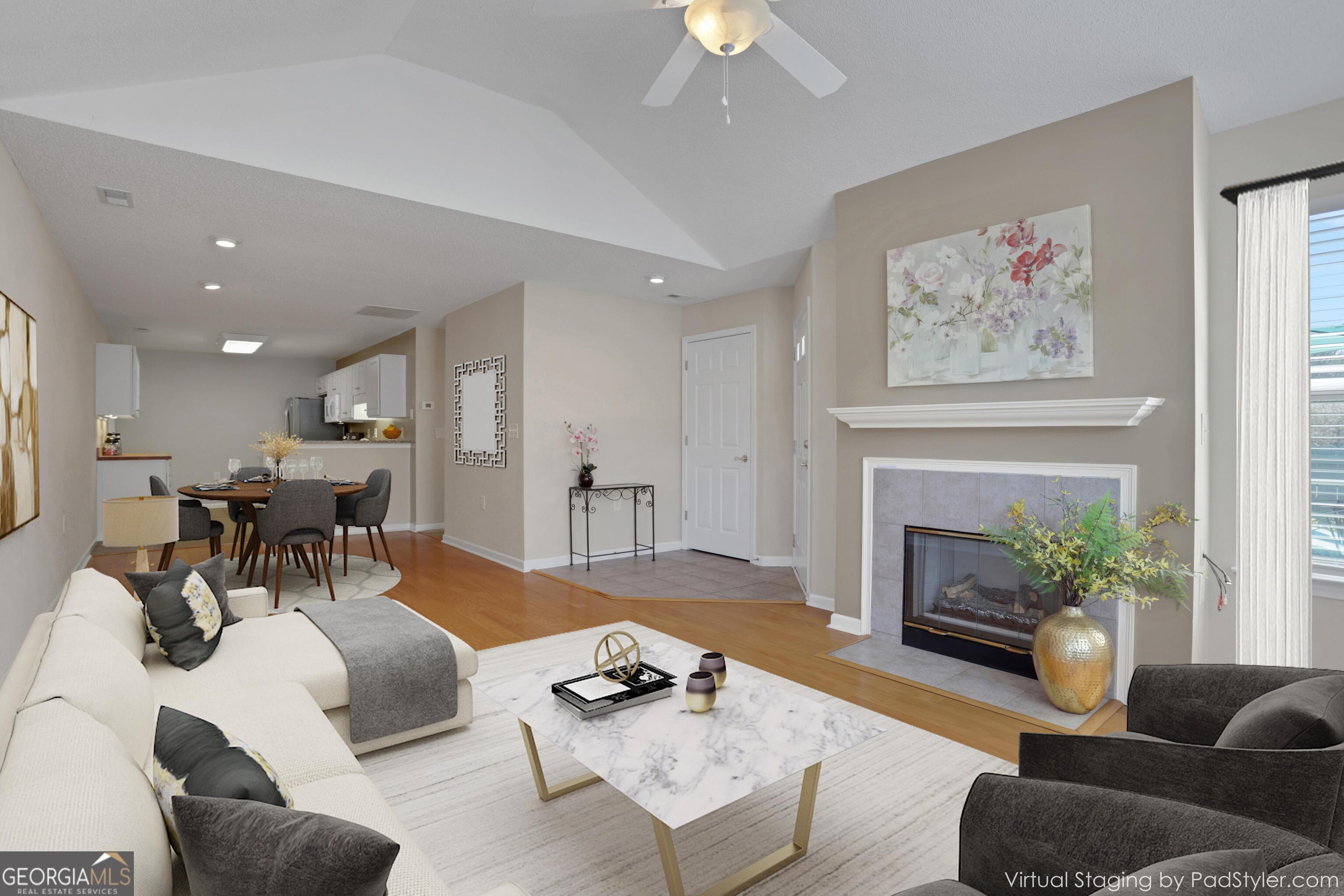Discover this inviting 2-bedroom, 2-bath condo offering 1200 sq. ft. of comfortable living space in the heart of Johns Creek. The home features a blend of hardwood floors, tile, and carpet throughout. The kitchen has modern appliances, and the hot water heater is only a year old. The home also includes a washer and dryer conveniently located in the laundry area just off the kitchen, with direct access to the garage. The garage offers ample space for storage and boasts a durable epoxy coating for easy maintenance. The Orchards at Jones Bridge is a professionally managed, well-maintained community. The monthly HOA fee is $345 and covers all exterior maintenance, water, sewer, and garbage services for worry-free living. Enjoy resort-style amenities, including a saltwater pool, a newly remodeled clubhouse, a convenient workout room, and a well-stocked library. The HOA organizes events including Game Night, Out to Lunch Bunch, monthly Birthday Parties, and holiday celebrations that offer a fun way for neighbors to connect. All of the 144 homes were painted on the exterior, new signage was installed around the community, a landscape renewal project was started and the clubhouse was remodeled in 2025. Community streets were recently repaved. Located just 4-5 miles from premier shopping and dining destinations, including Avalon, Peachtree Corners, and Downtown Alpharetta, this condo offers convenience and a vibrant local lifestyle. Don't Miss Out! Schedule your private showing today to experience all the comfort, convenience, and community The Orchards has to offer!