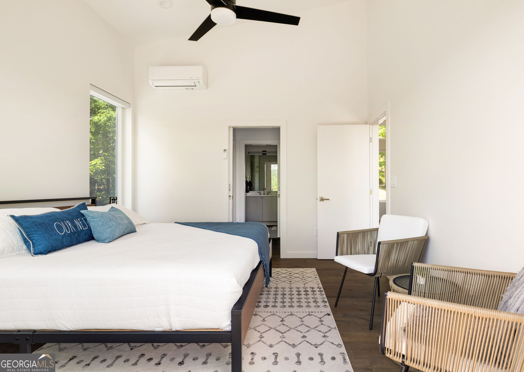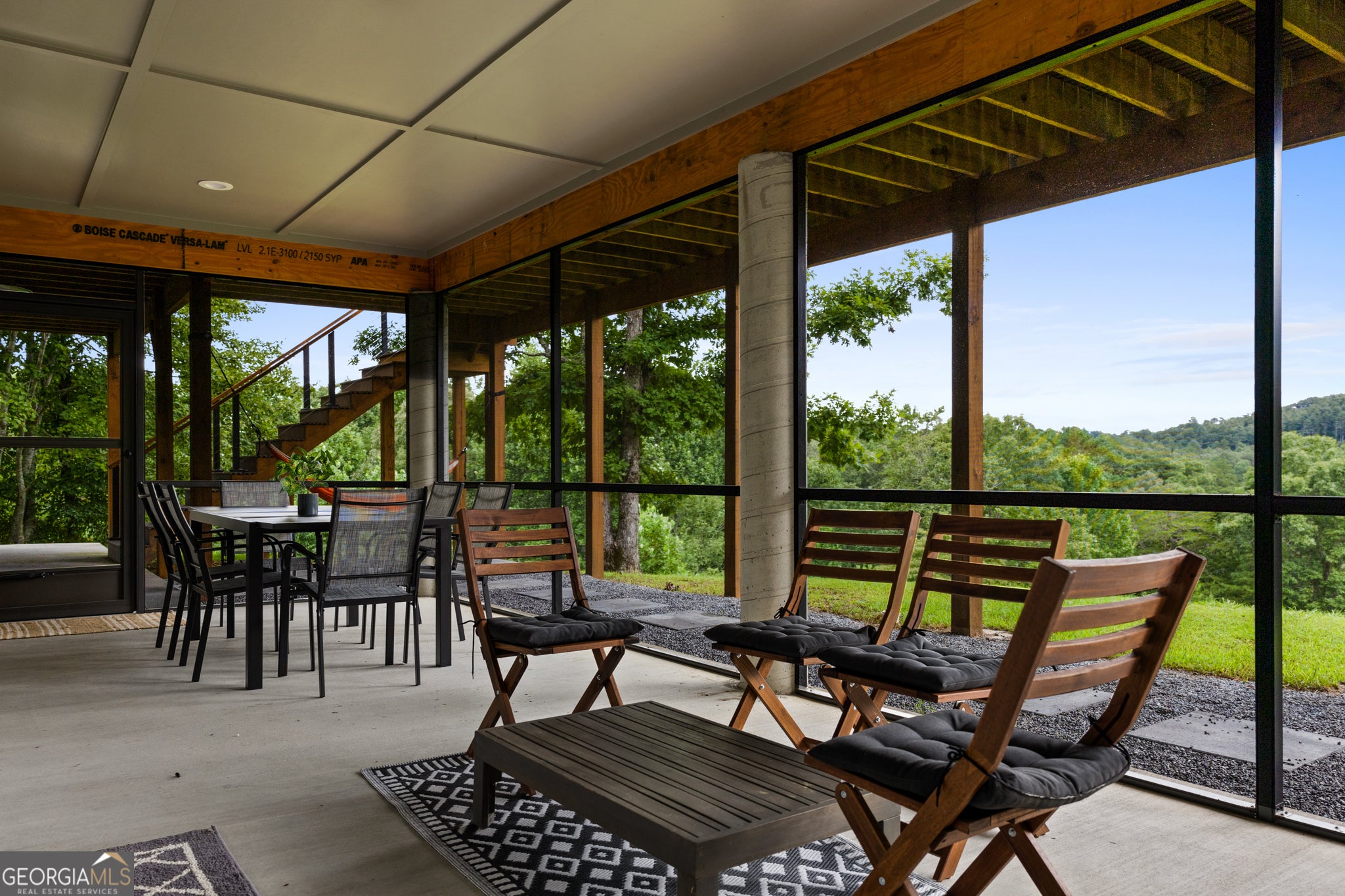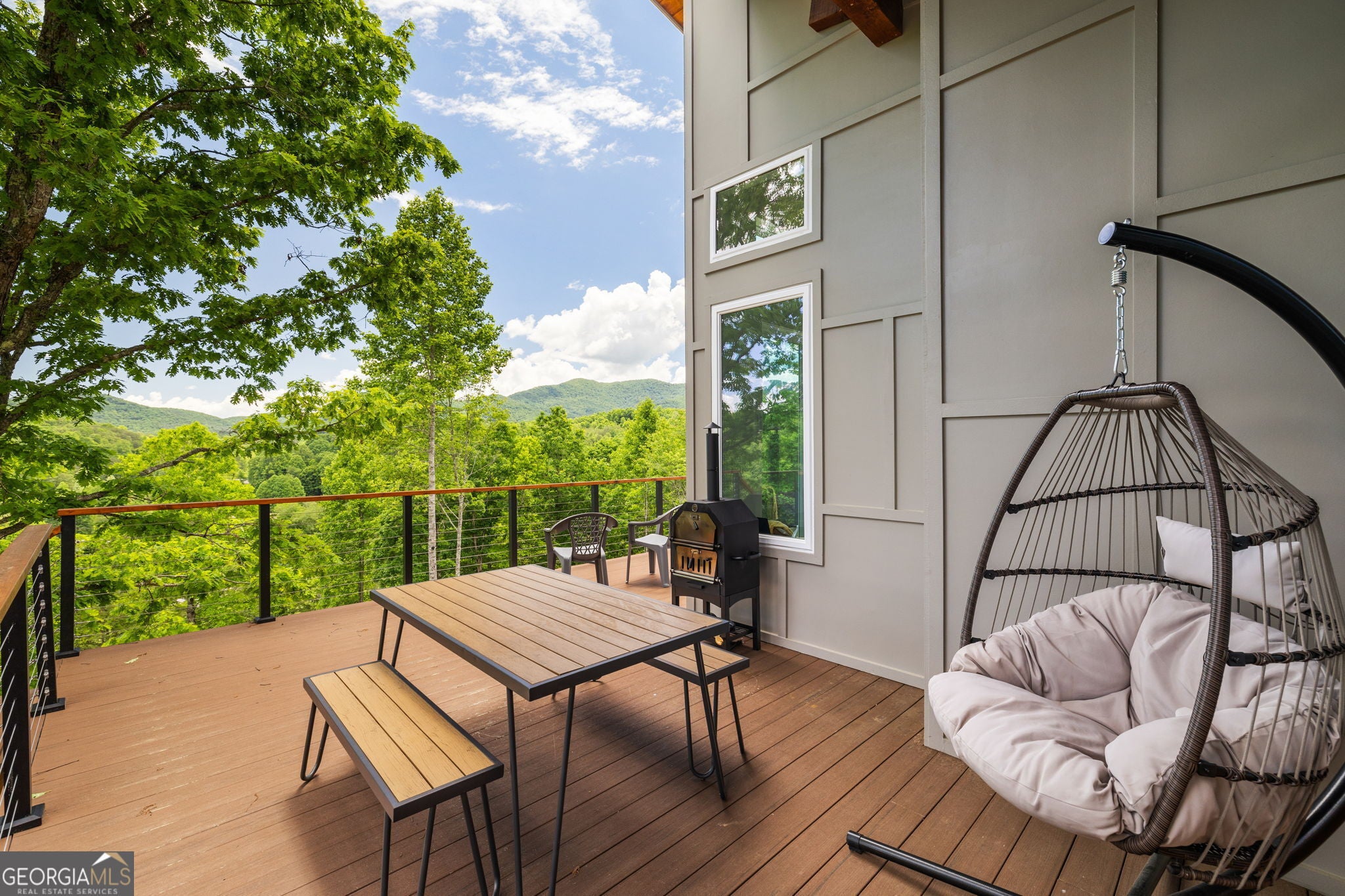 Sweeping mountain and pastoral views on over 2 acres. Windows and sliding glass doors punctuate the architecturally striking home to frame the natural beauty that surrounds it. 3 bedrooms, an office, and bonus room to meet any buyer's living requirements. 3 full bathrooms. Generous kitchen with chef's table. Huge decks, covered screened in porch, and gentle yard allow you to unwind and connect with nature. Resort style amenities with pool, fitness, sauna, walking trails, and pickleball (coming soon). Short term rental income potential. Solar, tankless water heater, energy efficient mini-split HVAC, minimal HOA fees, and low Union County taxes conspire to reduce your operating expenses to a jaw-droppingly low figure. Plenty of parking and room to build a garage. Fully furnished and ready for you to start enjoying your getaway just 2 hours from Atlanta metro in the North Georgia Mountains' premiere modern community, The Nest at Brannon Ridge Reserve. A short jaunt from the charming communities of Blairsville, Murphy, Hayesville, and Hiawassee. 40 minutes to the hustle and bustle of Blue Ridge. World class amenities of Lake Chatuge, Nottely, Crane Creek Vineyards, The John C. Campbell Folk School, and Young Harris College all under a 20 minute drive away.
