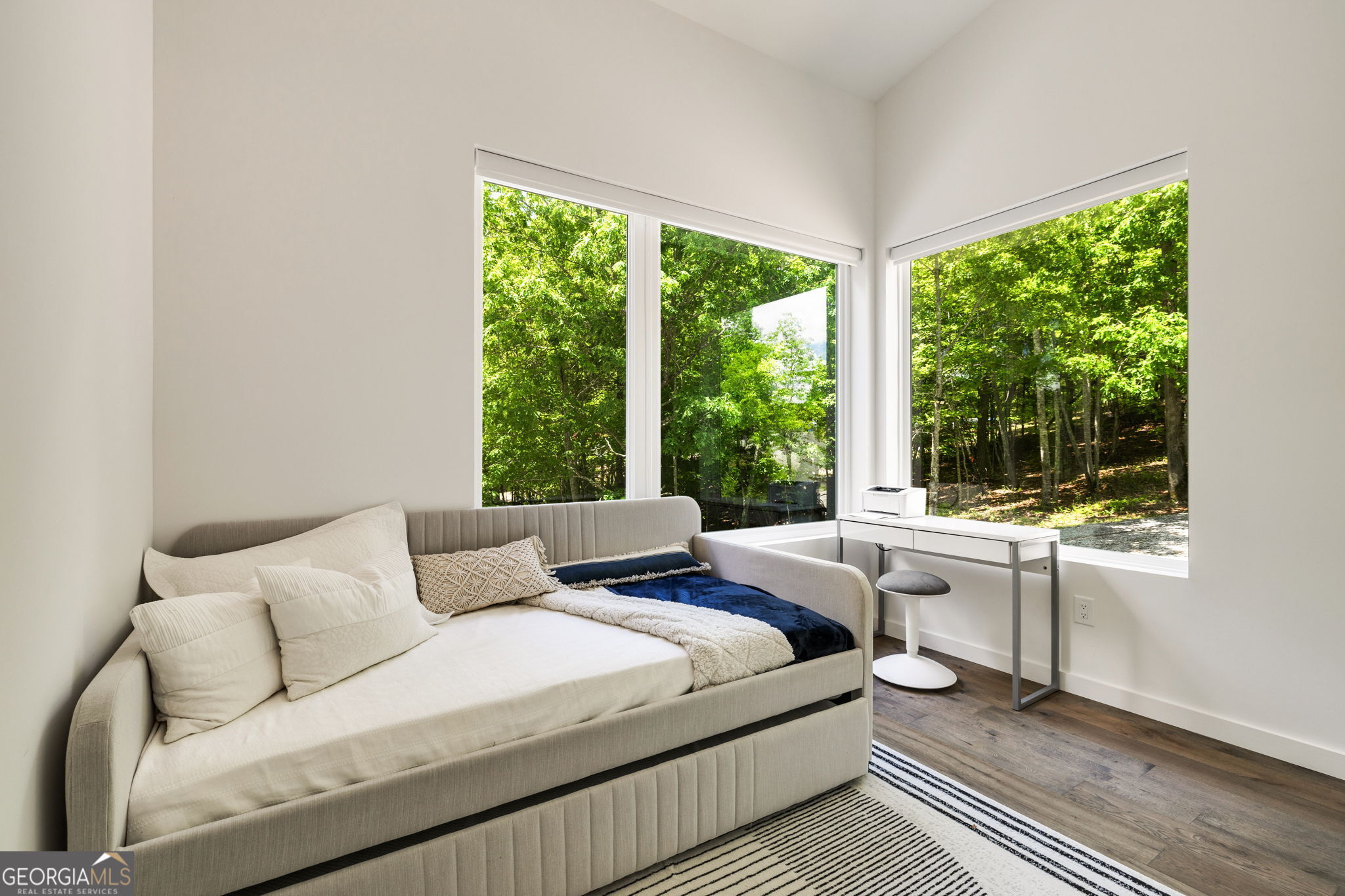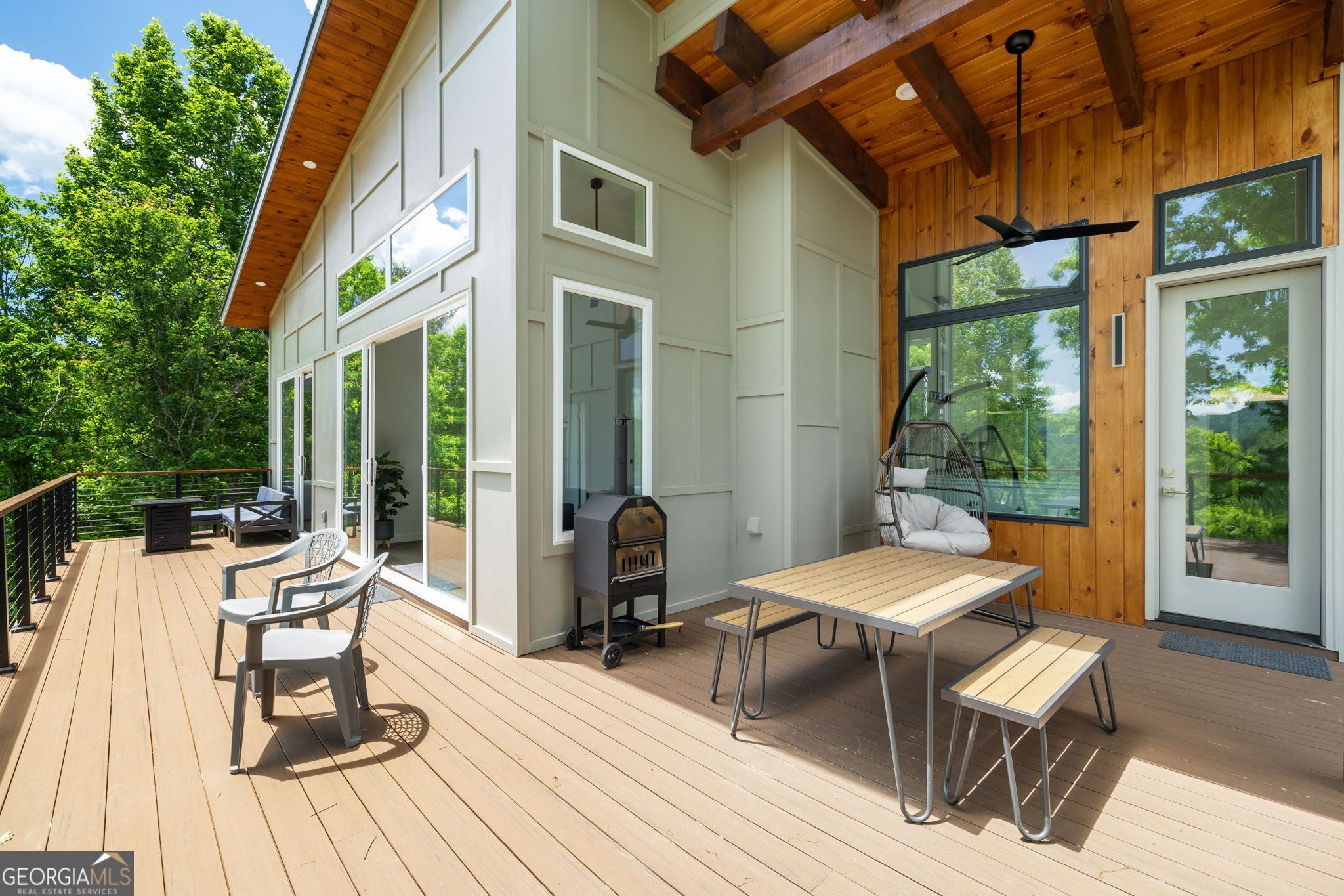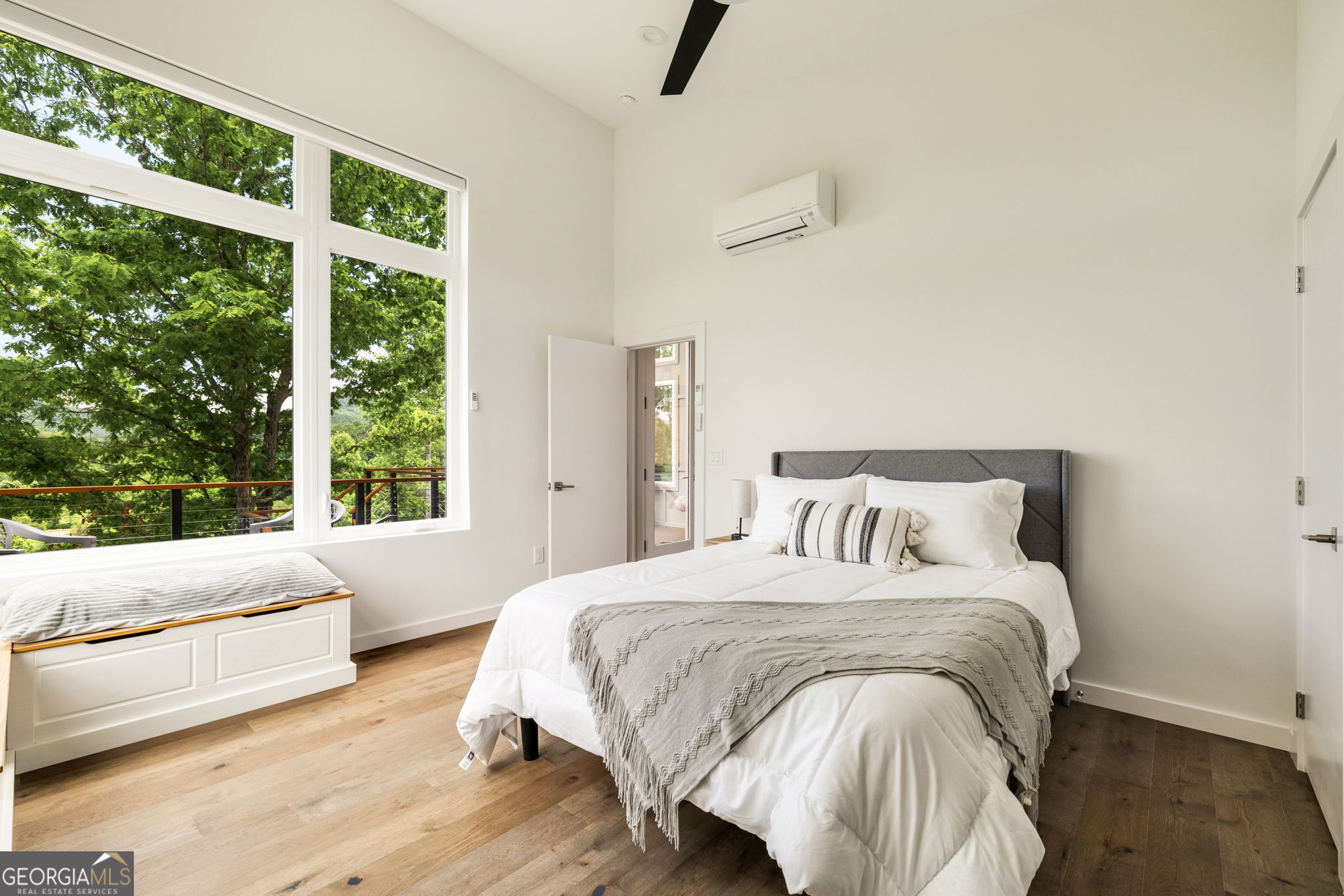 Sweeping mountain and pastoral views on over 2 acres. Windows and sliding glass doors punctuate the architecturally striking home to frame the natural beauty that surrounds it. 3 bedrooms, an office, and bonus room to meet any buyer's living requirements. 3 full bathrooms. Generous kitchen with chef's table. Huge decks, covered screened in porch, and gentle yard allow you to unwind and connect with nature. Resort style amenities with pool, fitness, sauna, walking trails, and pickleball (coming soon). Short term rental income potential. Solar, tankless water heater, energy efficient mini-split HVAC, minimal HOA fees, and low Union County taxes conspire to reduce your operating expenses to a jaw-droppingly low figure. Plenty of parking and room to build a garage. Fully furnished and ready for you to start enjoying your getaway just 2 hours from Atlanta metro in the North Georgia Mountains' premiere modern community, The Nest at Brannon Ridge Reserve. A short jaunt from the charming communities of Blairsville, Murphy, Hayesville, and Hiawassee. 40 minutes to the hustle and bustle of Blue Ridge. World class amenities of Lake Chatuge, Nottely, Crane Creek Vineyards, The John C. Campbell Folk School, and Young Harris College all under a 20 minute drive away.