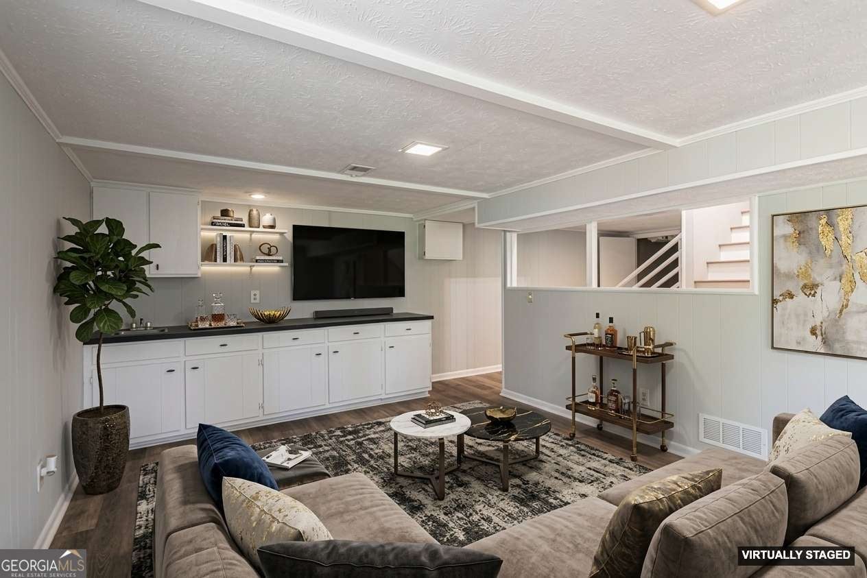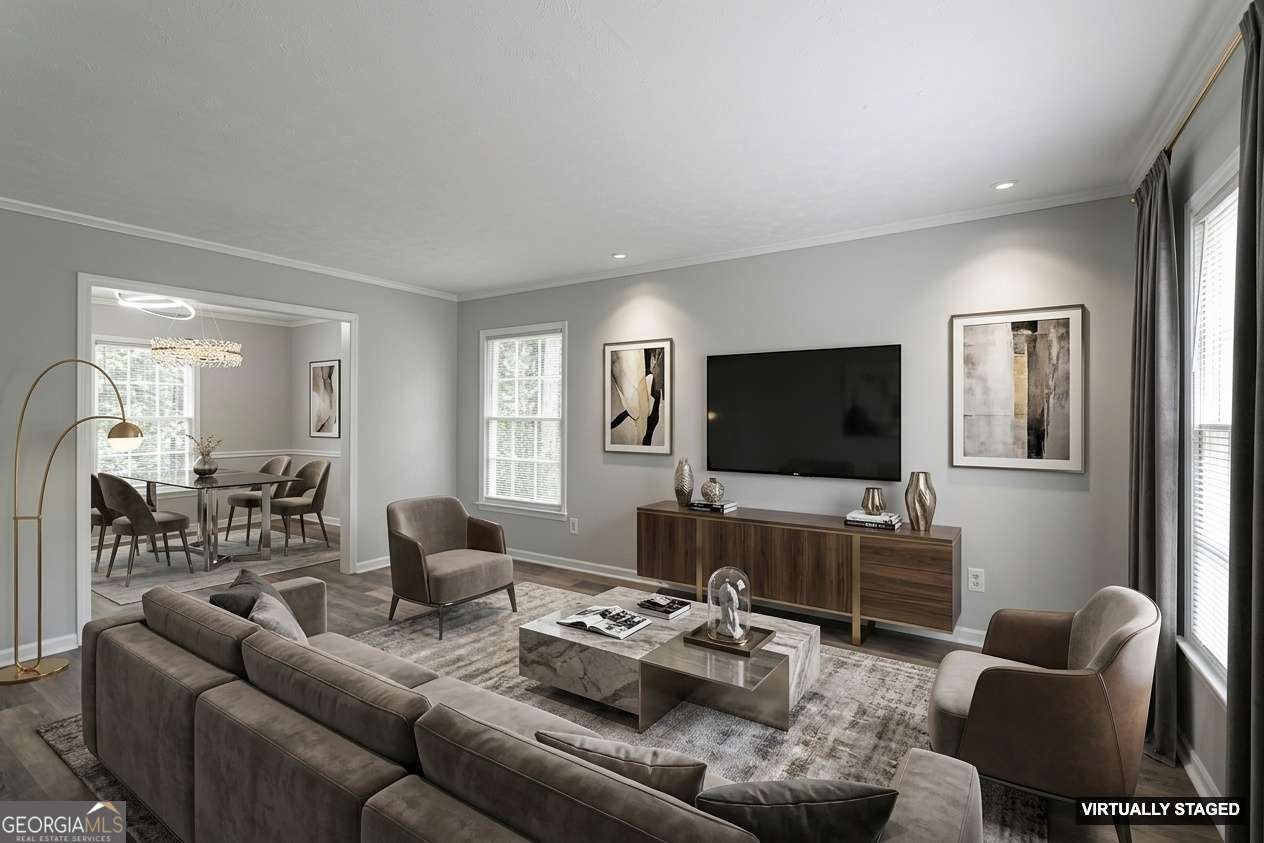 Updated and upgraded with luxury features, this classic two-story Colonial is perfectly situated on a quiet cul-de-sac lot in the Brookwood HS district. Upstairs, you'll find three spacious bedrooms and two full baths, including an oversized primary suite with a private bath featuring double vanities, a large shower, and a walk-in closet. The main level offers exceptional living space with a front living room, separate dining room, and a large family room complete with fireplace and built-in bookcases. The standout feature is the oversized sunroom, showcasing a vaulted wood-beamed ceiling, skylights, abundant natural light, and hardwood floors-seamlessly opening to the rear deck, making it ideal for relaxing or entertaining. There is also a full bedroom and full bath on the main level. The fully-renovated kitchen features quality, white cabinetry, neutral, granite countertops, tile backsplash, all new appliances, and a new sink-designed with both style and functionality in mind. The partially finished basement adds even more flexibility with two additional rooms and ample storage space. The backyard is fenced. This move-in ready home offers the perfect blend of charm, space, and modern updates-don't miss your opportunity to see it today!