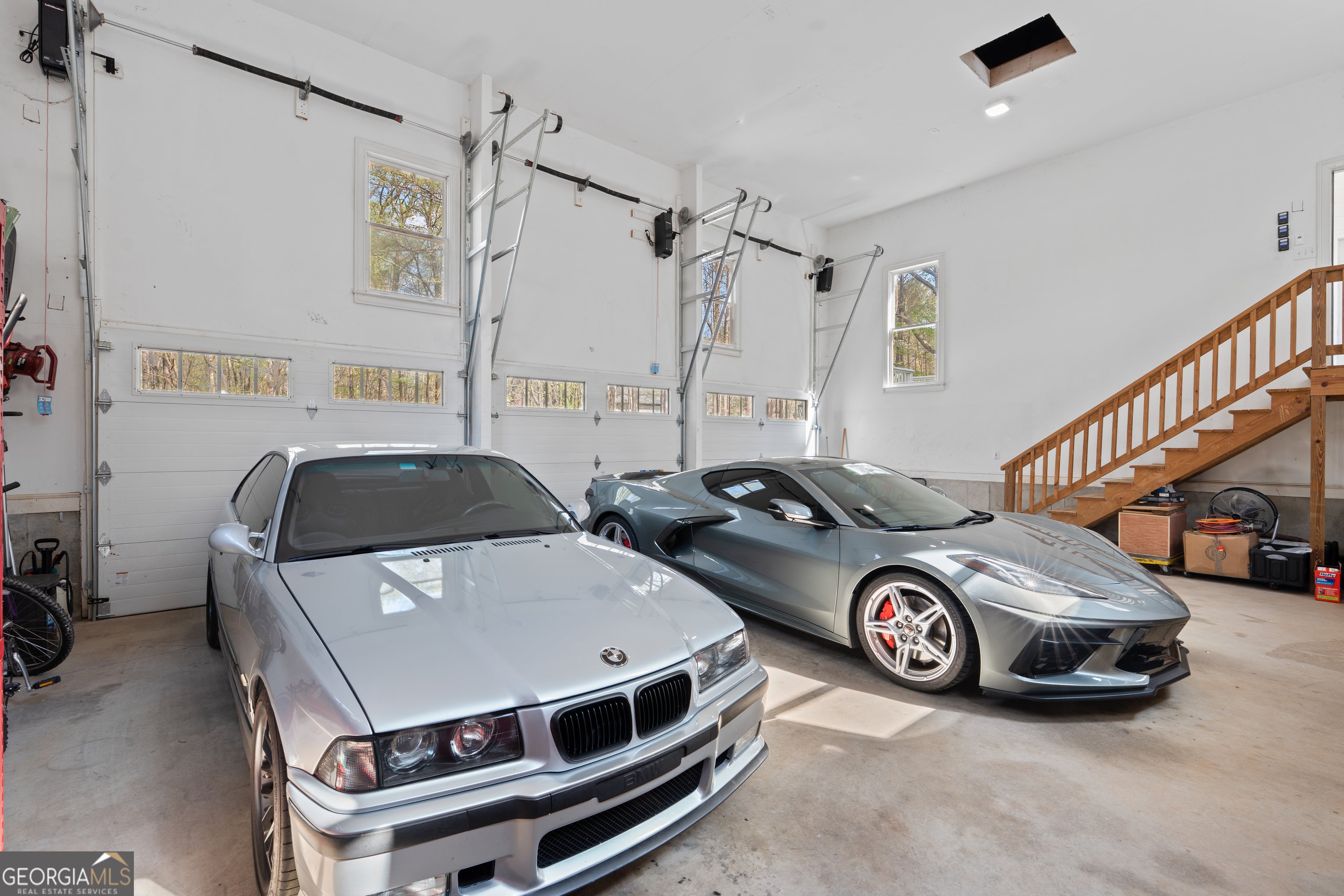 Welcome to a truly grand, show-stopping estate in the highly sought-after Lake Dow Estates-a home that seamlessly blends luxury, craftsmanship, and limitless potential on one of the largest lot in the community. Set on an expansive 2.23-acre homesite with a private creek, this property offers a level of privacy and space that is simply unmatched. Residents of Lake Dow enjoy an elevated lifestyle with lake access and Ola school zoning as well as the opportunity for clubhouse membership which includes resort-style pool, tennis courts, Georgia National Golf Course, and fitness center. From the moment you arrive, the home makes a lasting impression with its full wraparound covered porch, complete with ceiling fans-perfect for slow mornings or relaxed evenings. Out back, you'll find both a spacious deck and basement level patio overlooking the large private backyard ideal for outdoor entertainment and plenty of room for a pool, firepit, or whatever you imagine. Car enthusiasts will immediately recognize the rarity of the custom oversized garage, featuring three separate straight-lift doors (no track interference), with the potential to accommodate up to six vehicles with a lift installed-while still allowing space for a workshop or storage. Inside, the attention to detail is evident from the start. The foyer welcomes you with a laid brick walkway and stunning barreled ceilings, setting the tone for the rest of the home. A set of pocket doors leads to a flexible office or formal living room, while the formal dining room sits elegantly opposite. The heart of the home is the expansive family room, showcasing coffered ceilings, a brick fireplace flanked by built-in bookshelves, and double doors that open to the back deck for seamless indoor-outdoor living. The adjoining chef's kitchen is both functional and refined, featuring honed granite countertops, stainless steel appliances, a pot filler, a large island with bar seating, and a bright breakfast room for everyday dining. The main level continues to impress with a spacious laundry room complete with a sink, built-in cabinetry, and tiled flooring, along with a conveniently located half bath. The primary suite on the main level serves as a true retreat, offering dual walk-in closets, a window seat, private access to the back deck, and a well-appointed en suite bath with double vanities, a whirlpool tub, built-in cabinetry, and a separate walk-in shower. Also on the main floor is a secondary bedroom with its own en suite bath and dual closets, ideal for guests or multi-generational living. Upstairs, you'll find two additional bedrooms, a full bath, and a large bonus room wired for surround sound-perfect for a media room, playroom, or additional living space. Connected to this area is an expansive unfinished attic, already positioned to be transformed into additional bedrooms, another suite, or customized living space to fit your needs. The home also features a full unfinished basement, offering even more flexibility for expansion or extended living arrangements. This is more than just a home-it's a rare opportunity to own a thoughtfully designed property that offers both move-in-ready comfort and room to grow. Every detail has been carefully considered while still leaving space for you to make it your own. Simply put, this is the dream home you've been waiting for.