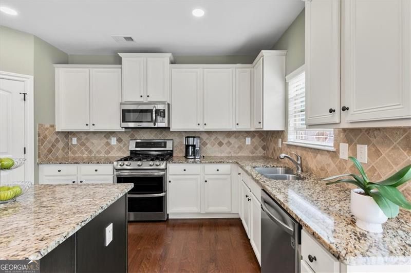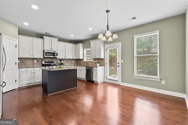 Welcome to convenience and endless living choices in this beautiful South Forsyth home! Located just minutes from HWY400, Halcyon, the Collection at Forsyth, Avalon. The first floor features a grand 2-story foyer. Enjoy a spacious kitchen with granite countertops, island and a breakfast area, a formal dining room, and a 2-story family room filled with natural light and a cozy gas fireplace. Bedroom with a full bath also located in first floor. The second floor boasts a unique layout with the master bedroom separated from the other bedrooms. The master suite includes his and her vanities with granite countertops and a generous walk-in closet. There are two additional spacious and private bedrooms upstairs, sharing a full bath located off the hallway. A conveniently located laundry room completes the upper floor. Outside, the private fenced yard features fruit trees and ample space for your personal touches. Additional highlights include a new roof (2023) and newer AC units. This home is situated in a small, friendly community with a single entrance and amenities that include a swimming pool and a kiddie pool. Come and see for yourself the charm and convenience of this cozy neighborhood!