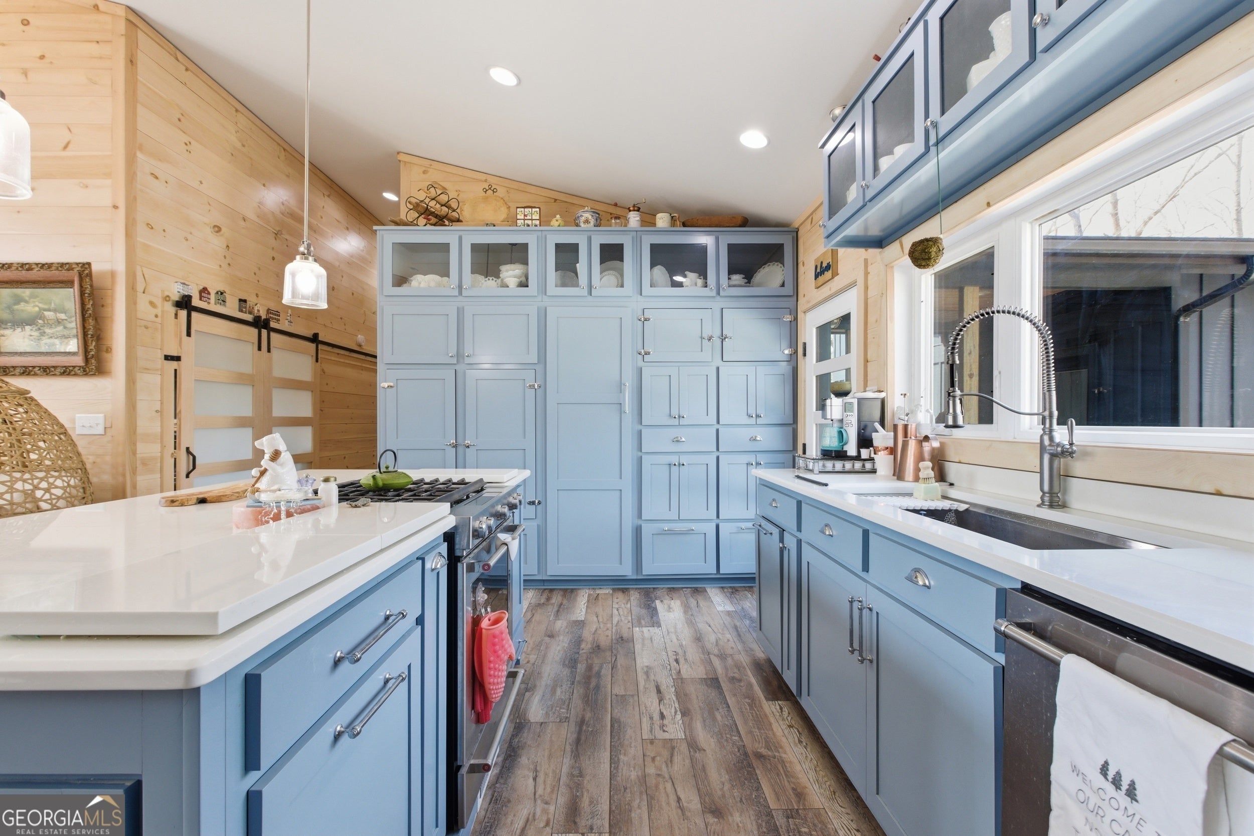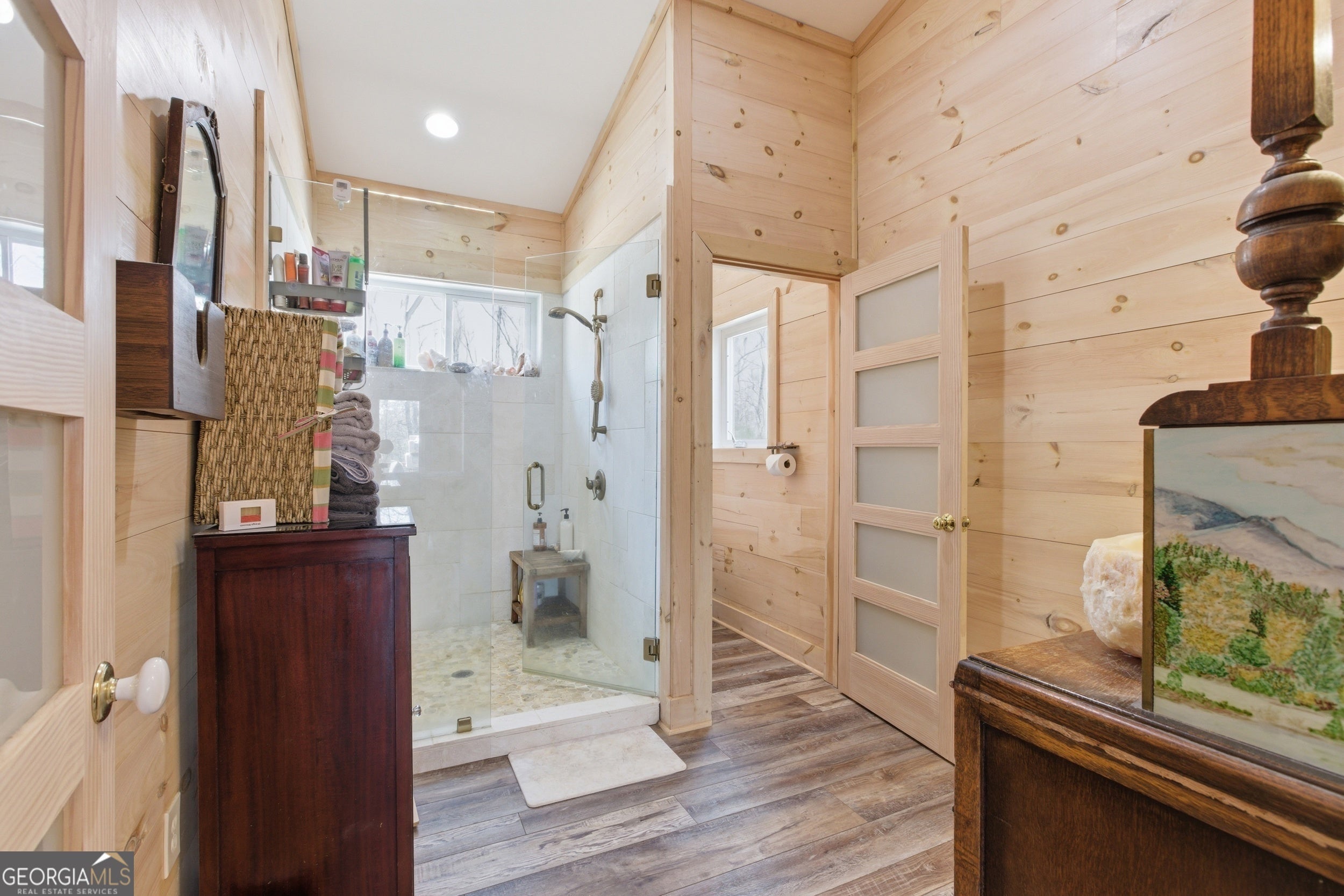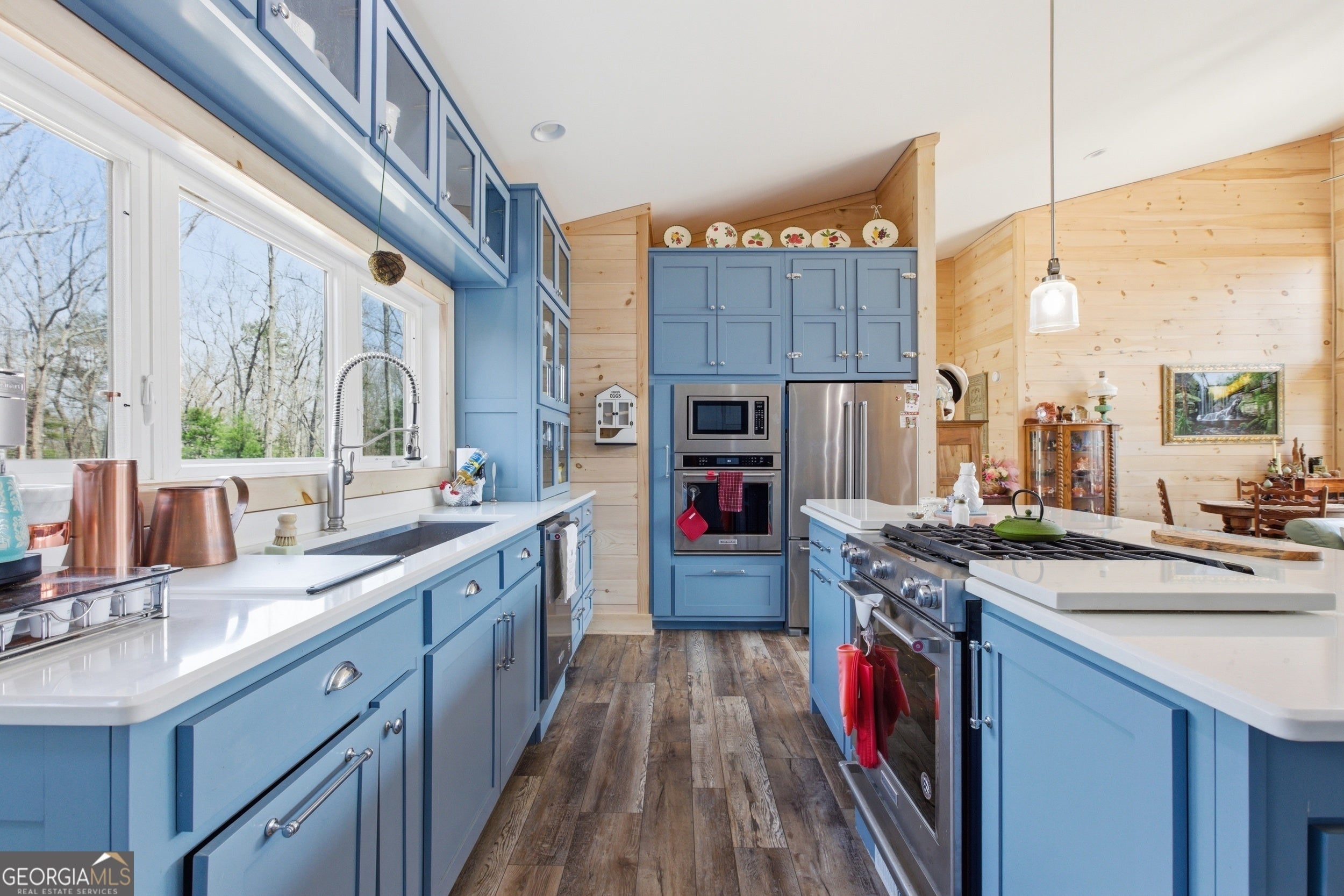 Exceptional custom built 3BR/3.5BA mountain home that was thoughtfully curated and designed sitting on 20 acres in northeast Georgia! Pickled pine walls and T & G throughout home! Open and airy floor plan that houses large kitchen with custom cabinetry, large entertaining island, quartz counters, SS KitchenAid Appliance package w/ double wall oven and gas stove. Kitchen overlooks the living space with 2 way gas fp and showcases the window wall to enjoy the views of the north Georgia foothills! TV Room/office share the other side of the gas fp. LVP flooring throughout home. Split bedroom floorplan where each bedroom has a private bath. Primary bedroom has large tile shower and double vanities. Enjoy the morning sun with the full length covered back porch, complete with ceiling fans and space for multiple relaxing locations. All stone steps and rock around the garden areas are all 200-year-old hand cut granite! Firepit space in backyard perfect for entertaining. Home has tankless water heater, whole house generator, and HVAC is filtered. Standing seam roof. Private drilled well. This is a special one of a kind custom home! Come and start living your best life in the Northeast Georgia Mountains!