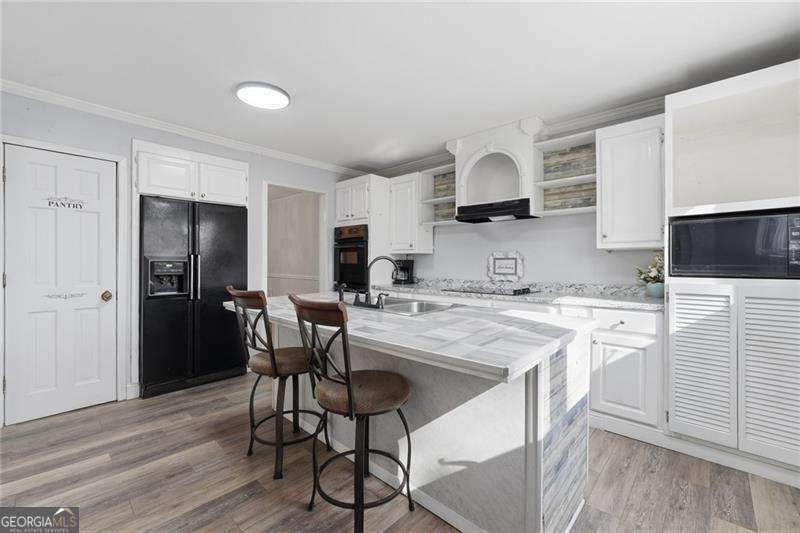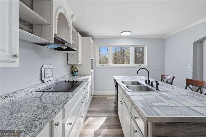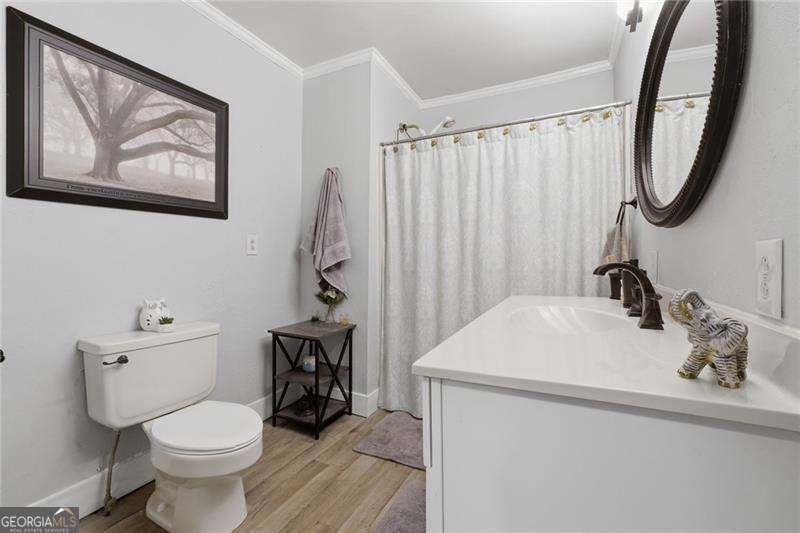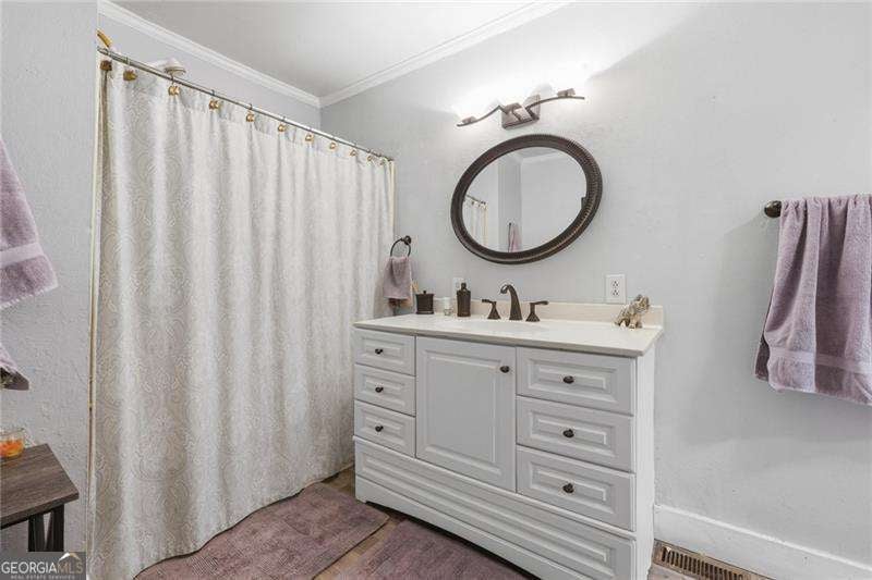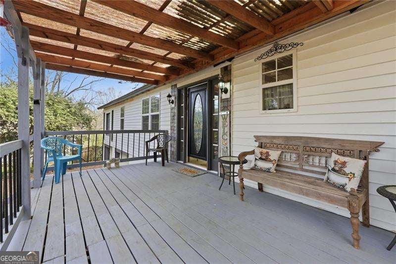 Welcome home to this beautifully updated property filled with warmth, character, and thoughtful renovations, all nestled on a large, private lot in a highly sought-after school district. From the moment you step inside, you're greeted by a versatile room to your left-perfect as a guest bedroom, home office, or bonus space. The home then opens into a spacious living area centered around a charming, antique fireplace that adds a cozy and inviting touch. The heart of the home is the expansive kitchen, featuring a large island and seamless flow into the living area-ideal for both everyday living and entertaining. Just off the kitchen, you'll find a generous dining area along with the spacious primary suite, complete with a large walk-in closet and a well-appointed primary bath. Step out onto the back deck and take in the peaceful setting of your oversized, partially wooded backyard-offering privacy and endless possibilities for outdoor living, entertaining, or simply unwinding. Down the hall, you'll find a convenient laundry closet and two additional spacious bedrooms, one of which features its own private entrance-perfect for guests, rental potential, or a home-based business. Located in a prime Woodstock location, this home also features a two-car garage in the front, plus additional rear space ideal for extra vehicles, recreational toys, or a workshop setup. This is more than just a home-it's a place where comfort, charm, and functionality come together.