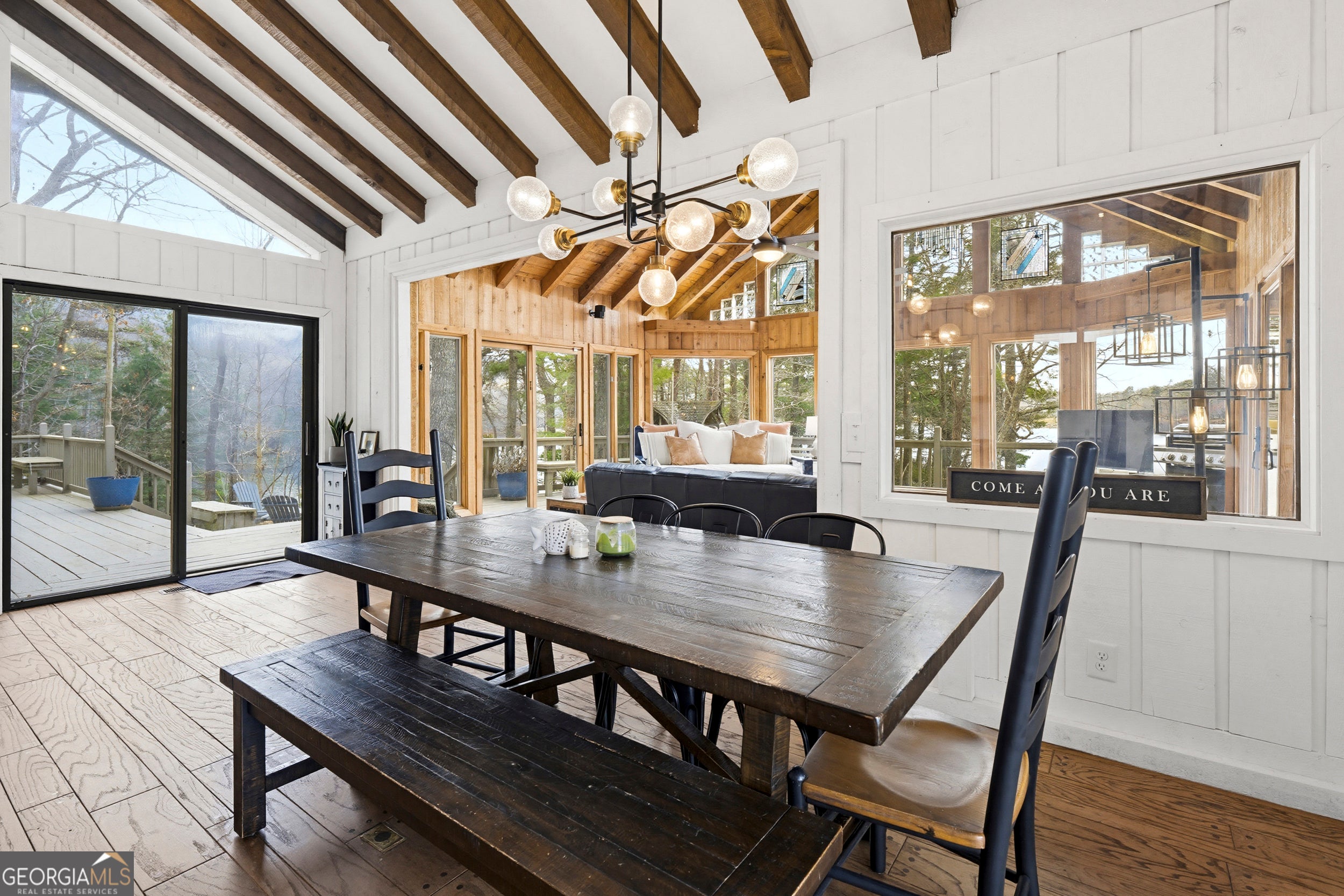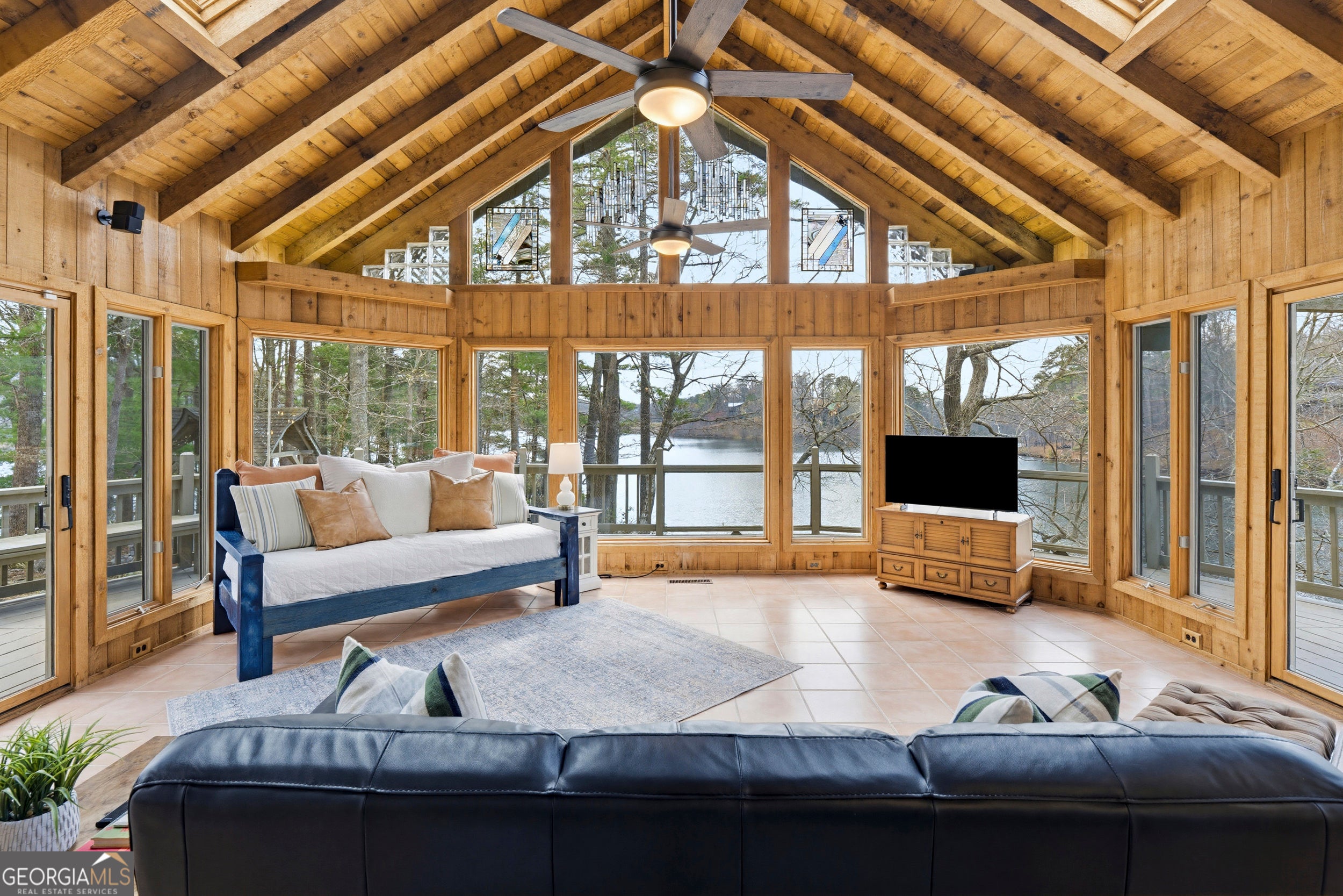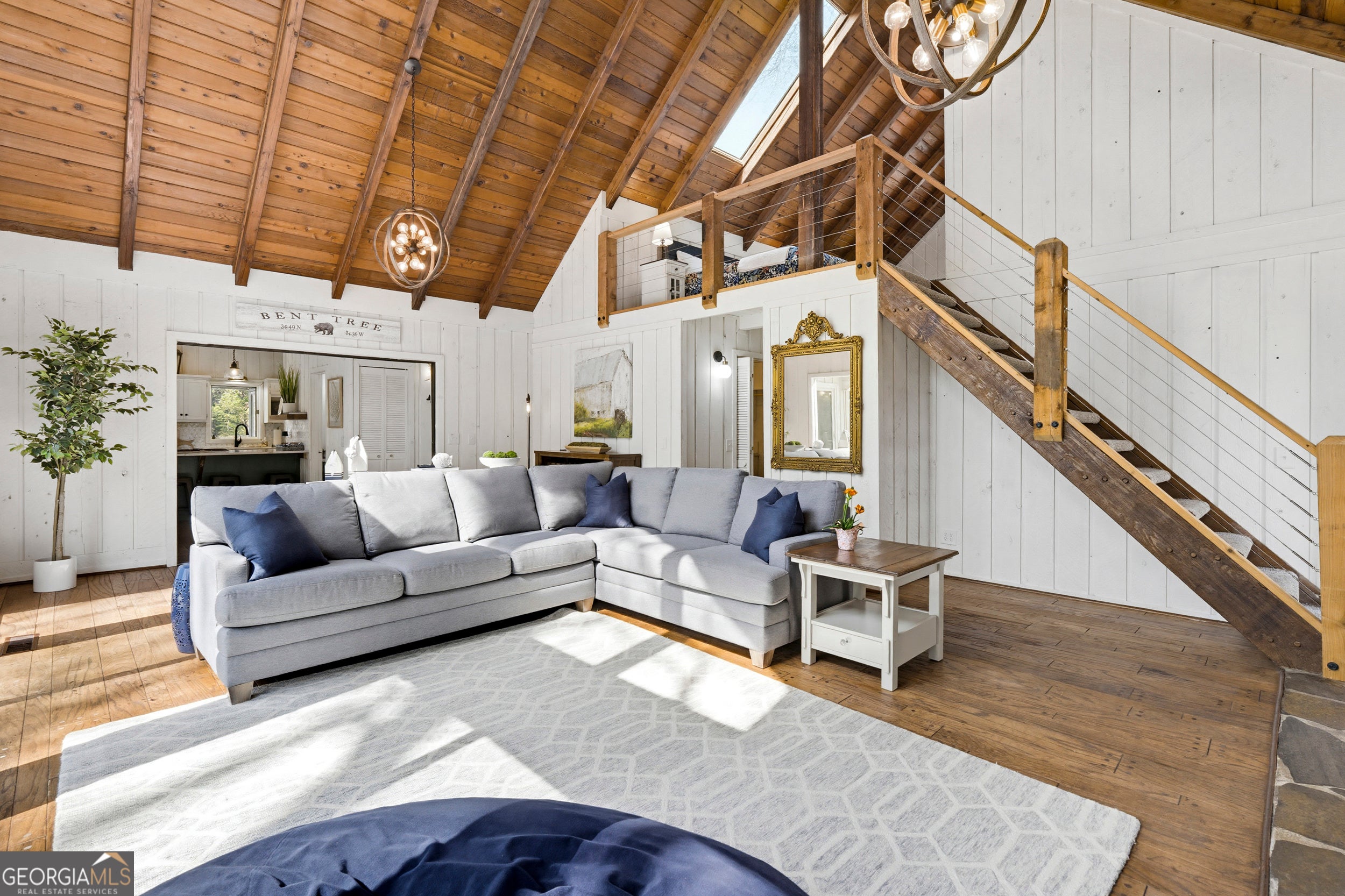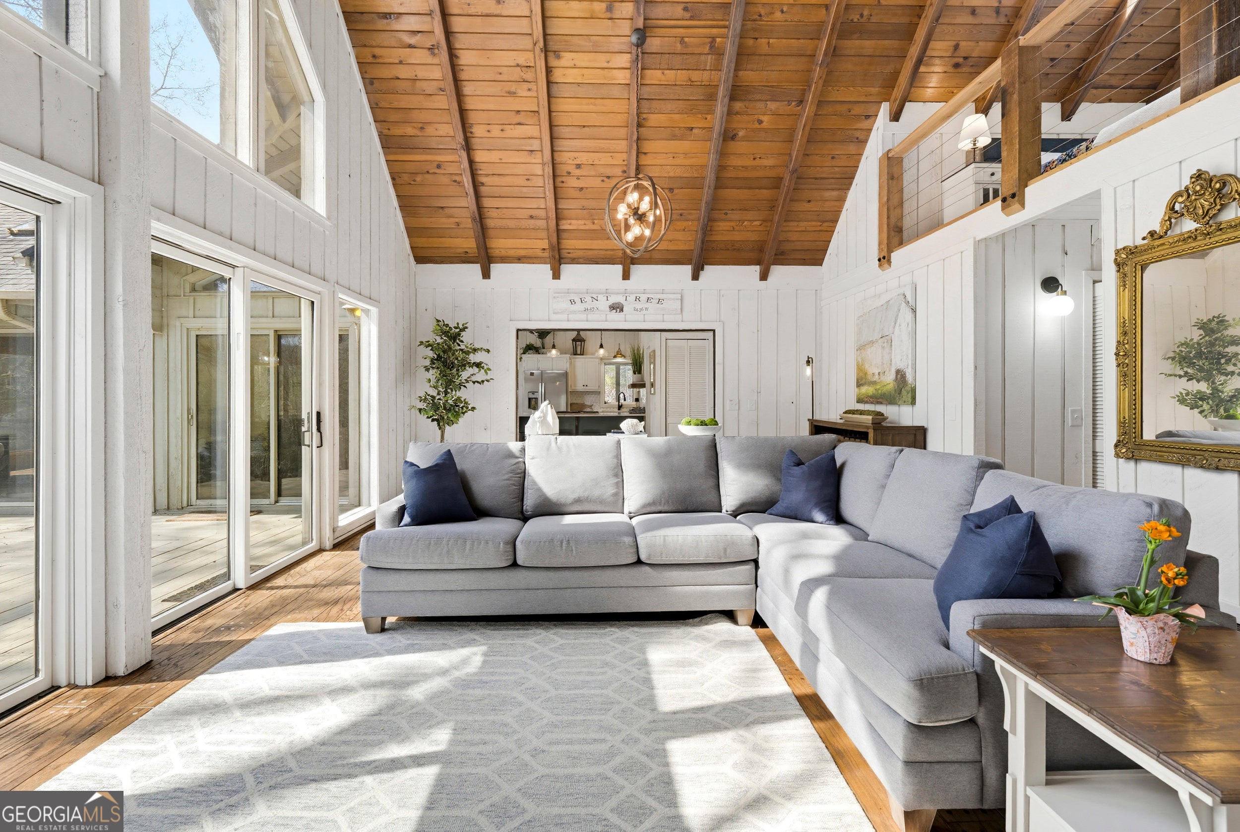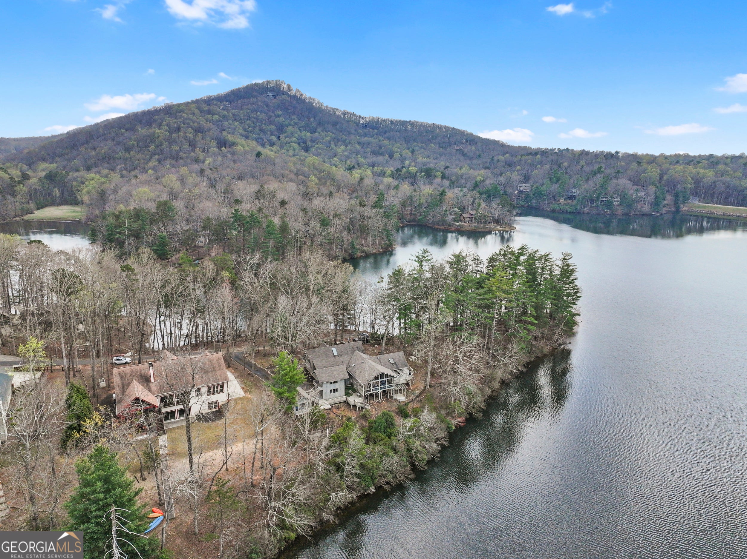 Water Water Everywhere! You won't believe the 280 degree views of Lake Tamarack! Truly the prettiest lot in Bent Tree, this home, being offered fully furnished, sits on a point with panoramic views of the lake from every single window! A true and tranquil escape, surrounded by water and greenery. The wrap around decks allow for endless outdoor entertaining and relaxation. Whether you are sitting on the back porch, sipping coffee and taking in the water/mountain views or swinging on the porch swing with a glass of wine while enjoying the sunset...this is a sanctuary you and your guests will never want to leave. No neighbors to your left, just greenery, privacy and water! You have a long, level driveway for amble parking and two garages for all of your water toys (included in sale!) This one of a kind chalet home offers large living spaces, so there is plenty of room to spread out. There is a large family room with stone fireplace, beautiful wood flooring and a wall of glass windows to enjoy the spectacular view. The renovated kitchen is fun and bright with quartz countertops and space for the large dining table that leads you to the stunning sunroom with wall to wall windows and the most incredible view of the lake and mountains you've ever seen! the main level boasts two generous bedrooms and a full, renovated bathroom. There is also a half bath off the living space. Upstairs the is a huge Primary Suite/Loft with double walk in closets and it's own renovated ensuite bath and balcony. There is another bedroom, for your over flow guest, above the garage. Adjacent to one of the two garages is a game room to keep the teens busy when it's too dark to be kayaking, fishing, golfing, playing tennis, pickleball, or hiking! Basement offers an addition room for an office, workout room, storage...whatever you need, in addition to a workshop. This has been a beloved family lake house and very successful AirBnB. It is being sold fully furnished, including lake toys and would make a one of a kind year round or weekend retreat. Bent Tree offers Golf, Pools, Tennis & Pickleball, Stables, boating and the 18th Hole restaurant and pro shop. Did I mention the community is gated?!! Don't miss out on this spectacular setting to call your own little slice of paradise!
