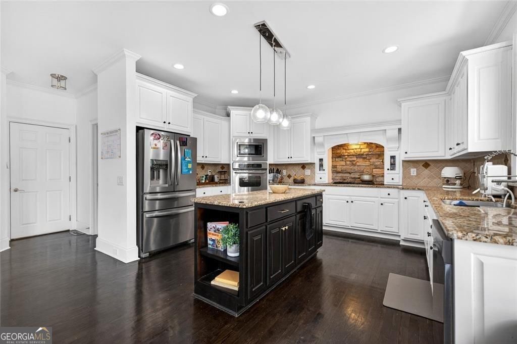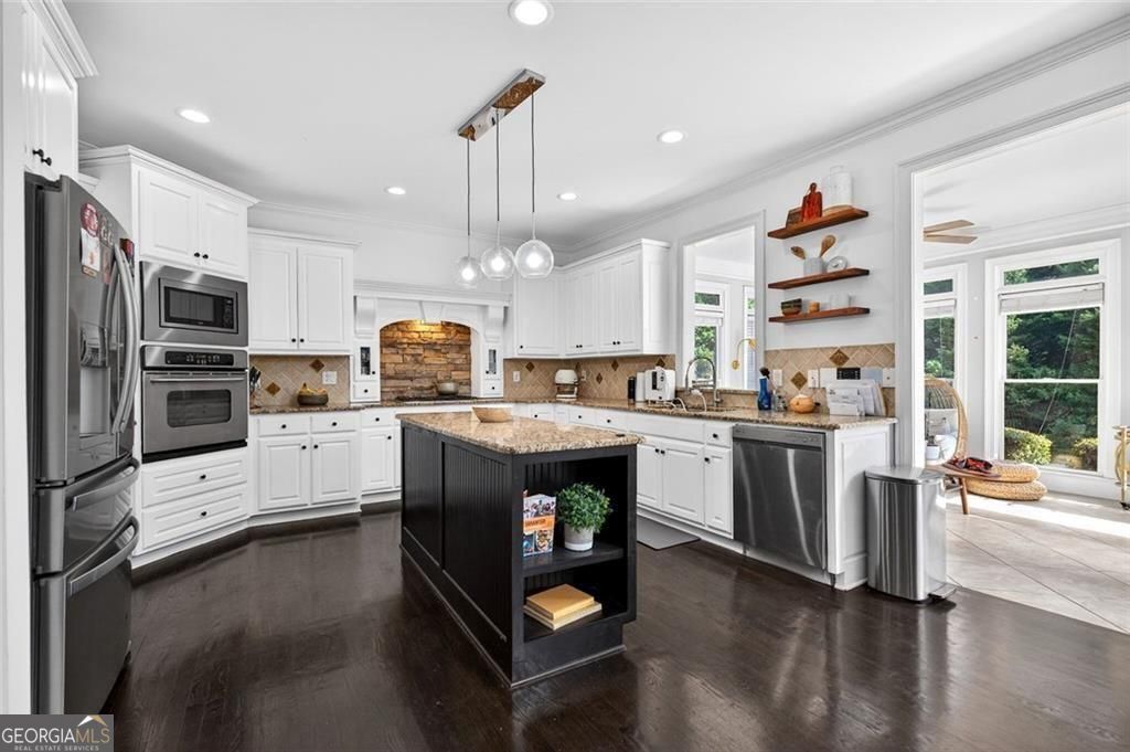 Set within a quiet cul-de-sac in the coveted Grayson High School district, this expansive seven-bedroom, five-bath residence presents a refined balance of scale, comfort, and modern livability-crafted for those who value both everyday ease and elevated entertaining. A light-filled foyer opens to a striking two-story great room, where a dramatic wall of windows frames the living space in natural light, creating an atmosphere that feels both grand and inviting. The home's thoughtful design offers a seamless flow between formal and casual spaces, allowing for effortless transitions from intimate mornings to lively gatherings. At the heart of the home, a refreshed kitchen with bright, updated finishes serves as both a functional workspace and a central gathering point-equally suited for quiet coffee at sunrise or hosting with intention. Nearby, a main-level guest suite offers privacy and flexibility, ideal for extended stays or a beautifully tucked-away office. Upstairs, the primary suite is designed as a true retreat-offering a sense of calm and separation-while a collection of well-appointed secondary bedrooms, including en suite and Jack-and-Jill configurations, provide both comfort and thoughtful accommodation. The fully realized terrace level redefines what it means to entertain at home. A curated mix of spaces-including a wet bar, private theater, full bath, and additional rooms adaptable for fitness, creative pursuits, or guest quarters-creates an environment where leisure and lifestyle seamlessly converge. Outdoors, a level backyard invites both quiet reflection and vibrant gatherings, all within a swim and tennis community that fosters connection while maintaining a sense of retreat. Offering over 5,400 square feet of versatile living space, this 2005-built residence is more than a home-it is a setting for a life well lived, where design, function, and feeling come together in one of Grayson's most desirable locations.