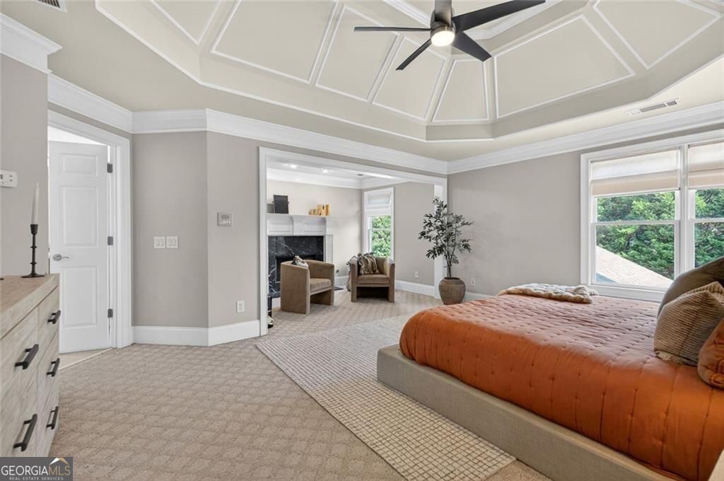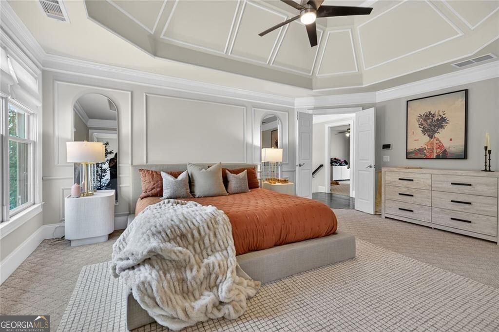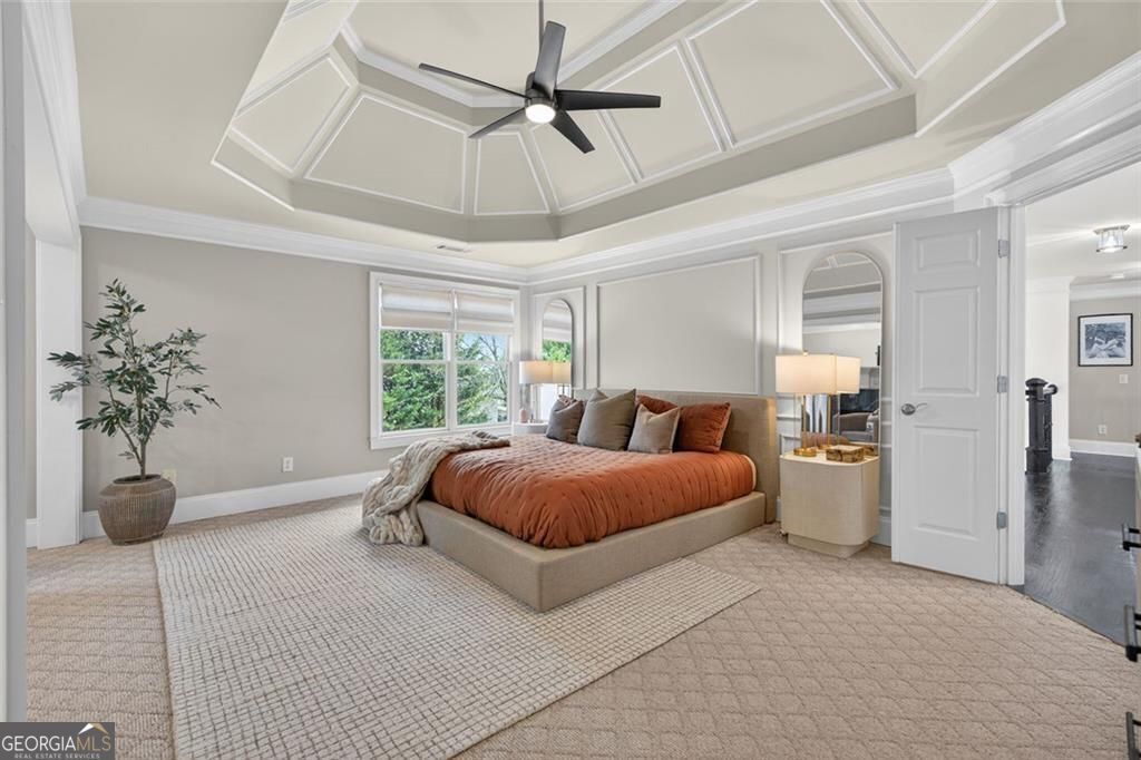 - Interior FeaturesBookcases, Double Vanity, Tray Ceiling(s), Walk-In Closet(s), Wet Bar