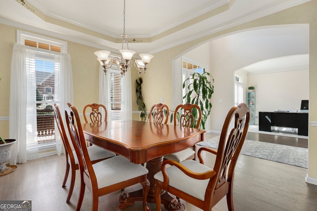 This is what you've been looking for - generous living space, thoughtful updates, and room to grow, all in a vibrant neighborhood served by highly sought-after schools. Recent improvements provide immediate peace of mind and added value, including a young, almost new roof, new kitchen countertops, a newer downstairs HVAC system and a recently updated upstairs unit, a newer water heater, two newer garage door units, and a recently upgraded retaining wall. Inside, the open floor plan is designed for both comfortable daily living and effortless entertaining, featuring beautiful wood flooring throughout the main level and abundant natural light. The kitchen serves as the heart of the home with generous workspace and seamless flow into the surrounding gathering areas. This home also offers a large family room, formal living room, and formal dining room, providing excellent flexibility for both everyday living and special gatherings. With 5 bedrooms and 4 full bathrooms, this home offers exceptional flexibility for everyday living, guests, or multi-generational needs. Upstairs, the spacious primary suite provides a private retreat with oversized closets and an attached flex room - ideal for working from home, a nursery, fitness area, or quiet sitting room. A full ensuite on the main level is ideal for guests or a home office. The basement offers excellent potential for future expansion, giving you the opportunity to create additional living space, a media room, gym, or customized retreat to fit your needs. Located in desirable Fayetteville, this home combines thoughtful updates, generous space, excellent schools, and future expansion potential - making it an exceptional value