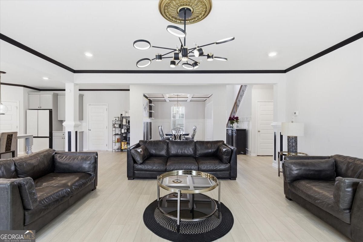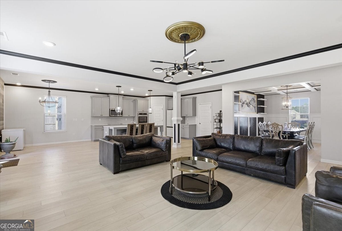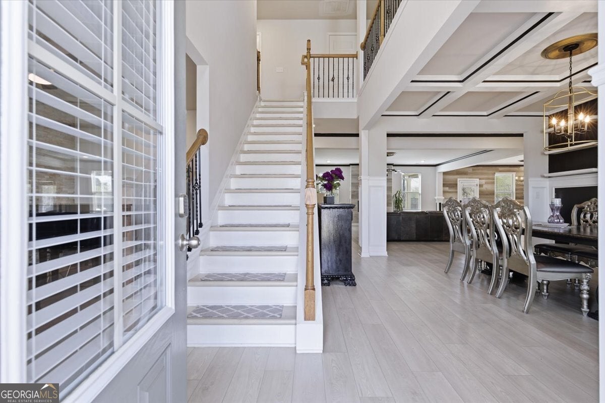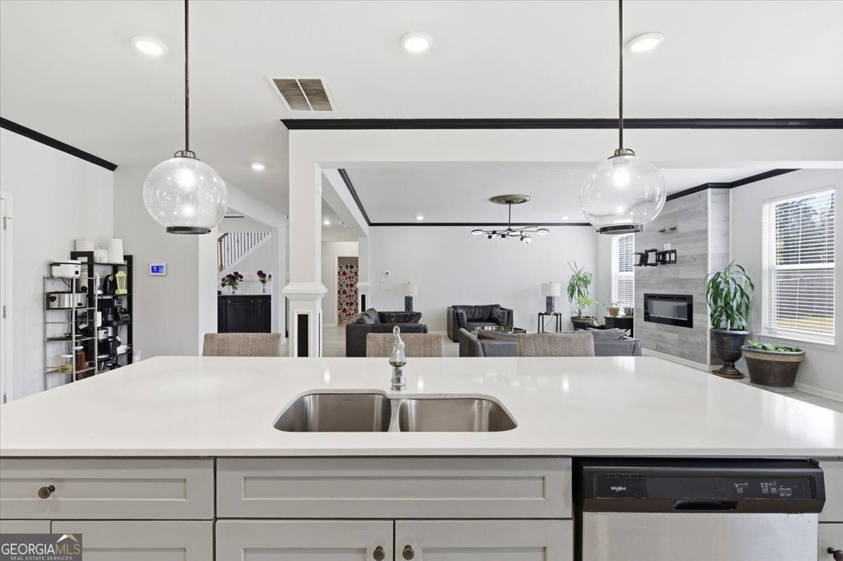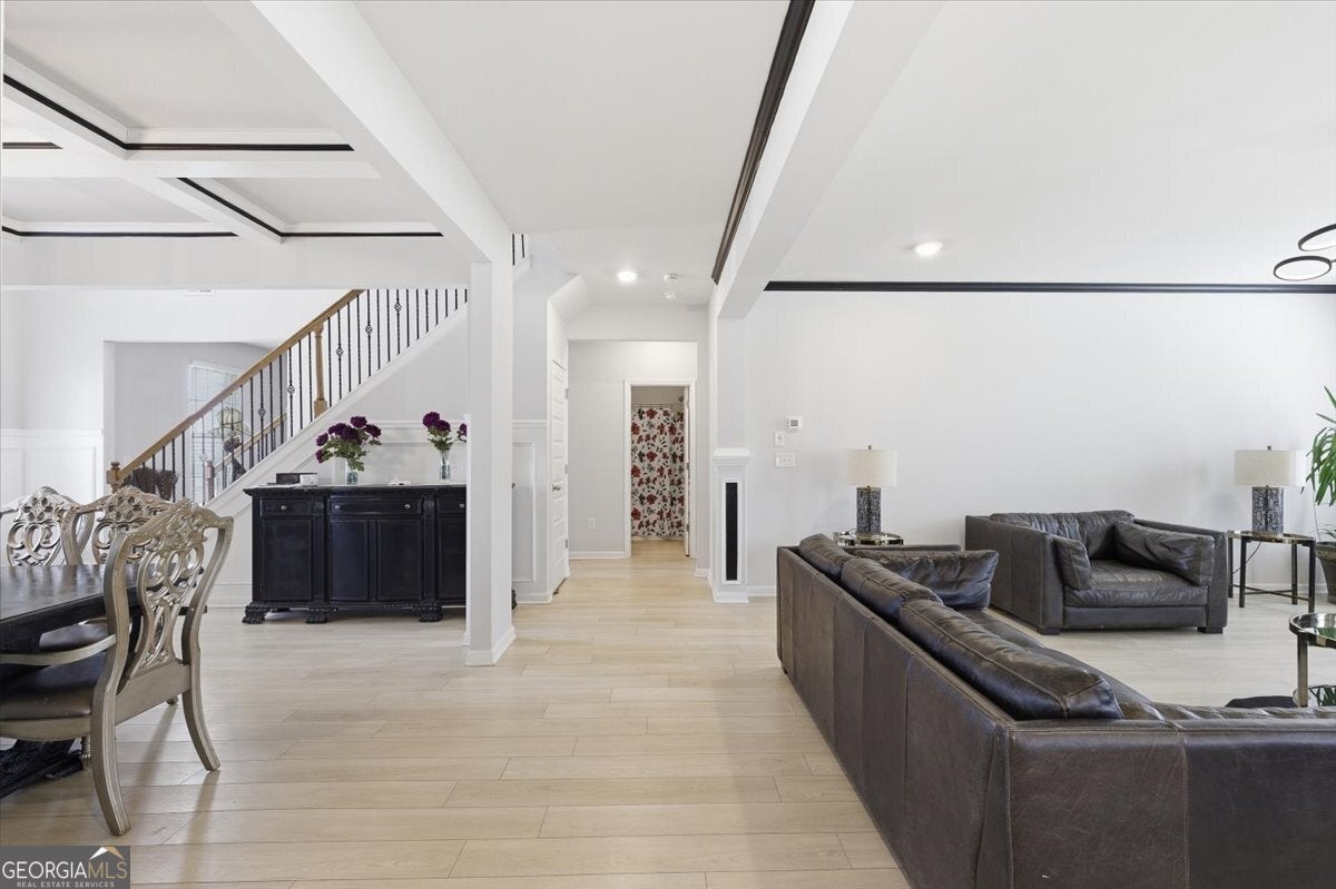 109 Jodi Pl, Locust Grove, GA 30248. Upscale living at its finest. List Price: $595,000 Year Built: 2022 Square Footage: 3,856 sq ft. Bedrooms/ Bathrooms: 5 beds / 4 full baths. Lot Size: 0.414 acres / Level Fenced Lot. Subdivision: Flakes Mill County: Henry. Interior Highlights: **Chef-style kitchen with quartz countertops, farmer's sink, stainless appliances, double oven, custom backsplash, and large walkin pantry. **Open-concept family room with fireplace. **Formal dining room with coffered ceilings, crown molding, and trim details. **Formal living room plus mainfloor guest bedroom / study. **Upstairs loft overlooking the foyer. **Owner's suite with sitting area, double door entry, spastyle bath, and huge walkin closet. **Three oversized secondary bedrooms upstairs, including a Jack & Jill bath. **Laundry room on upper level. ** Exterior & Lot Features: **3 car garage. **Level Fenced backyard with a large storage shed. **Brick / frame construction, slab foundation. **Level lot, sidewalk community. **Patio and porch areas. ** Location & Schools: **Elementary: Unity Grove **Middle: Locust Grove **High: Locust Grove ** Convenient to parks, shopping, schools, and major commuting routes. **HOA: $500 annually + $500 initiation. **Synopsis: This is a large upscale 5-bedroom home with high-end finishes, a spacious open layout, and strong curb appeal in a desirable Henry County subdivision.