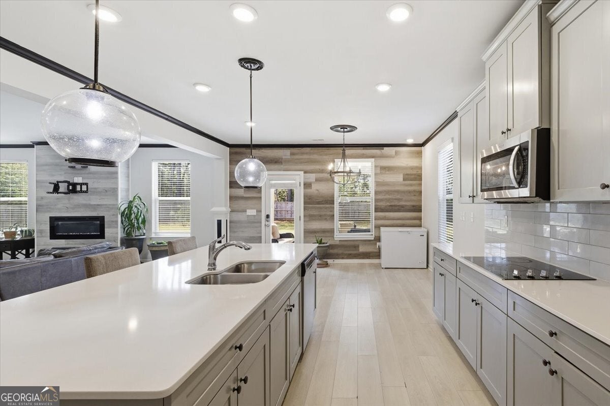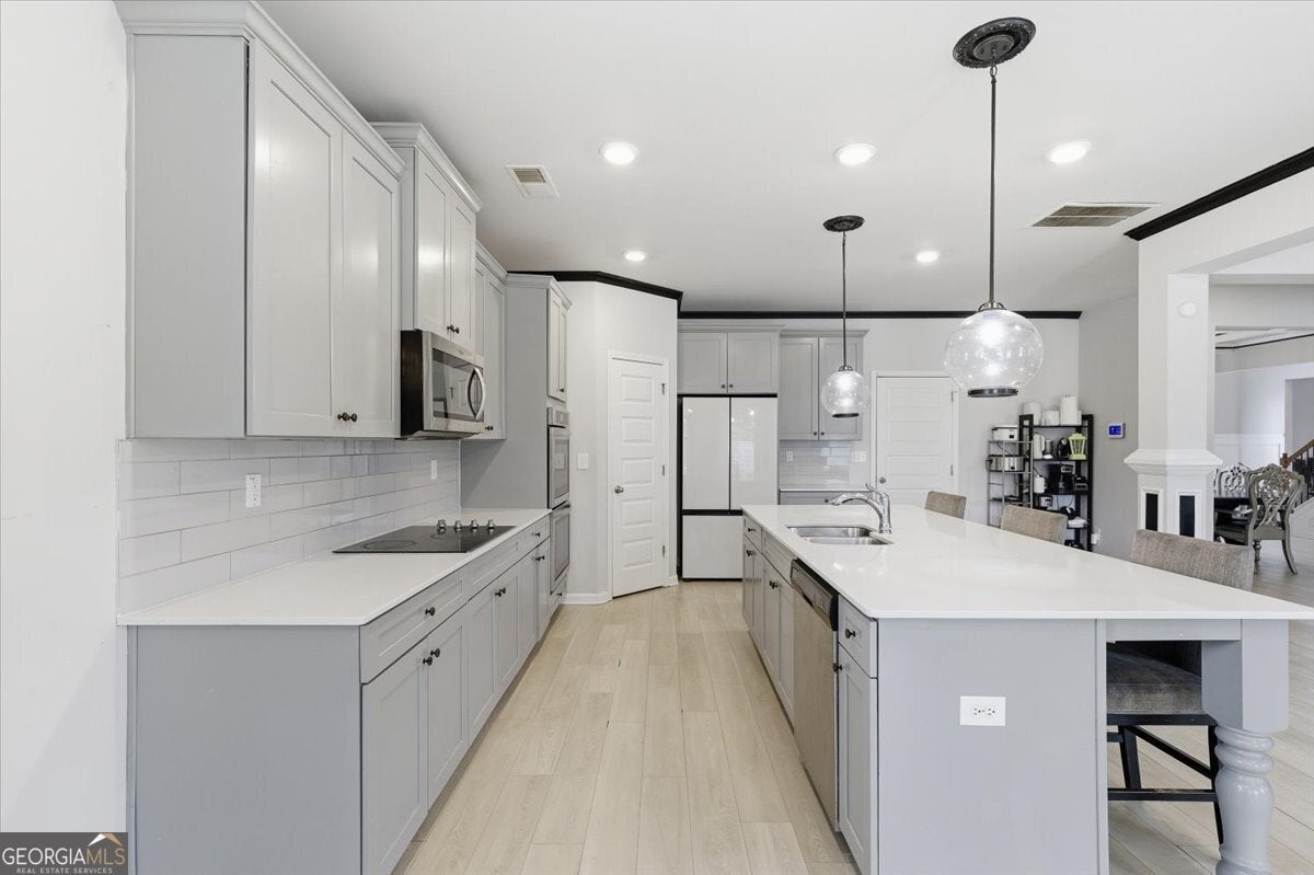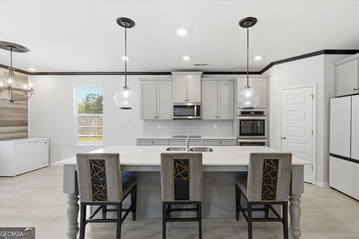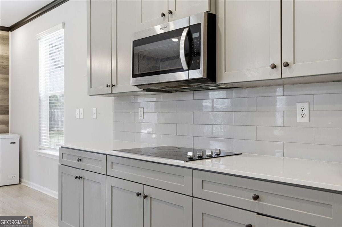 - AppliancesCooktop, Dishwasher, Double Oven, Electric Water Heater, Ice Maker, Microwave, Stainless Steel Appliance(s)
