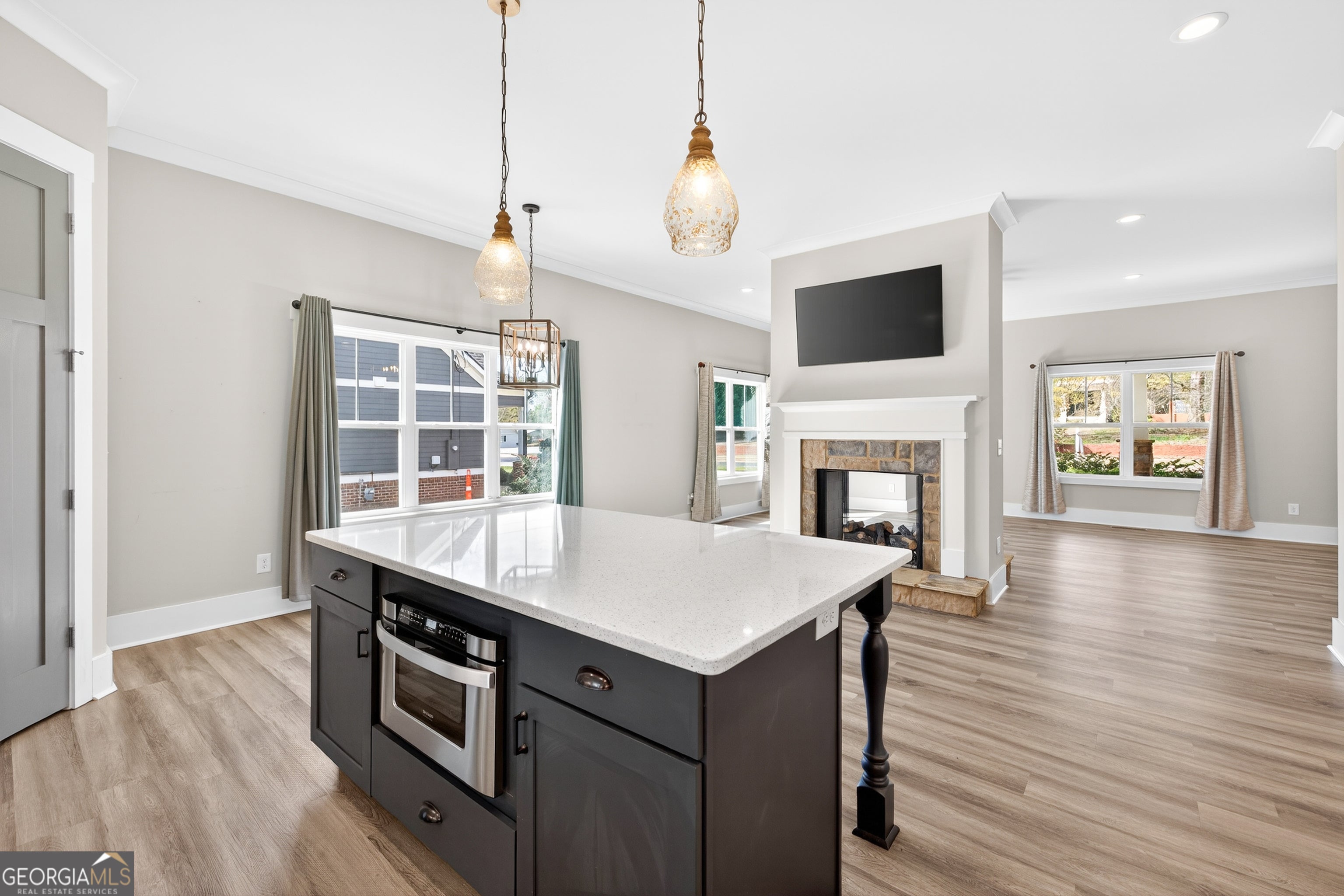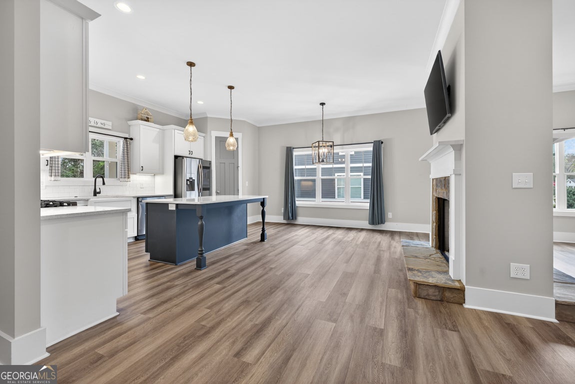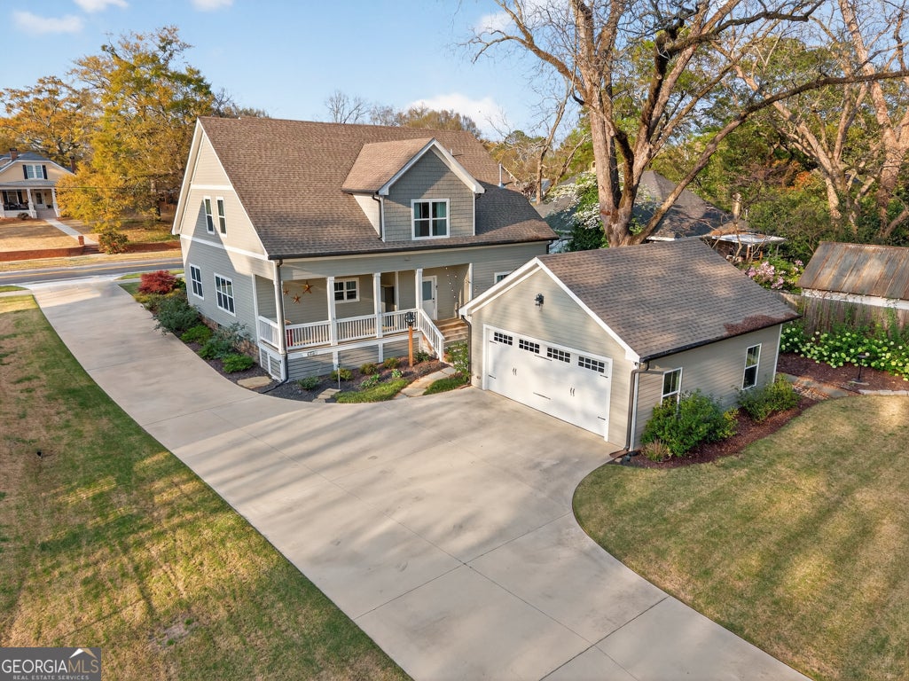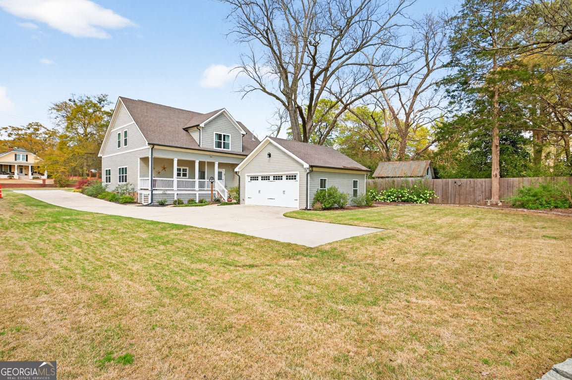 If you are looking for a really special home that genuinely has it all, put this one at the top of your list! Priced well below a recent appraisal and loaded with over $100,000 in recent owner upgrades and improvements, 5118 Floyd Street in Covington, is a rare opportunity to buy into one of Georgia's most charming historic districts with instant equity on day one. This custom craftsman home was fully rebuilt in 2020 from the foundation up, on its original early 1900's footprint, which means you get the character of a historic downtown location with every modern convenience. 5 bedrooms, 4 full baths, a rare detached two car garage for this location with extra storage, and a location that puts downtown Covington's square, local restaurants, and shops within walking distance or a short golf cart ride away. The primary suite is generously sized with a walk-in closet and a well appointed bath featuring a soaking tub and a separate custom tiled shower. An additional bedroom and full bath on the main gives you flexibility for guests or a dedicated home office without anyone having to climb stairs. The mudroom with built-in cabinetry keeps everything organized for the laundry area. The kitchen is the centerpiece of the home. A Thor six-burner range and oven, an oversized island with a built-in drawer microwave, custom wood cabinetry with soft close hardware, and a walk-in pantry make this a space that serious home cooks and entertainers will immediately appreciate. The kitchen opens to the living room and shares a double-sided fireplace with the adjacent sitting area and family room, which keeps the whole main level feeling warm and connected. Upstairs you will find three additional bedrooms, two full baths, and a bonus flex space that works perfectly as a media room, home office, or extra living area. For a remote worker, this layout gives you options without sacrificing comfort. The technology and efficiency features in this home go well beyond what you typically find at this price point. Spray foam insulation throughout, a professionally encapsulated crawl space, a whole home air filtration system, WiFi controlled irrigation and water filtration systems, a Tuxedo home security system, and low voltage bright spun copper exterior lighting makes the home glow at night. The Samsung smart refrigerator, washer, and dryer are all included in the sale. Outside, the front and rear porches, professionally landscaped yard with a professionally designed drainage system, gutter guards, and an extended widened driveway all make this property as easy to maintain as it is to enjoy. Don't miss out on this one. Come see it today!
