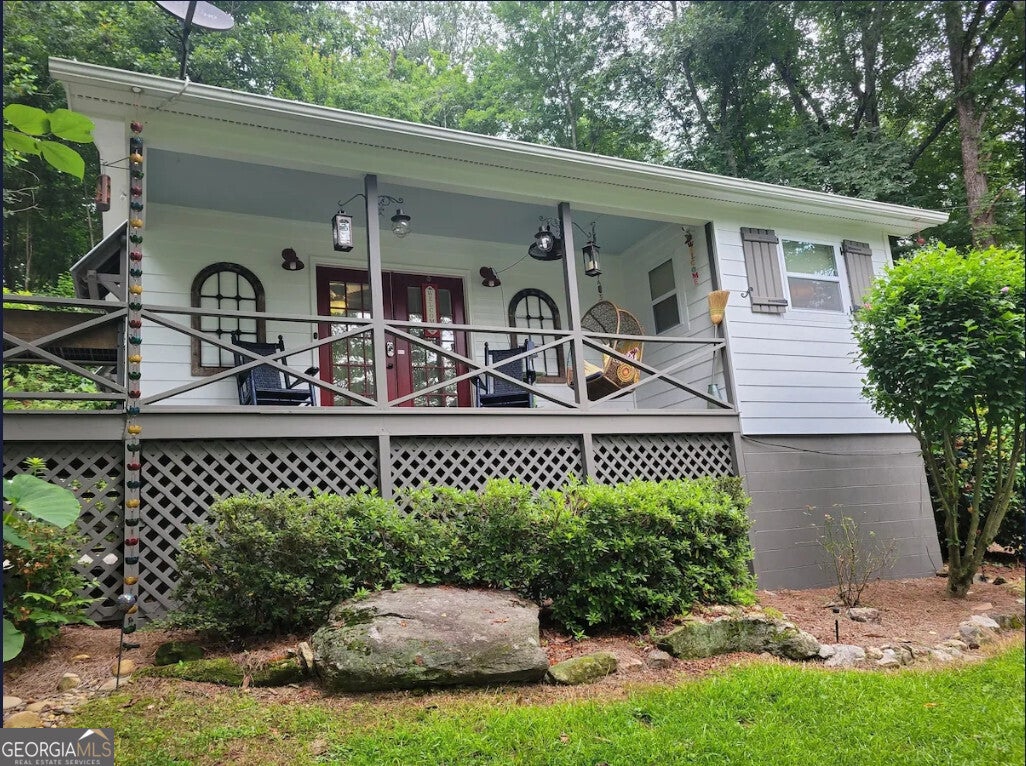Selling Fully Furnished. Updated (2) Bedroom (2) Full bathroom 1028sf home is only minutes to downtown Clayton GA. Located easily off Hwy 76 for easy trips to Lake Burton, Hiawassee, Helen, Downtown Clayton and more. Officially rezoned vacation rental & permitted per Rabun County with solid rental record and continuous 5-star ratings from guests who continually return! Live in Clayton full time or rent out for side income. Drive up a paved round-about driveway with extra parking space (space for 3 cars) and enter via the large front porch with French doors into the living room. Living room with ample space and reclining couches (great for guests) and flows right to the updated kitchen with all updated stainless steel appliances that convey. Back patio access just past the mudroom area which overlooks back yard, fire pit and covered carport area. Great BBQ spot (included BBQ). Master Bedroom Suite, includes a sliding barn door which also leads to the updated bathroom, stacked full size washer and dryer, and huge walk-in closet and makeup area. In hall find another full bath and then the 2nd amply sized second bedroom with plenty of closet space. All furniture, televisions, all appliances, lawnmower, blower, tools, decor, linens, plates, utensils, serving pieces, pots, pans, you name it: STAY! * Whether looking to move in full time or rent it out, this house is ready at the get go! Including camera system, electronic remote door system, and more. Continued service of AC/HVAC installed in. Installed sentricon termite system for peace of mind, septic pumped in 2021, this great spot is ready to go! A lockable storage closet is out back to hold your gardening tools and utilize easy access crawl space for even more storage. Still need more storage? Use the floored attic space accessible by the pull-down stairs in the master closet. We love this home and the area of Clayton, and we hope you will love it too
