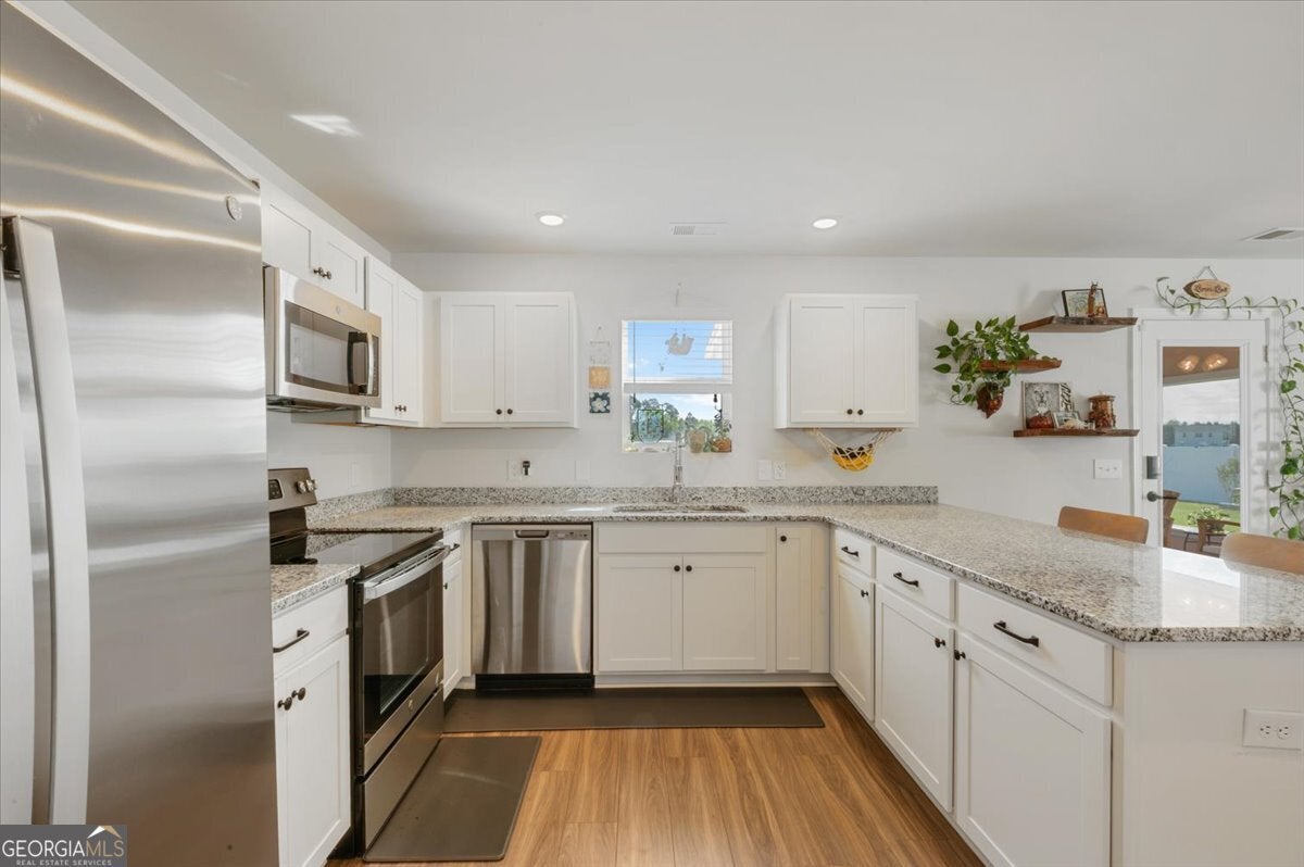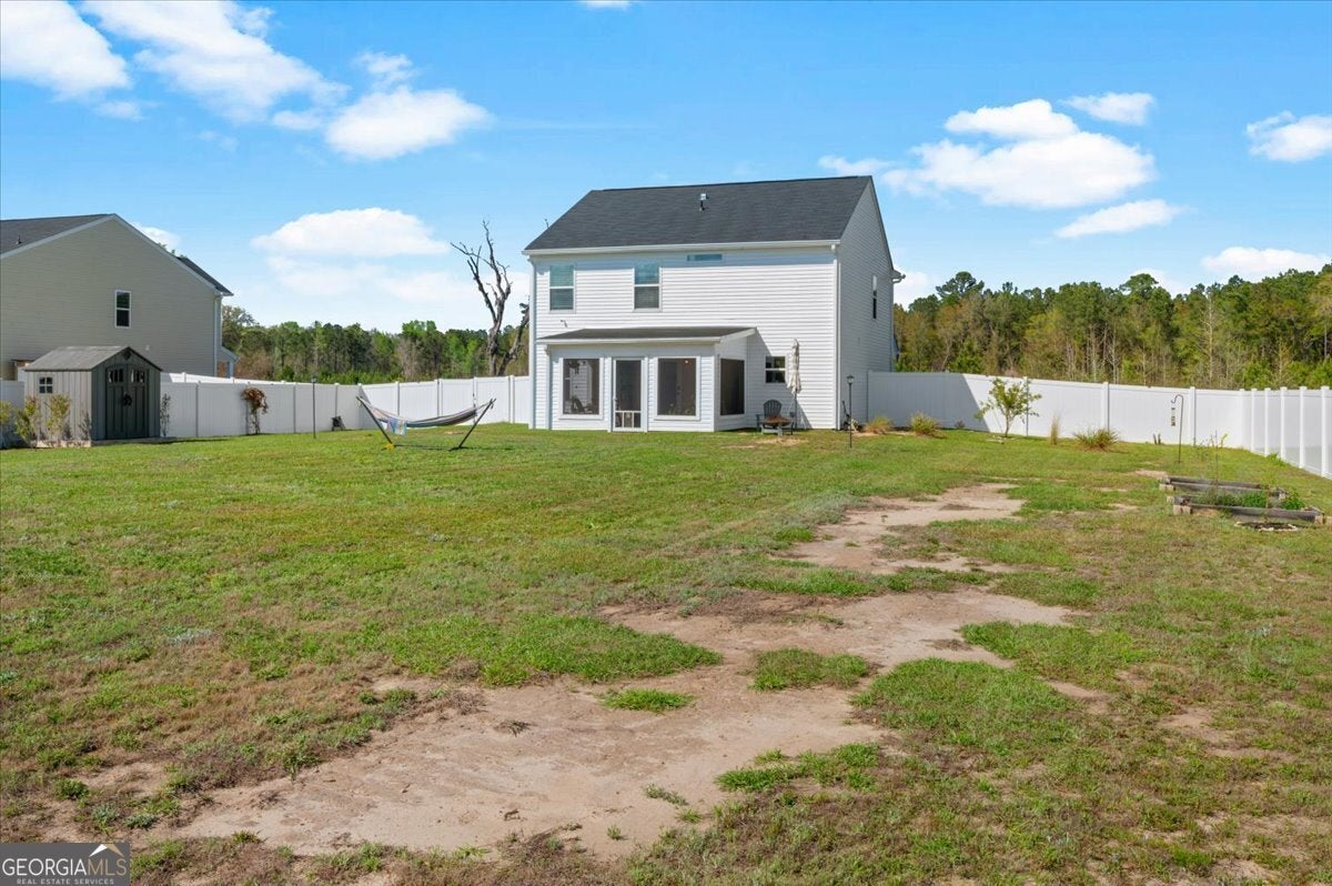 Welcome to your private waterfront retreat! Nestled on 1.20 acres, this move-in ready home offers the perfect blend of space, comfort, and convenience. Featuring 4 spacious bedrooms and 2.5 bathrooms, this home is designed for modern living. The heart of the home is the expansive kitchen, complete with granite countertops, ample cabinetry, and plenty of space for entertaining or everyday living. Upstairs, the primary suite provides a peaceful escape with a huge walk-in closet and a luxurious walk-in shower. A versatile loft area adds extra living space-perfect for a home office, media room, or play area. Step outside to enjoy the privacy-fenced yard, ideal for pets or gatherings, and unwind in the enclosed screened porch overlooking the serene waterfront setting. Conveniently located just minutes from Ft. Stewart, Richmond Hill, and shopping, this home offers both tranquility and accessibility. With a low HOA and true move-in ready condition, this is a rare opportunity you don't want to miss!