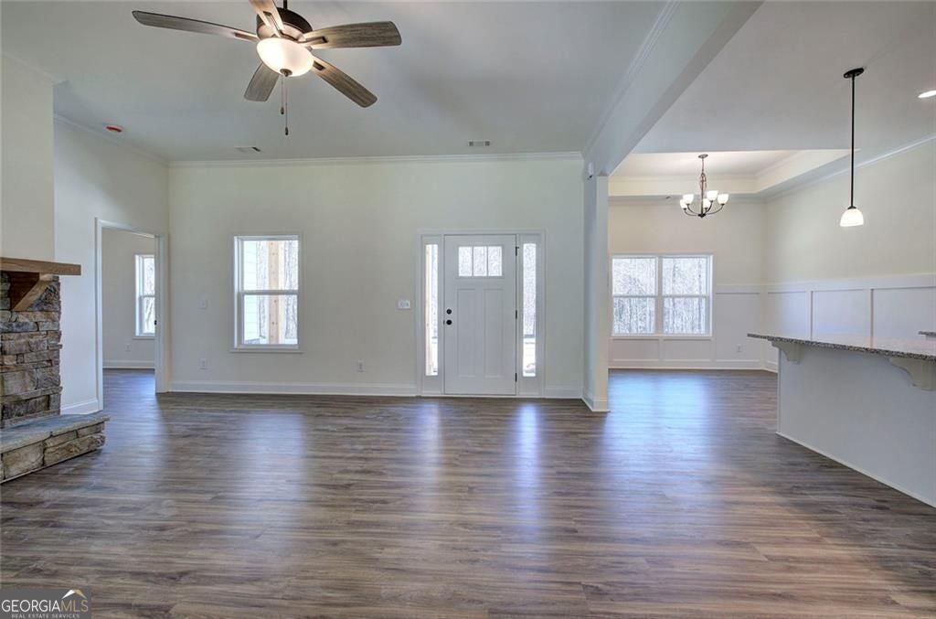 If a one level ranch on over an acre is what you've been looking for, you're gonna want to make this your home!! Charming 3 bedroom with flex space and 2 bathroom plan features split bedrooms which offers privacy for the owner's suite complete with trey ceiling, private bath with tile shower and separate tub, huge walk in closet and double vanities. This home has all the space and charm you've been looking for, open concept perfect for entertaining and everyday living. Enjoy your oversized rear patio overlooking a wooded back lot. Contract soon and you will have the opportunity to make this place your own, being able to choose all of the finishes from builder samples. Builder has spared no upgrades, granite, LVP flooring in all main living areas, tile wet areas, stainless steel appliance package including electric range, dishwasher and vented microwave over range. Home includes black double paned insulated glass windows, hardiplank concrete siding, oversized garage door with a quiet run opener, tongue and groove front porch and rear patio ceilings, cedar front porch post and gable accents and much more!! We can have this one finished late June, early July, just in time to celebrate our nations 250th Birthday with a cookout and fireworks enjoying your very own piece of the American dream, home ownership! Listing agent is the wife of the builder/seller *****Photos in home are of same floor plan previously built by same builder***** home is under construction