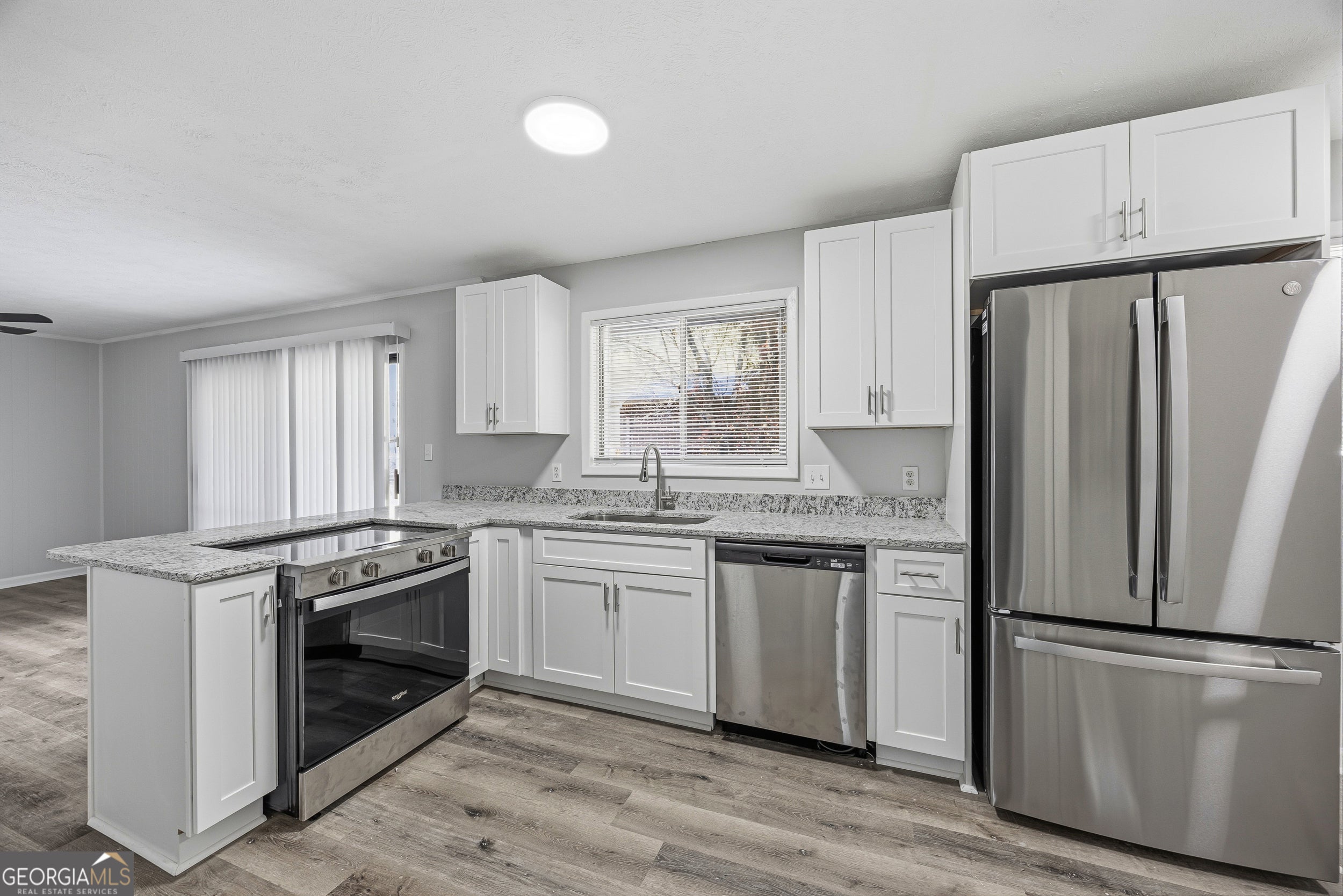 Beautifully renovated ranch in Southwest Atlanta offering modern updates and move-in ready convenience. This 3 bedroom 2 bathroom home features an open layout with brand new luxury vinyl plank flooring, fresh interior and exterior paint, and updated lighting throughout. The kitchen has been fully upgraded with white shaker cabinets, granite countertops, stainless steel appliances, and a spacious breakfast bar that opens to the main living area, perfect for everyday living and entertaining. Both bathrooms have been updated with modern finishes, while the large windows bring in great natural light across the home. Situated on a generous lot with a private backyard, this property offers plenty of space for outdoor enjoyment. Move in ready and priced to sell. Schedule your showing today. FHA Approved 5/9