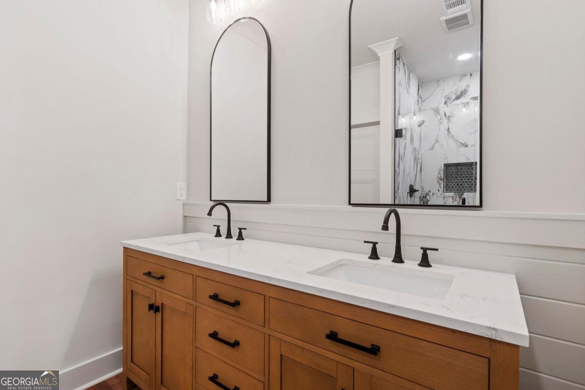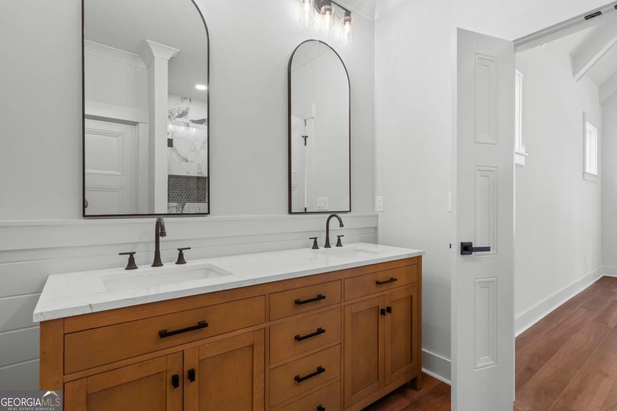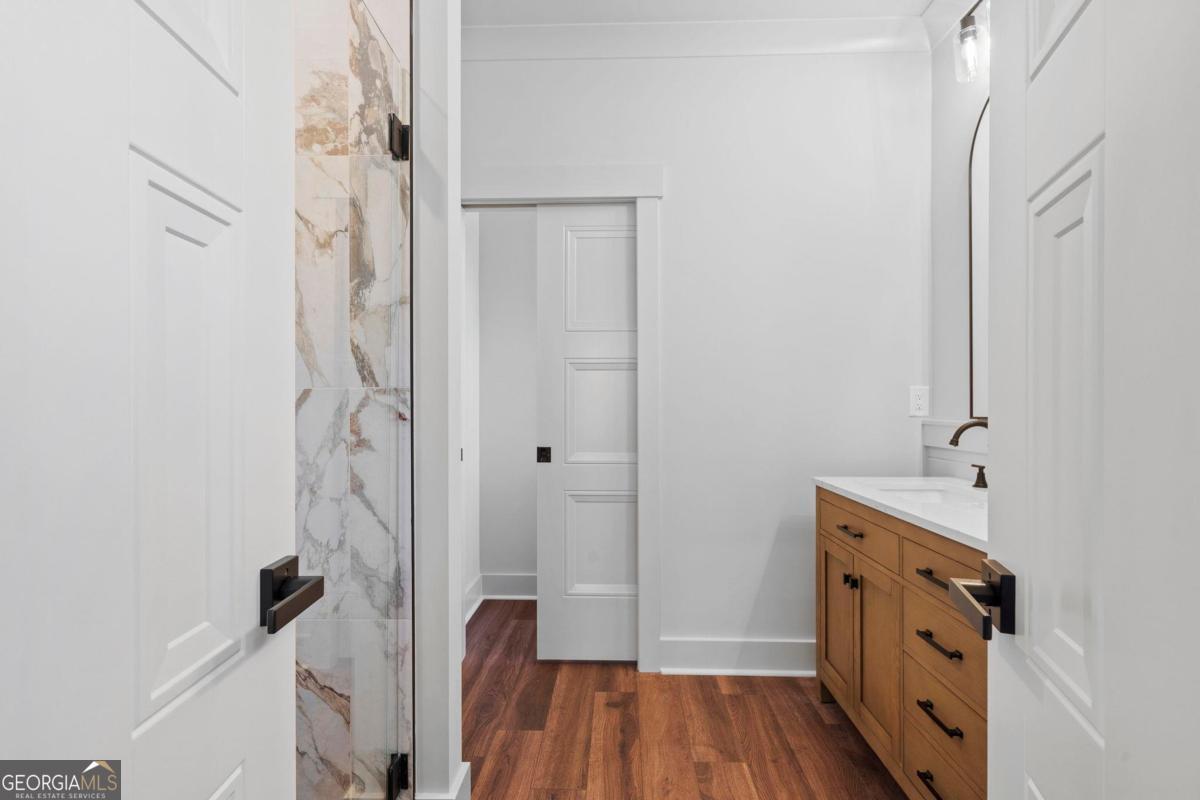 Beautiful New Construction in Lakeside on Lake Sinclair! Located in the gated community of Lakeside at Lake Sinclair, this stunning 4-bedroom, 3-bath home offers the perfect blend of thoughtful design, modern finishes, and lake lifestyle living. Situated on a spacious 1.89-acre corner lot, this home is just a short walk to the community shared docks, boat ramp, and disc golf course-making it ideal for those who want to fully enjoy lake life without sacrificing space or privacy. Inside, you'll find an open-concept layout designed for both everyday living and entertaining. The chef's kitchen is the centerpiece, featuring a massive 9-foot island, gas range, stainless steel appliances, custom tile, and quartz countertops. The living room showcases soaring ceilings, creating a bright and inviting space that flows seamlessly into the dining area. Enjoy a beverage from the built-in beverage center as you make your way to the screened-in back porch with stamped concrete. Creating the perfect setting for relaxing evenings. The main level offers three bedrooms, including a beautifully designed primary suite with a beamed vaulted ceiling and a spa-like en suite bath with a walk-in shower, and huge walk-in closet, complete with built-in wall safe. Large laundry room on the main floor. Upstairs, a private fourth bedroom, full bath, and additional flex space offer endless possibilities-ideal for a home office, media room, or guest retreat. The garage has been thoughtfully upgraded with a wall-mounted pressure washing system and vacuum, along with tongue-and-groove wainscoting and extended depth (approximately 29 feet), allowing space for boat storage if desired. Conveniently located off Twin Bridges Road, this home offers easy access to downtown Eatonton, Milledgeville shopping and dining, and I-20-making it as practical as it is beautiful. This is the complete package for Lake Sinclair living-new construction, premium finishes, and an unbeatable location. This is an agent-owned property.