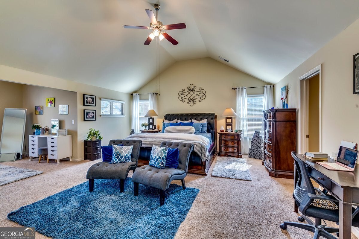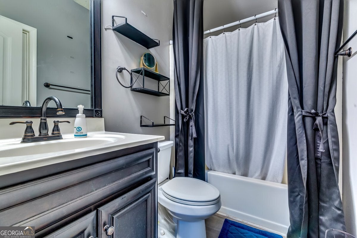 Welcome home to this beautifully maintained 5-bedroom, 3-bath stunner offering 4,048 sq ft, tucked into a quiet cul-de-sac community with a welcoming front porch. The main level features a sitting area that flows into the kitchen with an island and eat-in dining area-perfect for everyday living and effortless entertaining. A main-level bedroom and full bath provide ideal flexibility for guests, multi-generational living, or a private home office. Upstairs, unwind in the oversized owner's suite featuring a sitting area, two walk-in closets, and a spacious en-suite bath. Step outside to a backyard built for entertaining with a covered patio, grilling space, fire pit seating, and a large fenced yard. Recent updates include a new roof and gutters, and the home also offers a cozy fireplace and a 2-car garage. Conveniently located about 20 minutes from the heart of Atlanta with easy access to Hartsfield-Jackson Airport, shopping, and restaurants. Closing cost assistance is available, along with a 1-year home warranty and an option to purchase furniture for a near turn-key move. HOA amenities include pool events, an updated gym, tennis, and basketball. Book your private tour today through ShowingTime-homes like this don't last. Ask about closing cost assistance, the 1-year home warranty, and the optional furniture package.