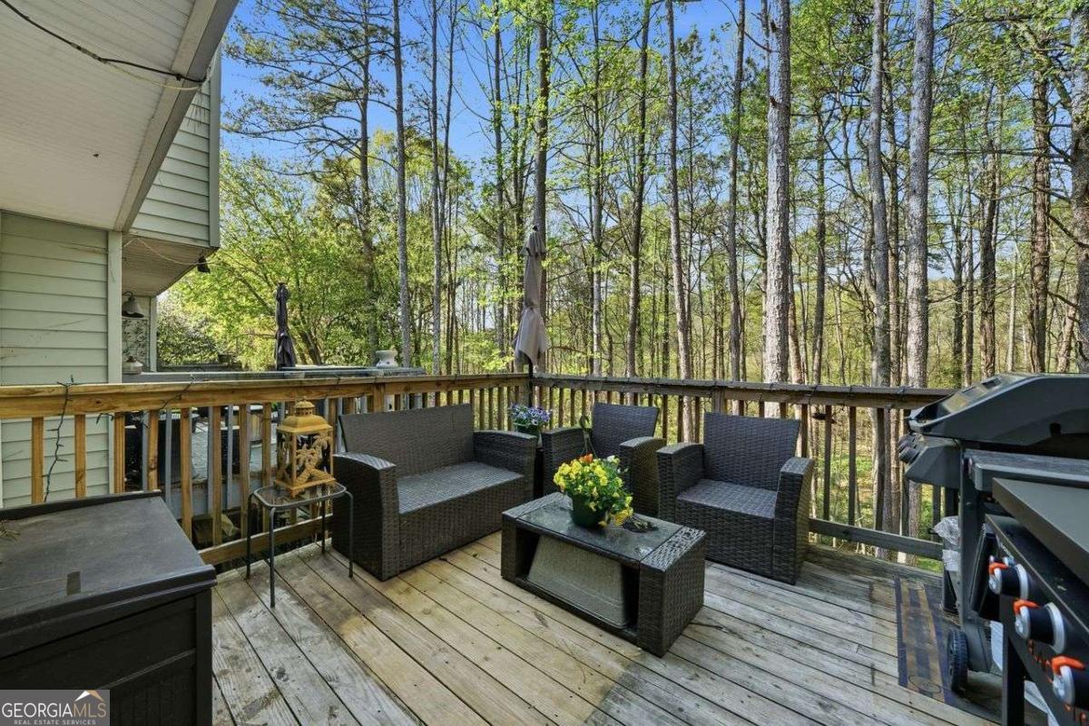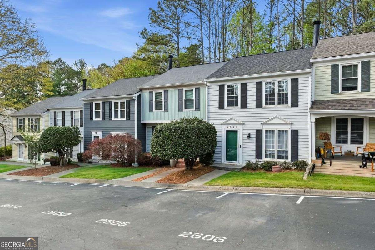 Terrific townhome in an unbeatable location, featuring a rare finished basement. Conveniently situated just minutes from major commuter routes, as well as scenic parks and walking trails along the Chattahoochee River. The main level offers a spacious great room highlighted by a charming corner stone fireplace, seamlessly flowing into the kitchen and dining area-perfect for entertaining. Step outside to a private deck overlooking serene, protected woodland for added privacy and natural beauty. Upstairs, the thoughtfully designed roommate floor plan includes two generously sized bedrooms, each with vaulted ceilings and its own private bathroom. The finished basement provides exceptional versatility, featuring a large recreation room and an additional space ideal for a home office, gym, or guest area. Recent upgrades include a new roof, new HVAC system, new carpet, new interior paint, newer deck, updated windows, and a newer dishwasher. Enjoy fantastic community amenities, including a swimming pool, sand volleyball court, pickleball and tennis courts, and picturesque walking paths along the river. With no rental restrictions, this property is also an excellent investment opportunity. Located just minutes from historic downtown Roswell, where you'll find a vibrant mix of restaurants, breweries, and lively weekend events.