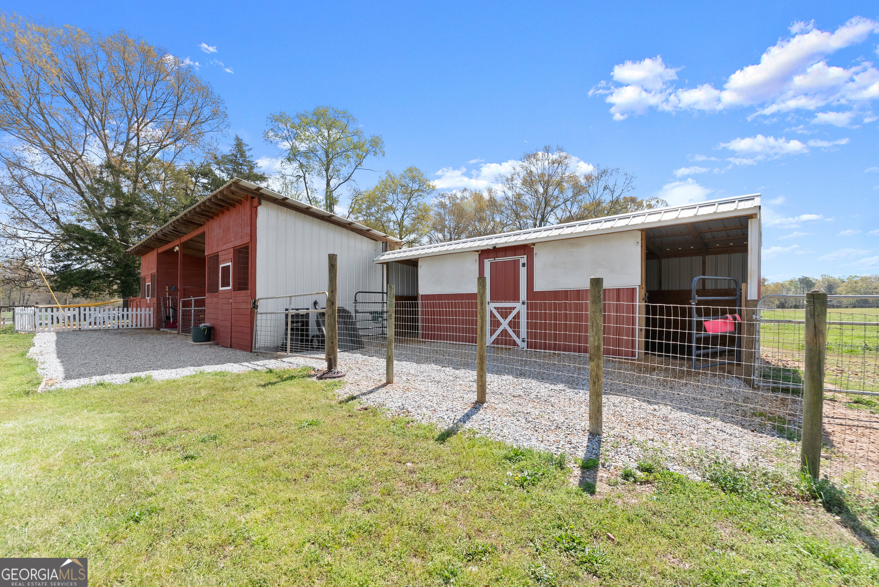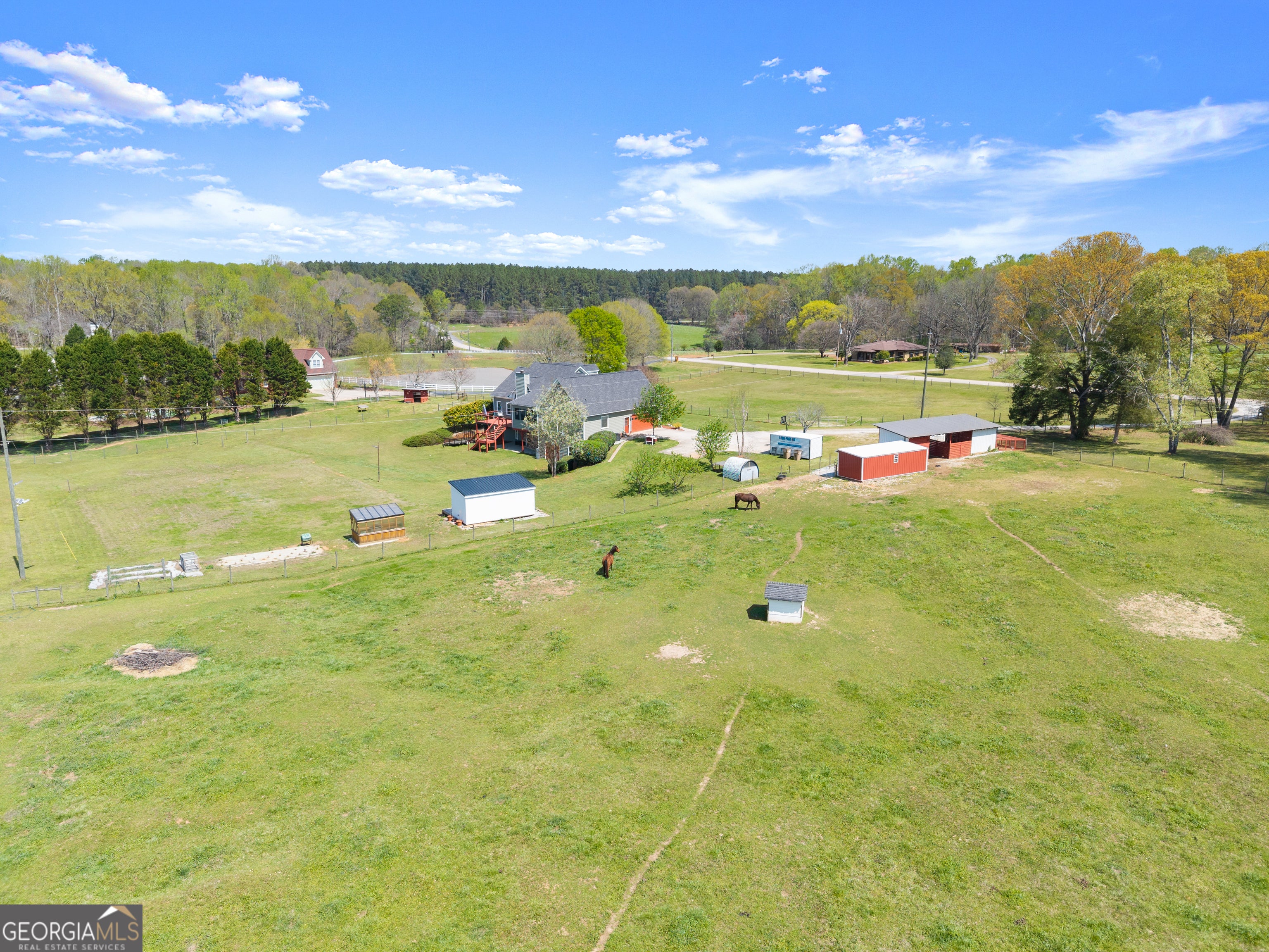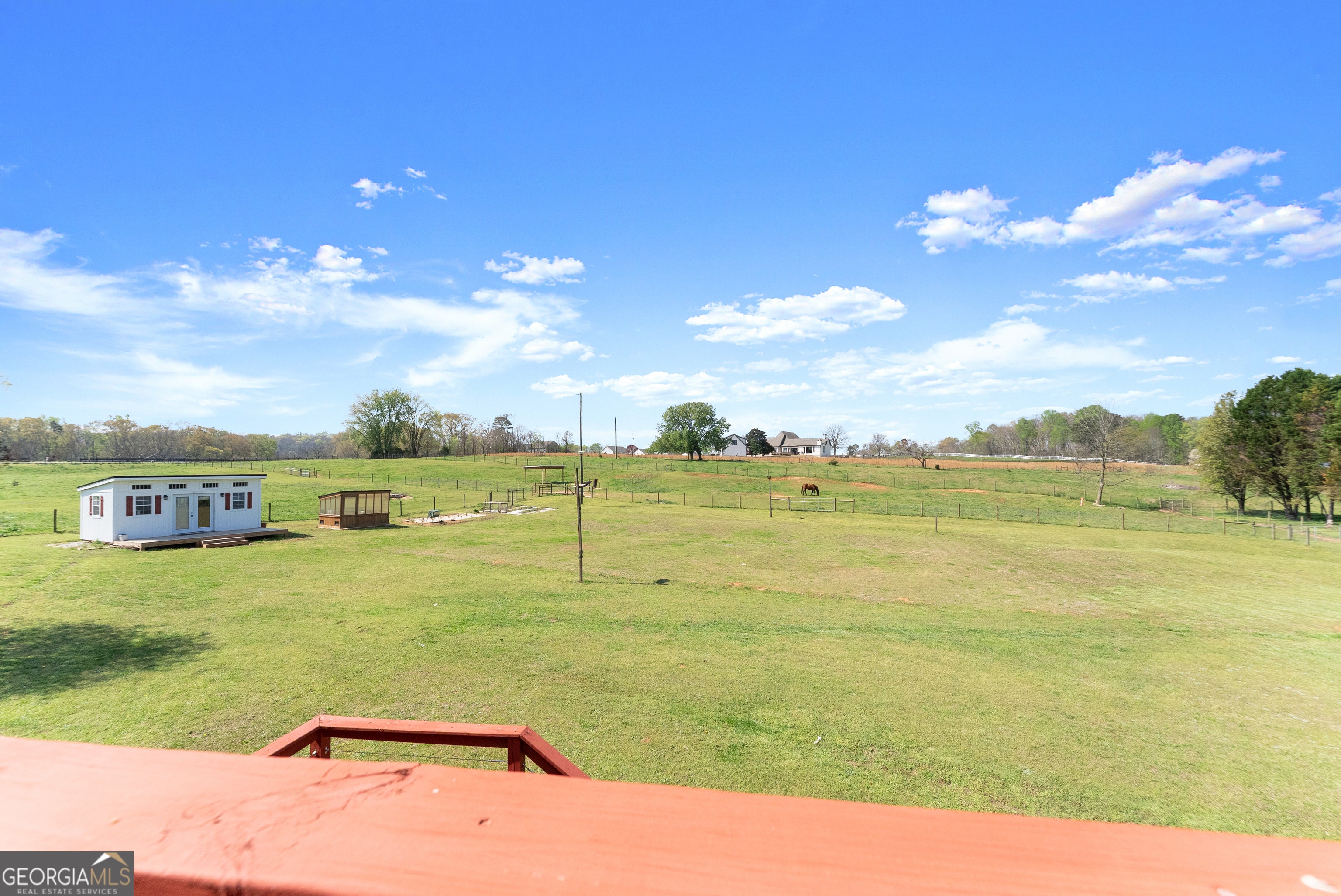 Nestled on 7.5 picturesque acres in highly sought-after West Jackson County, this turnkey hobby farm offers the perfect blend of comfort, functionality, and rural charm. Fully fenced pastures and a two-stall barn make it ideal for animals, with existing accommodations including chicken coops, horse pastures, and goat pens already in place. The property also features a greenhouse, garden area, and a beautifully finished she-shed-complete with heating and cooling-perfect for a home office or creative retreat (negotiable with sale). Inside, this stunning ranch-style home showcases a desirable split-bedroom floorplan with thoughtful upgrades throughout. The completely remodeled kitchen is the heart of the home, featuring crisp white cabinetry, butcher block countertops, stainless steel appliances, a bright breakfast area with bayed windows, and an open flow into the spacious family room. The family room impresses with vaulted ceilings and detailed molding, creating a warm yet elegant gathering space. A formal dining room and welcoming entry foyer add to the home's charm. The oversized primary suite offers a relaxing retreat with a tray ceiling and French doors leading into the luxurious en suite bath, complete with a double vanity, garden tub, and separate shower. Secondary bedrooms on the main level are generously sized, while the fourth bedroom upstairs provides a flexible bonus space perfect for guests, a playroom, or media room. An unfinished basement offers endless potential for future expansion. Enjoy outdoor living at its finest on the expansive screened porch and deck overlooking the large, level backyard and scenic pasture views. Recent updates include newer flooring throughout, fresh exterior paint, and a roof and HVAC system less than five years old-ensuring peace of mind for years to come. Conveniently located just minutes from shopping, dining, and everyday amenities, this move-in-ready property offers the rare opportunity to own a fully equipped hobby farm in Jefferson at an exceptional value.