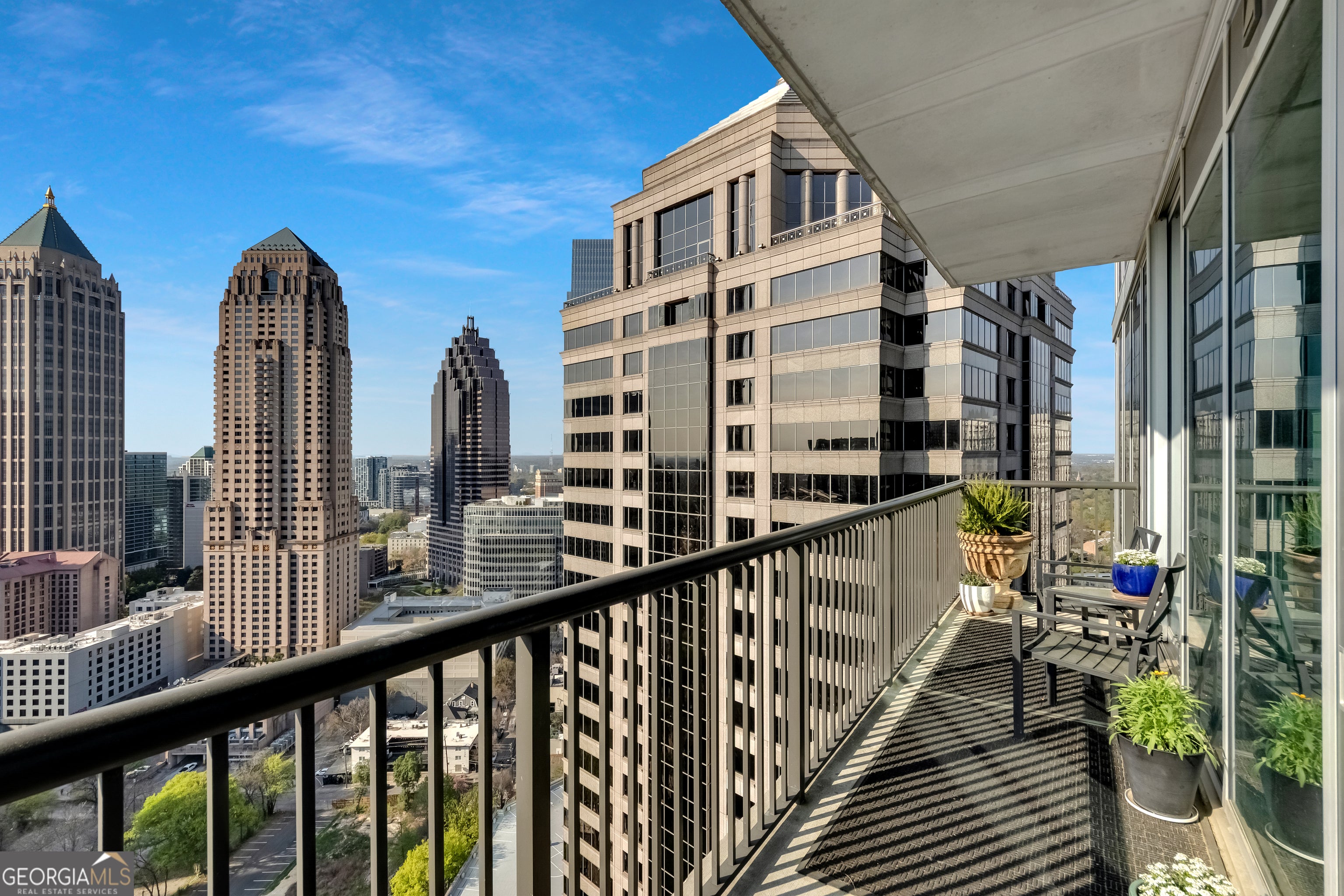 Perched high above Midtown on the 27th floor, this fully renovated northwest corner residence at 1080 Peachtree offers a rare blend of modern refinement, natural light, and breathtaking skyline views. Wrapped in floor-to-ceiling glass, the home captures iconic Midtown vistas in dramatic fashion while creating an airy, sophisticated living experience above the city. The open-concept layout is designed for both effortless daily living and elevated entertaining, with wide-plank white oak floors bringing warmth and continuity throughout. At the center of the home, the renovated kitchen has been thoughtfully updated with new cabinetry, granite countertops, a large island, and a suite of Viking appliances, creating a space that feels both timeless and highly functional. The kitchen flows seamlessly into the dining and living areas, where expansive glass and coveted corner exposure frame the skyline as a daily backdrop. A long private balcony extends the living experience outdoors, offering an exceptional setting for morning coffee, evening cocktails, or simply taking in the energy and architecture of Midtown from above. The primary suite serves as a peaceful retreat with elevated views and a beautifully renovated bath featuring a sculptural soaking tub, separate glass-enclosed shower, updated vanity, and clean-lined tilework. A true second bedroom and second full bath-also renovated-provide ideal flexibility for guests, a roommate, or a refined home office setup without compromise. Additional upgrades include a new HVAC system and new hot water heater, offering both style and peace of mind. Completing the offering are two side-by-side parking spaces, ideally located on the first parking level for exceptional day-to-day convenience. Set within one of Midtown's most desirable full-service addresses, residents of 1080 Peachtree enjoy a luxury lock-and-leave lifestyle just moments from the city's best dining, shopping, and cultural destinations. Sophisticated, turnkey, and visually unforgettable, Residence 2702 is elevated city living at its finest.