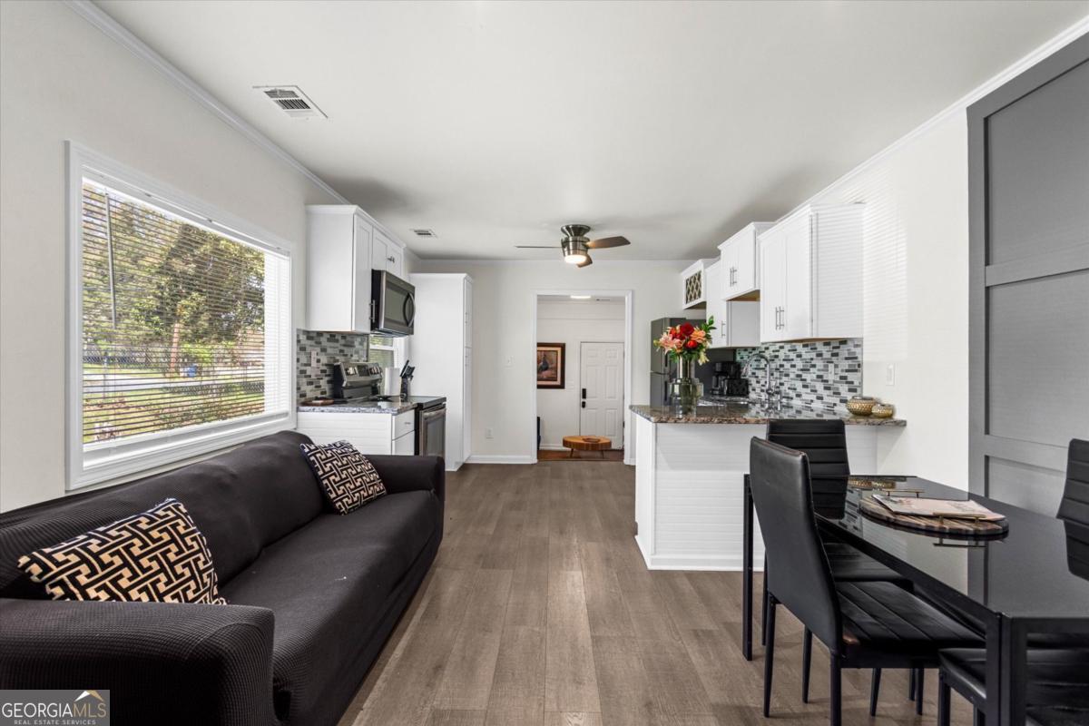Welcome to 1111 Valley View Rd. This completely renovated beauty offers an expanded primary bedroom that truly feels like your own private sanctuary, along with a newly added den that elevates your everyday living possibilities. The major upgrades are already taken care of with a new HVAC, electrical system, and roof, plus updated gutters, ceiling insulation, plumbing, ductwork, sheetrock, and stylish hardwood laminate flooring. The kitchen shines with white cabinets, granite countertops with a breakfast bar, and sleek, energy efficient stainless steel appliances including a dishwasher, electric range, and above mount microwave. Every inch of this property feels fresh, elevated, and move in ready. This home sits in an established, quiet neighborhood with minimal traffic. Conveniently located near grocery stores and local eateries including the Halidom Food Hall and just minutes from the BeltLine. Approximately 15 minutes from downtown and 15 minutes from the Atlanta Hartsfield Airport. Whether you are searching for a new home or your next investment/Airbnb opportunity, bring your offer!