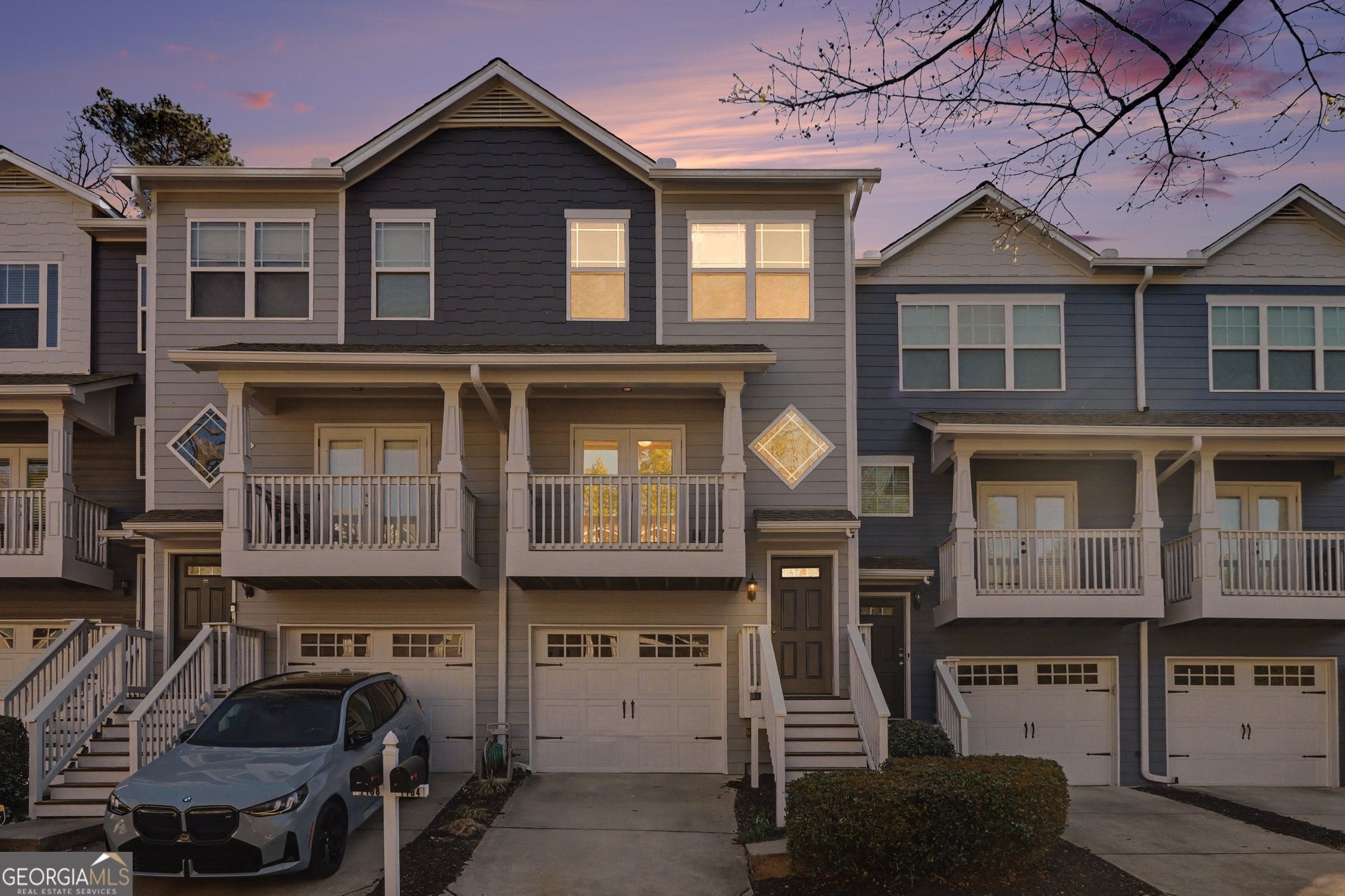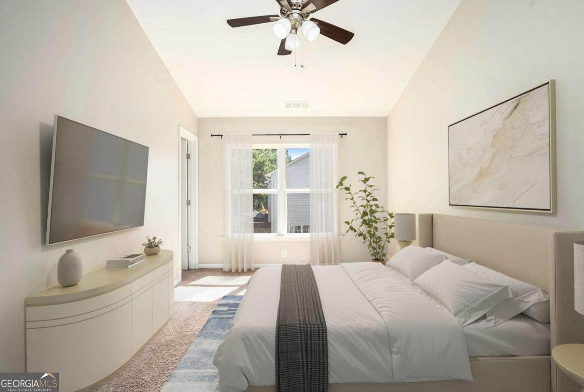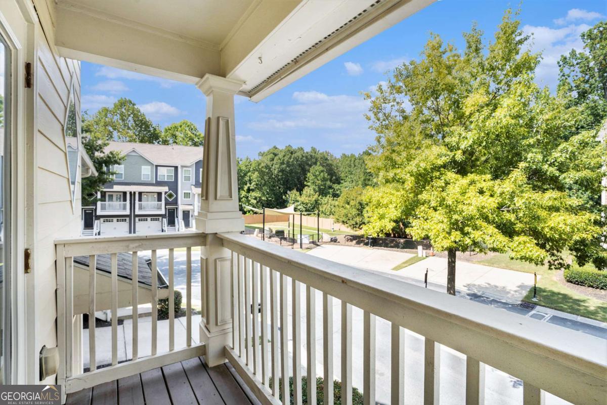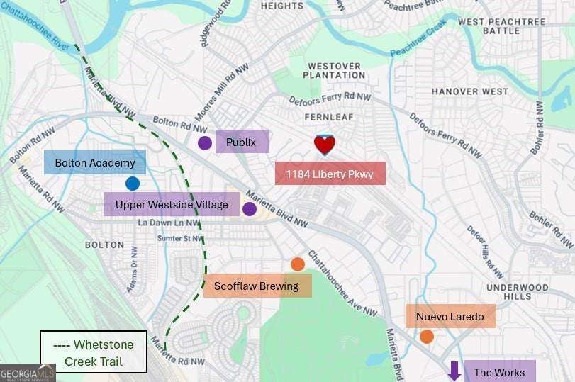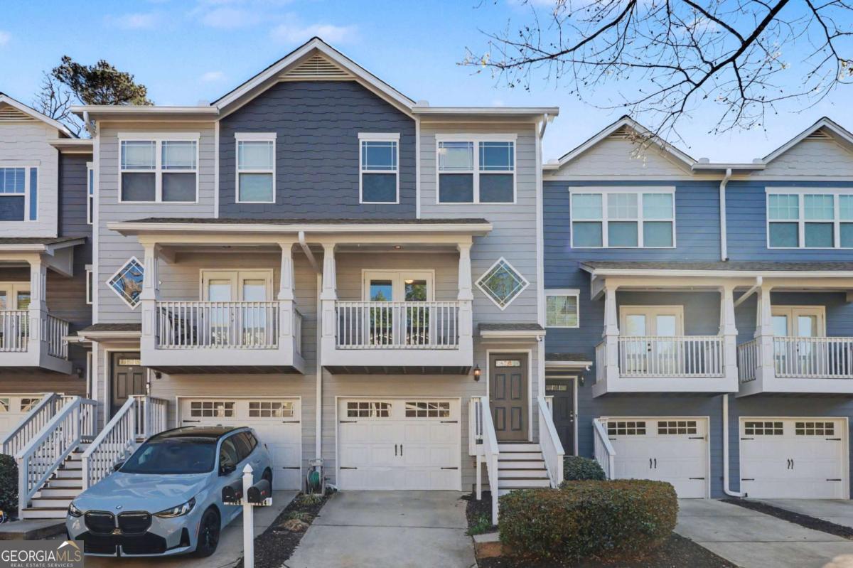 Brand new carpet and fresh exterior paint! Welcome home to Liberty Park, where 3 stories of comfort and convenience await. Kick off your shoes and hang your coat at the front entry, and ascend the stairs to the main living area filled with natural light. Walk through the living room and out the French doors to the covered front balcony, perfect for rainy days. The spacious eat-in kitchen offers stainless steel appliances, granite countertops, and ample cabinet and counter space. Anchored by a stunning oversized island featuring a built-in beverage fridge, additional storage, and seating for 6! A convenient half bath completes the main level. Upstairs, you'll find 2 generous bedrooms, each with an attached bathroom and vaulted ceilings, and the laundry room in the hall in between. The primary suite highlights a roomy walk-in closet, double vanity, and relaxing soaking tub. The lower level boasts a bonus flex room with an attached half bath and a substantial walk-in closet for extra storage. Perfect as a guest suite, office, home gym, media room; the possibilities are endless. Step out the back door and imagine entertaining on the private deck, overlooking a lush green space your pets will love. Parking is a breeze with a one-car garage, driveway, and additional visitor parking right outside. This charming, gated community offers a pool, dog park, and a 24/7 gate attendant. Conveniently located in a top-rated school district with unbeatable walkability! Stroll to Westside Village and Moore's Mill shopping centers, so many restaurants, Scofflaw Brewery, and more! Just a 5-minute drive from everything fun at The Works Upper Westside. Less than a mile to the Whetstone Creek Trail - an existing 1.9-mile pathway that will become a part of the Silver Comet Connector to the Beltline. Easy access to I-75/85, I-285, The Battery, Downtown Atlanta, the airport, and much, much more! This home qualifies for down payment assistance for those who are eligible!