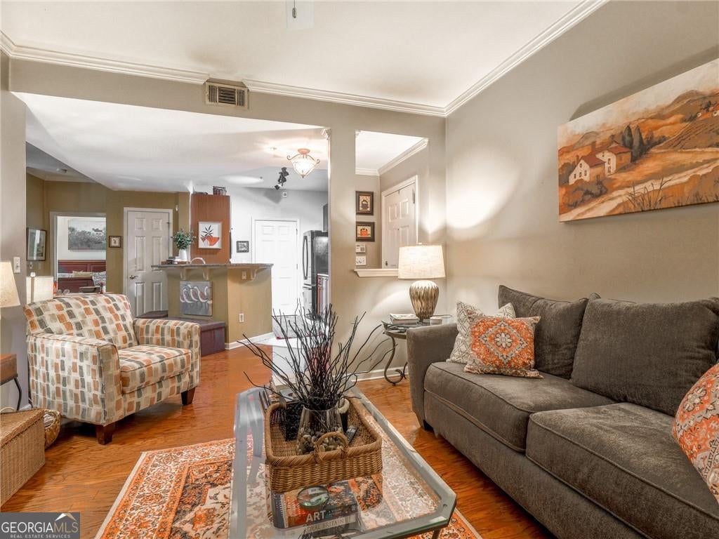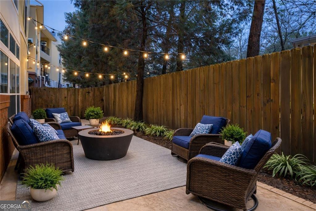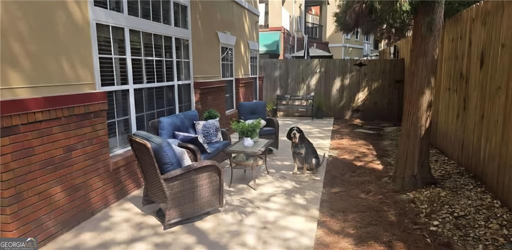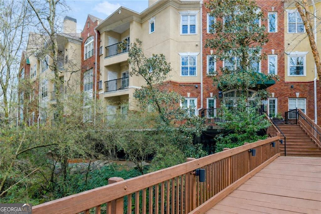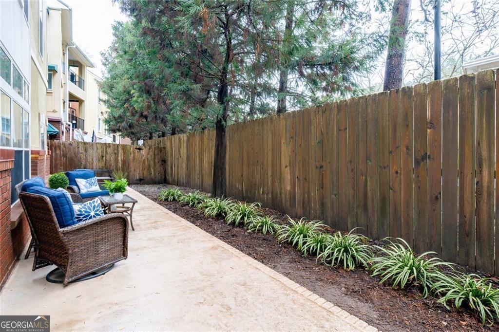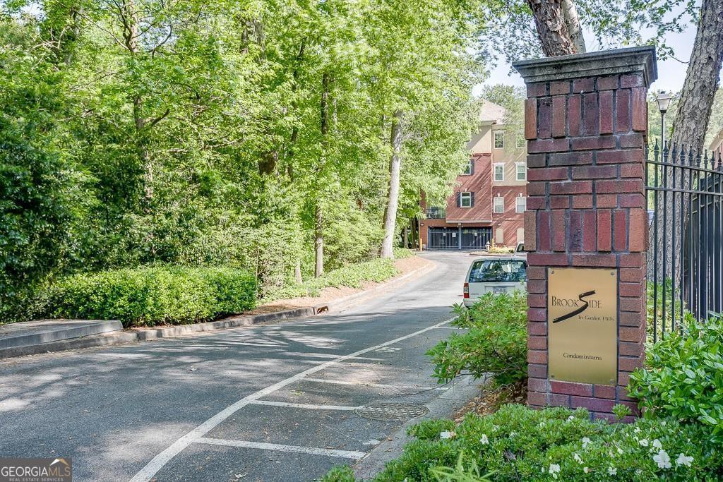 A condo with a large private yard-incredibly rare! Welcome to this tucked away building perfectly situated between Midtown and Buckhead in Brookside in Garden Hills, a hidden gem within an exclusive Buckhead community. This much-loved & beautifully maintained split-bedroom, stepless main-level condo offers exceptional value and a standout feature: a private, first-floor fenced courtyard with access from both the living room and owner's suite-ideal for a dog, entertaining, grilling, or simply enjoying peaceful outdoor living. Thoughtfully selected by the original owner (she worked for the builder and had first choice) for its privacy and serene setting, the home features hardwood floors, a fireplace, built-in bookcase, and abundant natural light throughout. The secure, boutique 3-story building is set well off Lindbergh Drive overlooking Sharondale Drive, with a separate guest entrance and ample free guest parking. Residents enjoy a pool, fitness center, dog walk, secured garage, and private storage, with HOA dues covering water, security, trash, recycling, sewer, and landscaping. Surrounded by mature trees, a small brook, and a 3-acre nature preserve, the setting feels like a mountain retreat-yet is easily walkable to KR SteakBar, Krog Bar, The Tree House, Savi Provisions, MARTA, and the vibrant Uptown Atlanta development, with easy access to Peachtree Hills, Buckhead Village, Bobby Jones Golf Course, and GA-400, I-85, and I-75-offering the perfect blend of nature and city living.