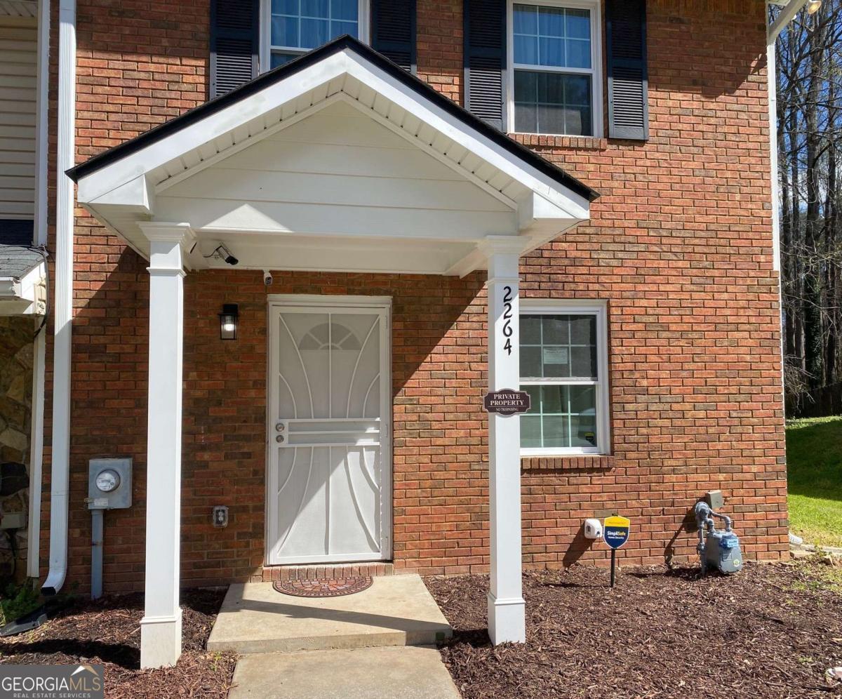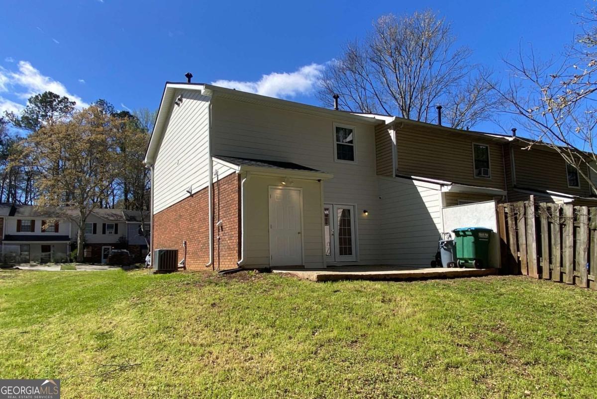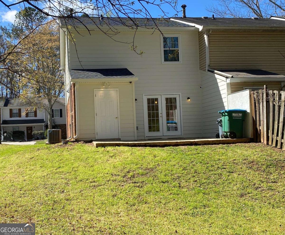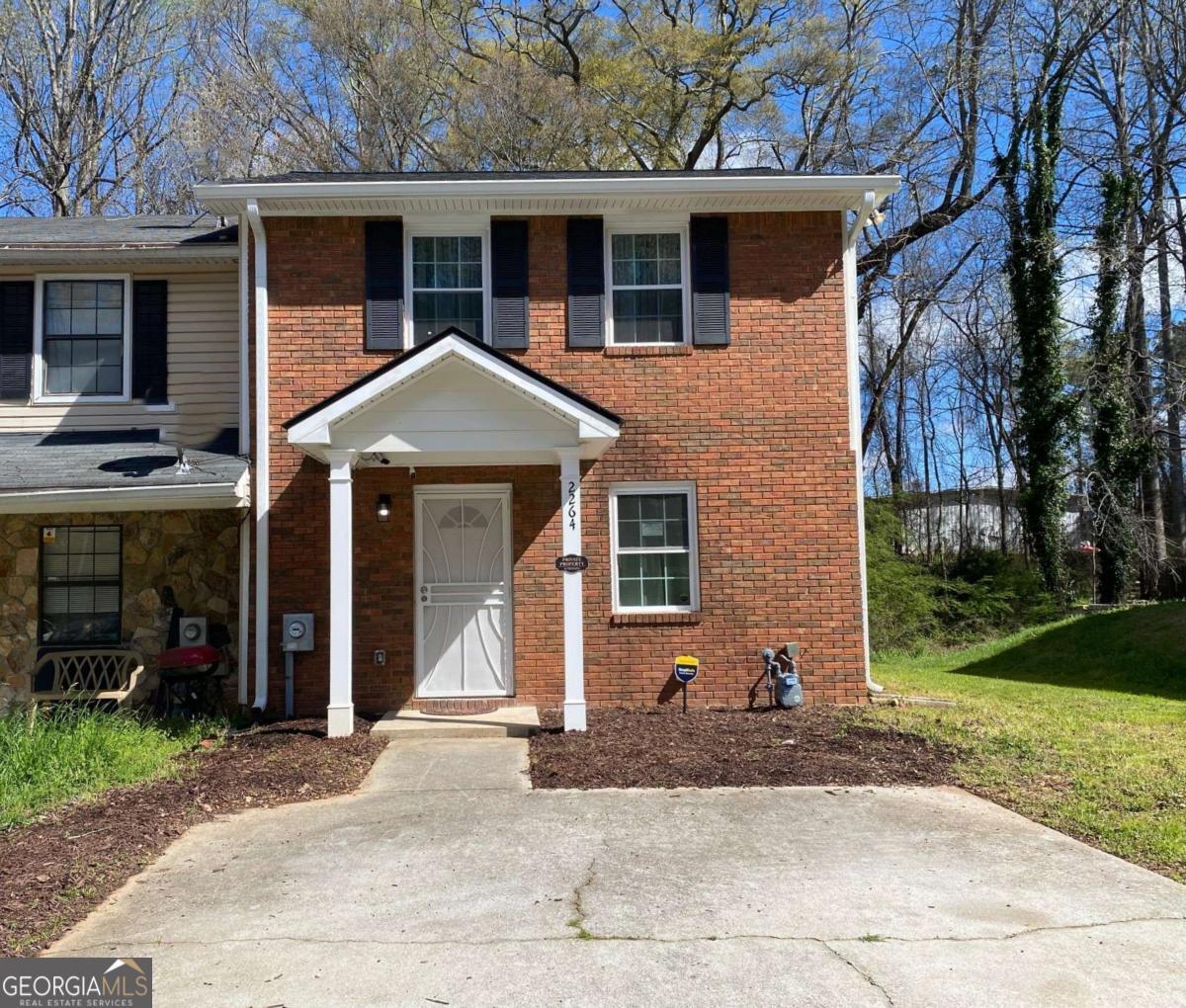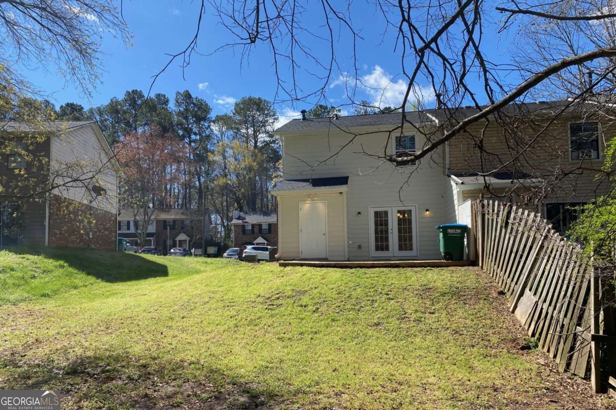 Fully renovated end-unit townhome located in a desirable Austell community. This beautifully updated residence features a brick front and has been completely remodeled from top to bottom, including a new roof, drywall, paint, fixtures, windows, and appliances, offering a truly move-in-ready experience with modern, tasteful finishes throughout. The bright, white kitchen showcases solid surface countertops, stainless steel appliances, gas range and refrigerator. A generously sized pantry provides additional storage. Enjoy an open-concept dining area that flows seamlessly into a spacious living room, highlighted by a large picture window that fills the space with natural light. The home offers two generously sized bedrooms with ample closet space, along with a fully renovated bathroom featuring a new vanity and tub/shower combination. On site laundry hookup is set up for a stackable washer and dryer in the kitchen pantry. Step outside to a private back patio and take advantage of the additional outdoor storage. Lawn maintenance is included. The large backyard backs up to a peaceful wooded area, providing excellent privacy. Conveniently located with CobbLinc bus service at the front of the subdivision, and offering easy access to Veterans Memorial Highway, I-285, downtown Atlanta, and Hartsfield-Jackson Atlanta International Airport.