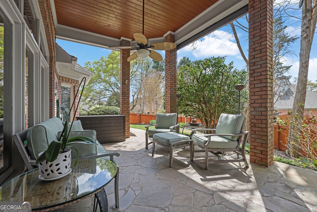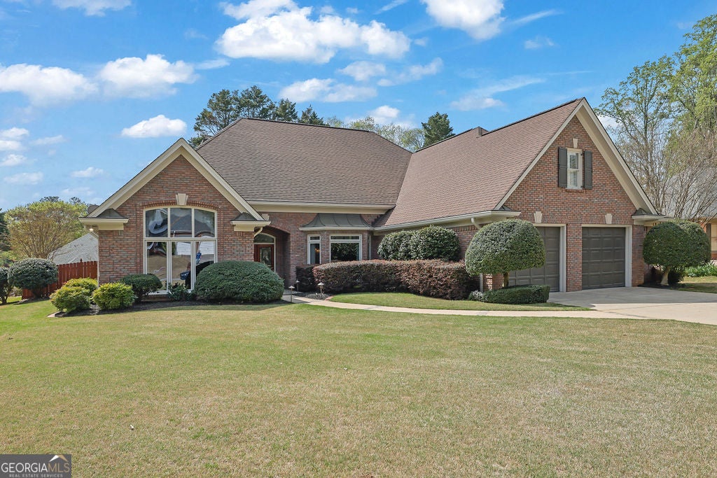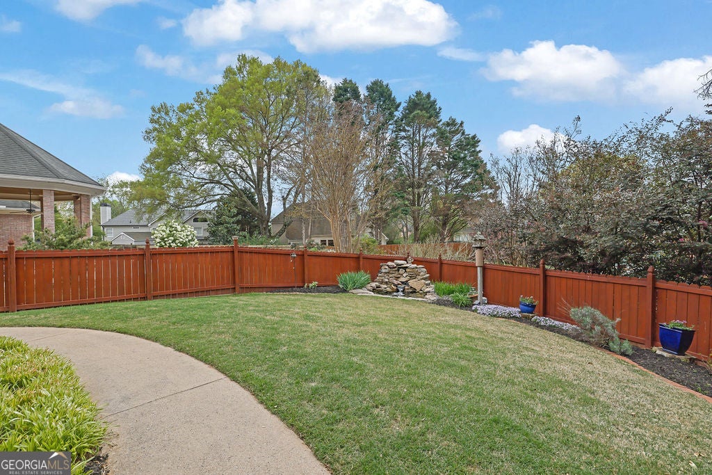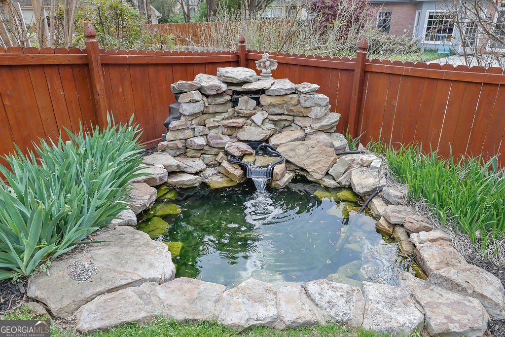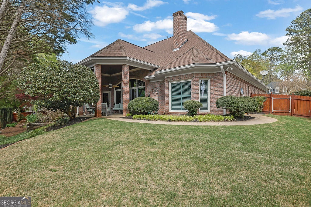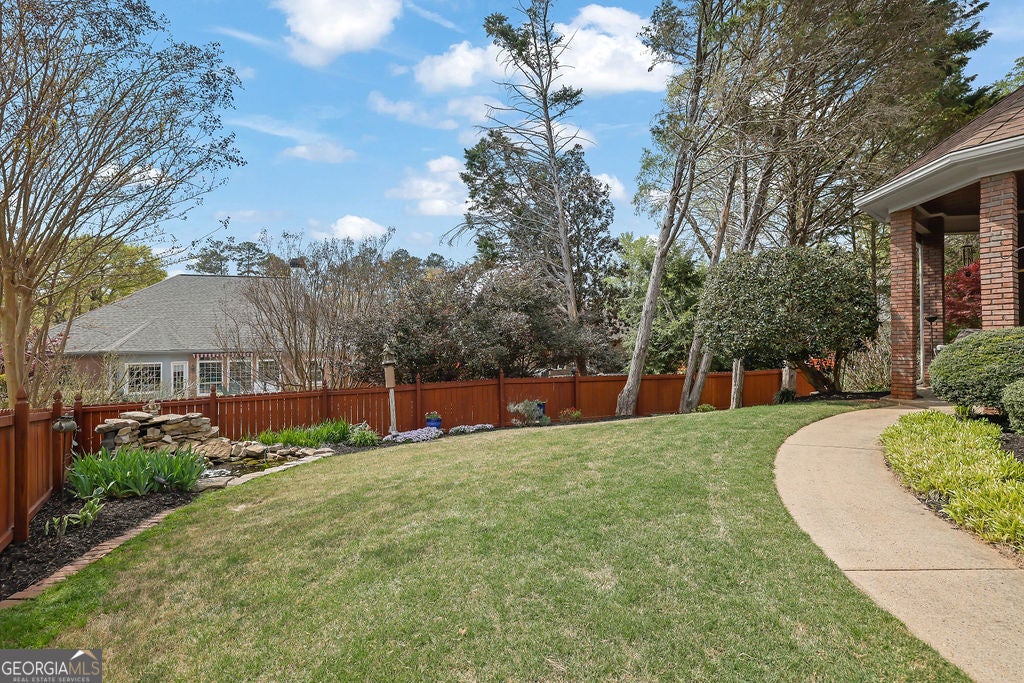 Elegant, move-in ready ranch in sought-after Polo Fields offering refined finishes, exceptional outdoor living, and a true country club lifestyle. This 4-sided brick home features a beautifully remodeled chef's kitchen with quartz countertops, a massive island, and premium appliances including Sub-Zero refrigerator, Bosch dishwasher, and Thermador double ovens-perfectly designed for both everyday living and entertaining. Step outside to a serene, fenced backyard retreat complete with a covered patio featuring a tongue-and-groove ceiling, Tennessee sandstone flooring, and a tranquil koi pond with waterfall. Set well back from the street, the property offers ample parking for up to six cars plus an oversized 2-car garage with additional storage. Inside, you'll find thoughtful details throughout including hardwood floors, plantation shutters, extensive crown molding, wainscoting, tray and vaulted ceilings, and abundant natural light. The inviting family room showcases a floor-to-ceiling stone fireplace flanked by custom built-ins, while a dedicated office also features custom cabinetry and shelving. Permanent attic stairs lead to a large partially finished attic-ideal for a future bedroom, media room, or private office. The spacious primary suite offers a bay window sitting area, tray ceiling, and a luxurious bath with frameless shower, garden tub, dual vanities, and a large walk-in closet. A split-bedroom layout provides privacy, with two secondary bedrooms connected by a Jack-and-Jill bath. Enjoy living in Polo Fields, home to the prestigious Polo Golf & Country Club, where residents have access to a championship golf course, a clubhouse with dining and social events, tennis facilities, resort-style swimming pools, fitness center, and an active calendar of family-friendly programs and events. From golf and tennis to fine dining, swim teams, and year-round social activities, the community offers a lifestyle centered around recreation, connection, and convenience.